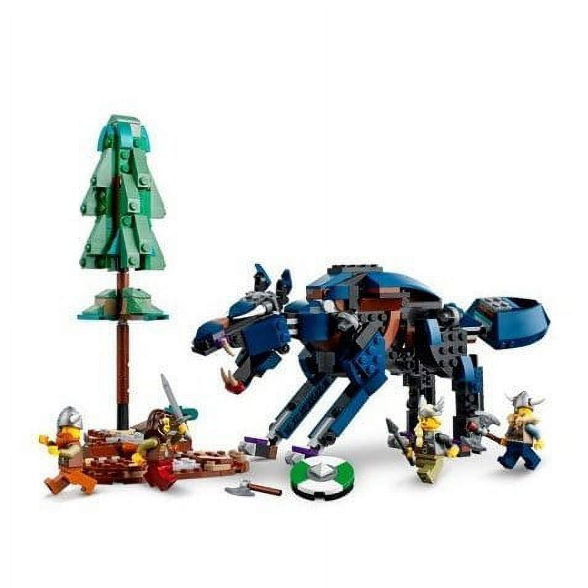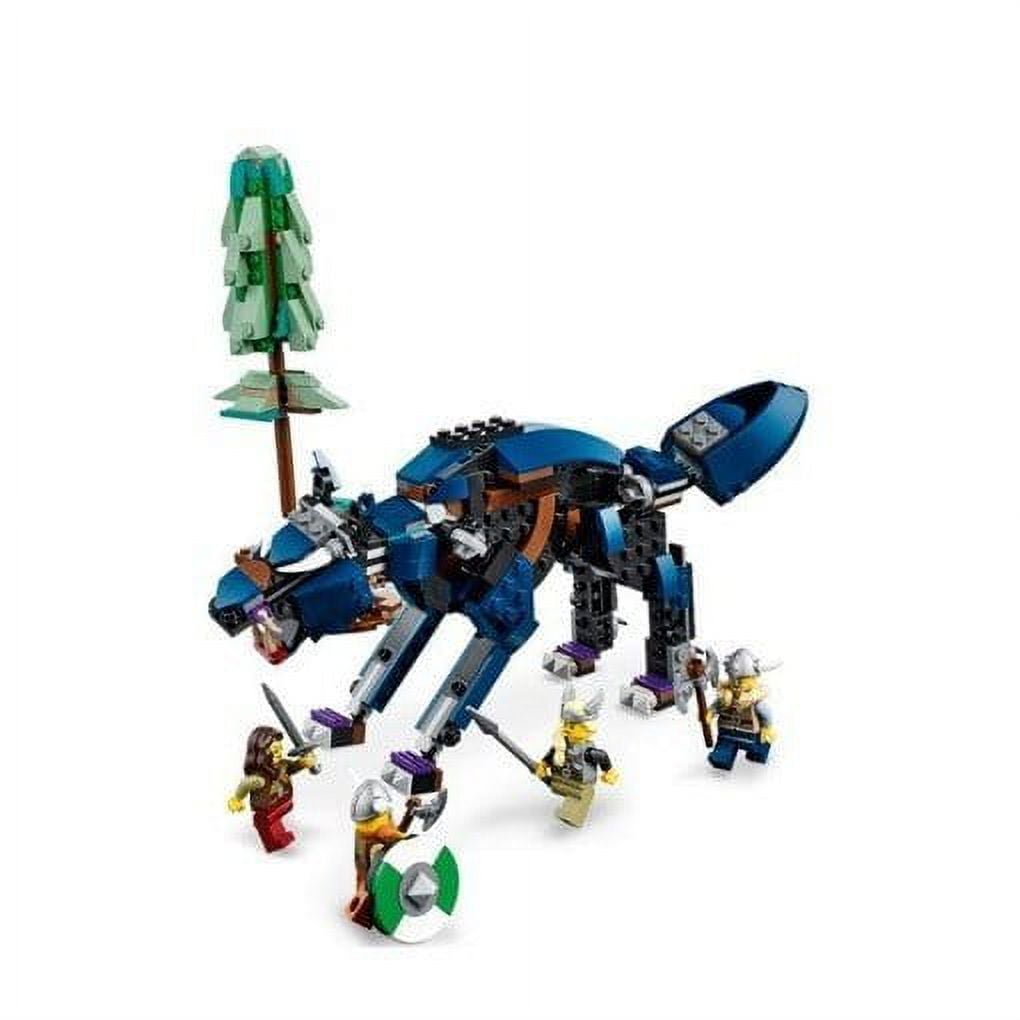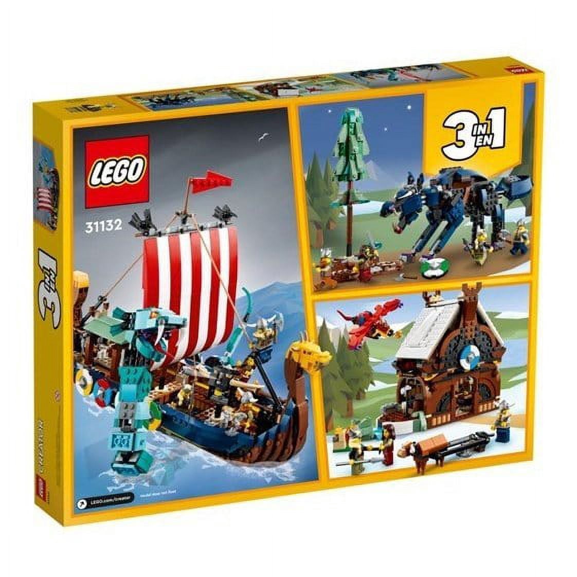 Lego Creator 3in1 Viking Ship and Midgard Serpent 31132 LEGO fans will be excited to build 3 different Viking toys with this action-packed 3in1 set.They can build a Viking Ship with Midgard Serpent, a Viking House with dragon and a buildable cow or Fenris wolf alongside a tree with hidden jewels. Each model includes 4 Viking minifigures.3 Viking toy in 1 set – Kids will love this LEGO Creator 3-in-1 Viking Ship and Midgard Serpent (31132) set featuring a Viking Ship, a Viking House and a Fenris wolf.Limitless play options – The toy Midgard Serpent’s posable head, tail, body, mouth and fins, and the toy wolf’s posable neck, mouth and legs, allow kids to play fast-paced action games.Highly mobile models – the Stark Expo model includes familiar items from the films, such as a sports car with a map, a robot auxiliary arm, a work area with tools and many original accessories.4 minifigures – The playset features 4 Viking minifigures with weapons to act out stories with the ship, the house or the wolf.A satisfying model – This 1192-piece building set allows children aged 9+ to enjoy a satisfying building experience with friends or parents.Measuring 27 cm high, 42 cm long and 17 cm wide, the Viking ship is a fun display model for a child’s room.LEGO® bricks are made from quality materials. They have been consistent since 1958, fit together well and are easy to snap on and off every time.Safety and quality are a priority with LEGO® bricks. They are rigorously tested to make sure the model is as robust as it is beautiful.Brick Count: 1192.Suitable for children aged 9 and over.