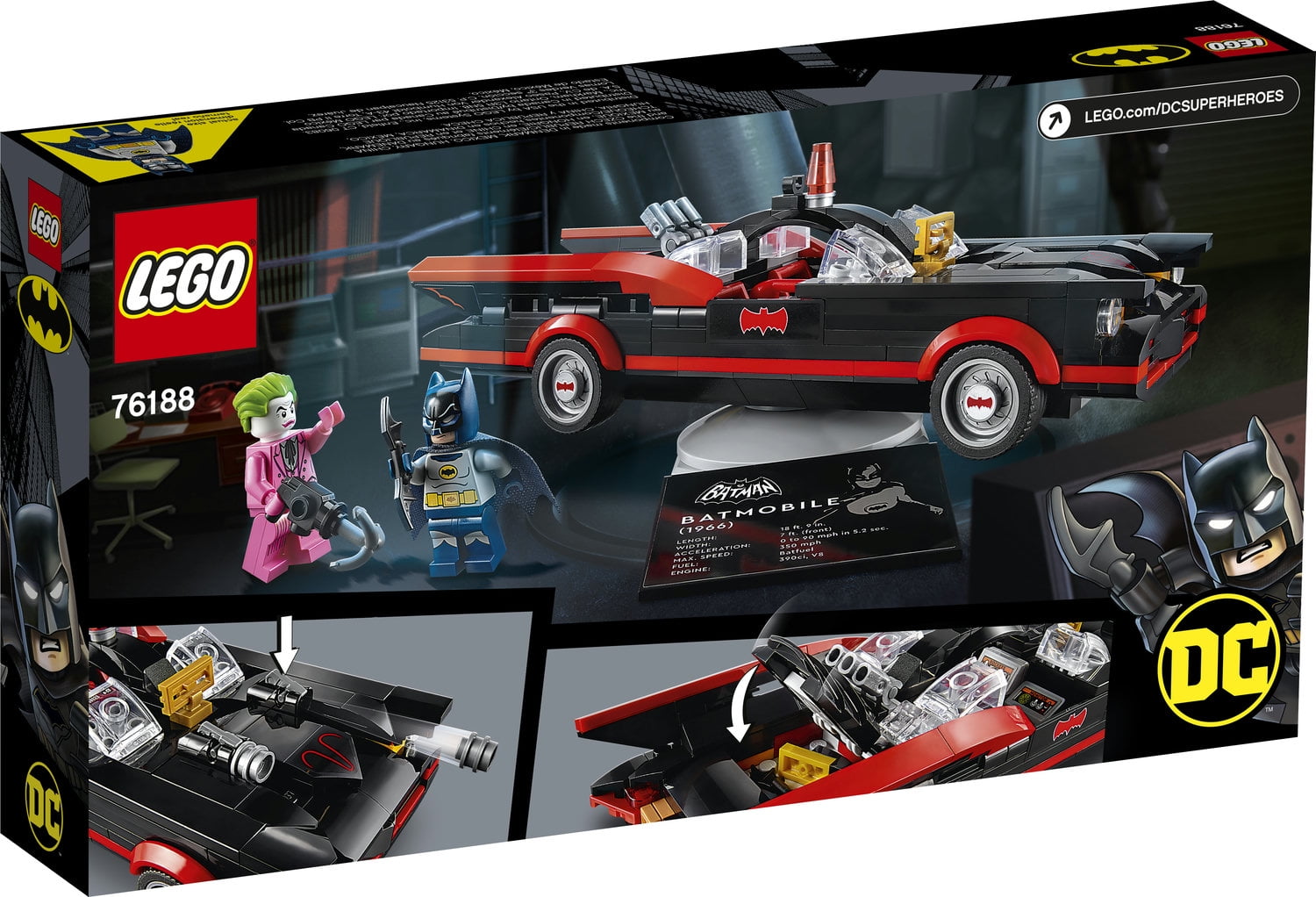 LEGO�� DC Batman���: Batman Classic TV Series Batmobile��� (76188) gives super-hero fans the style, action and excitement of the original 1966 Batman TV series. Includes a buildable Batmobile���, which can be assembled with or without shooters, plus Batman��� and The Joker��� minifigures ��� all in the classic 1960s style ��� and a rotatable stand. Young super heroes can speed through GOTHAM CITY��� with Batman��� in his Batmobile��� to catch The Joker���. When the action���s over, the vehicle attaches to a rotatable stand with a descriptive baseplate. For ages 7 and up. An ideal birthday, Christmas and holiday gift or special treat for Batman��� fans who would appreciate something extra special. The Batmobile��� measures over 2.5 in. (6 cm) high, 7.5 in. (20 cm) long and 2.5 in. (7 cm) wide and combines easily with other LEGO�� DC Batman��� sets. The original 1966 Batmobile��� didn���t feature any shooters, therefore extra bricks have been added to this set so the car���s hood can be easily rebuilt to appear just as it was in the series if desired. With cool characters, vehicles, gadgets and weapons, LEGO�� DC Batman��� playsets put super-hero action into kids��� hands and let them enjoy endless imaginative adventures. LEGO�� components satisfy stringent industry quality standards to ensure they are consistent, compatible and connect and pull apart correctly every time ��� it���s been that way since 1958. LEGO�� components are dropped, heated, crushed, twisted and analyzed to make sure they fulfil rigorous global safety standards.