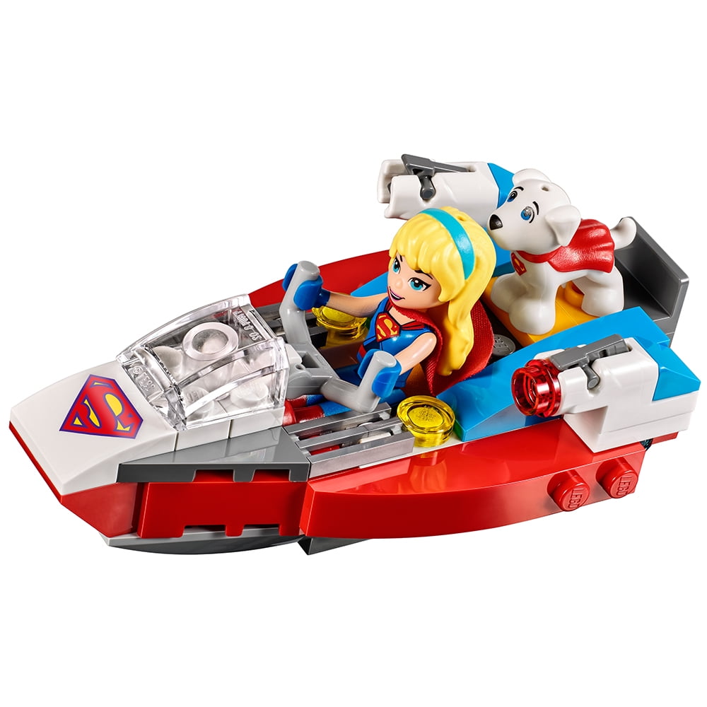 Join in the action-packed LEGO® DC Super Hero Girls? world as Supergirl? confronts Lena Luthor? at the Kryptomite? factory! This great set features a 3-level factory with lab, Kryptomite dispenser/slide, crystal element, break-out door, holding cell, rooftop shooter and a ?power drain? room, plus Lena Luthor?s getaway boat, Supergirl?s jet boat with dual shooters, Krypto? and 3 Kryptomite figures.