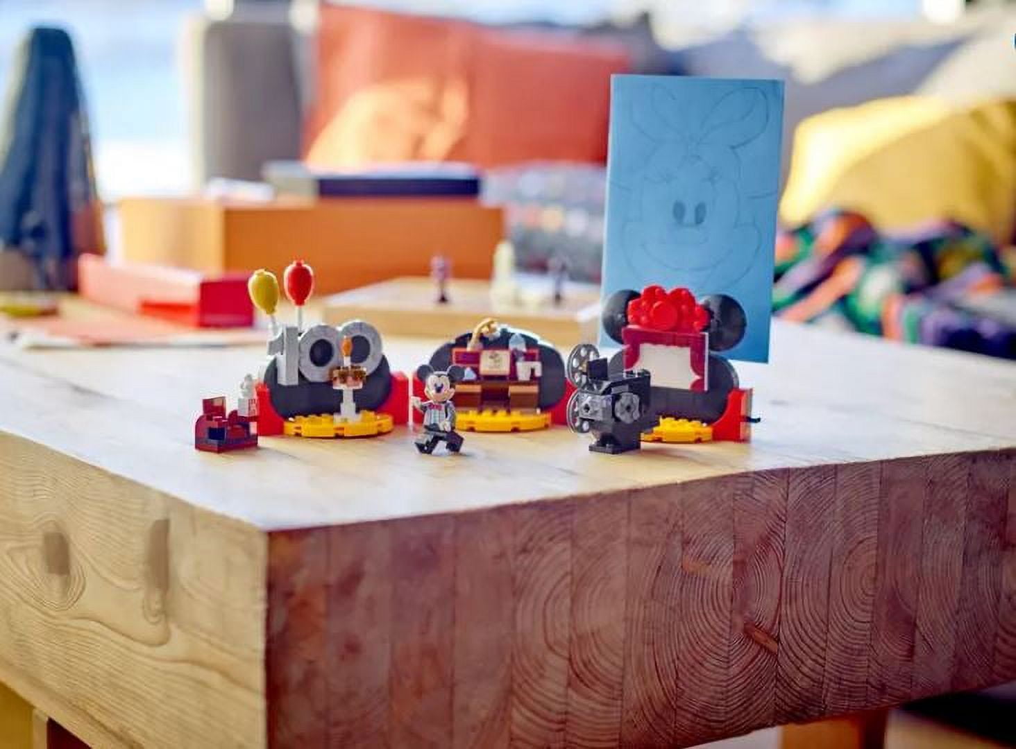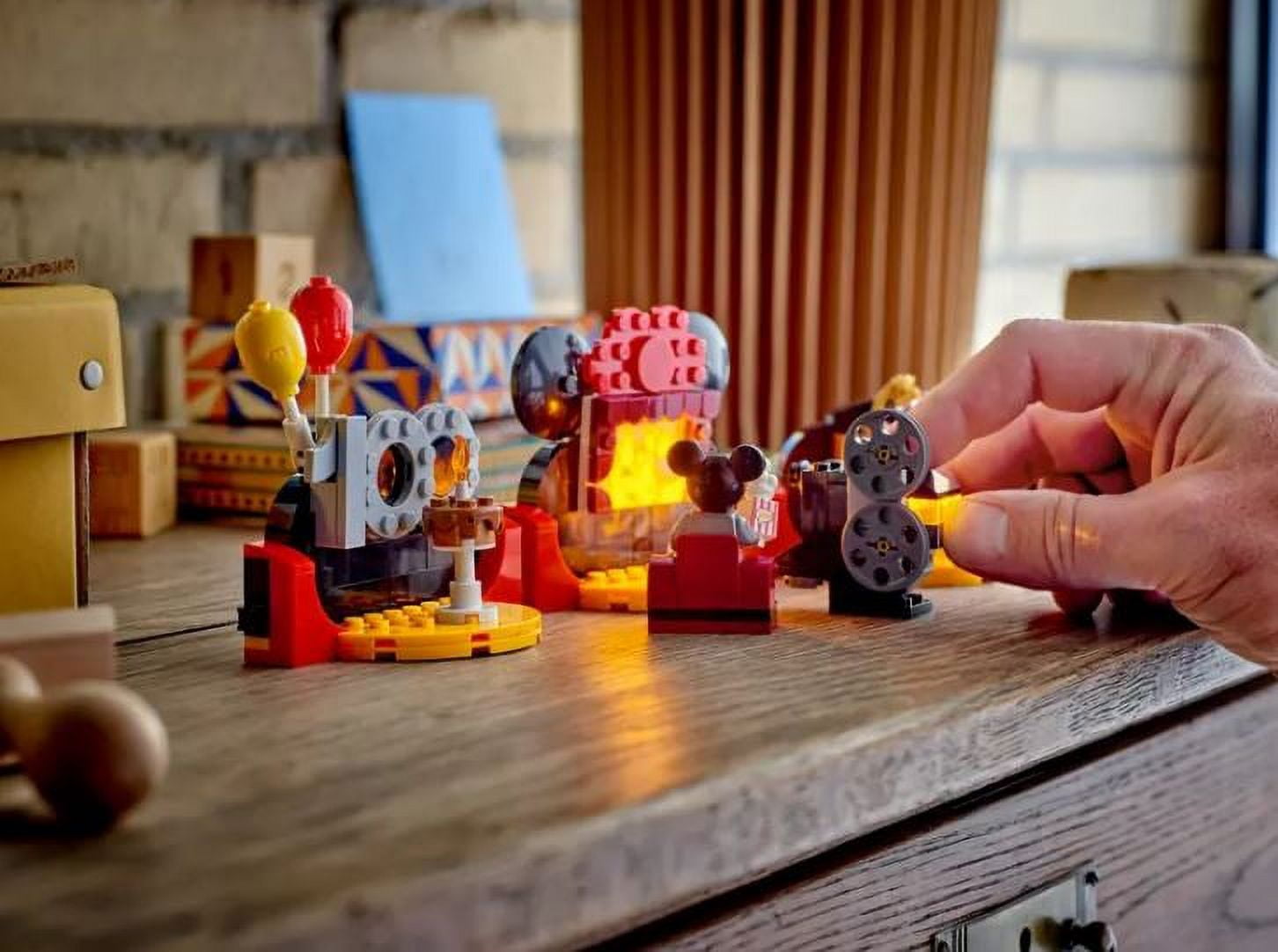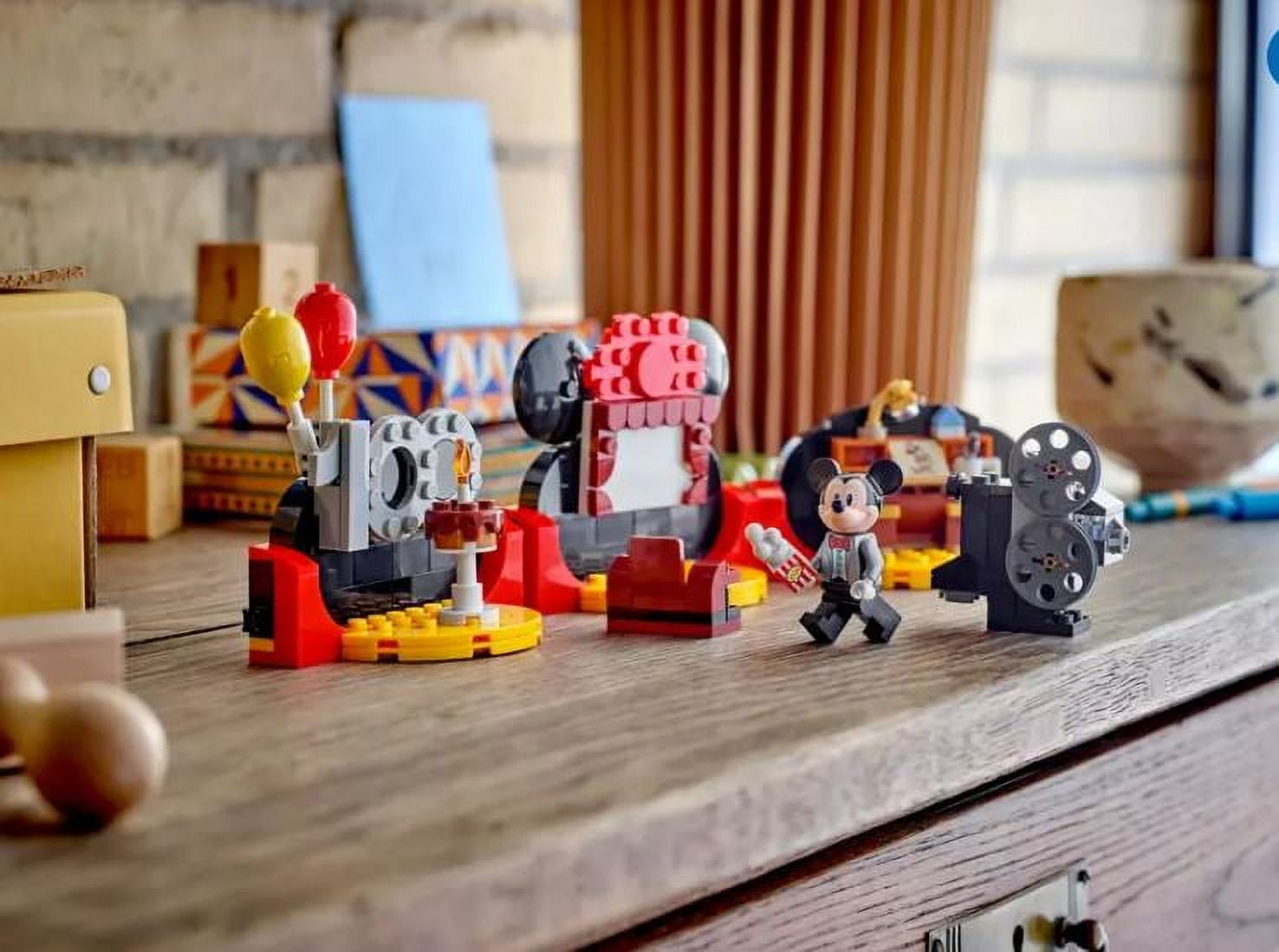 Comes with three separate builds – Disney 100 sign with a cake and balloons Walt Disney’s desk with a tile drawing of Steamboat Willie, and an elaborate small theater. Limited edition store exclusive.