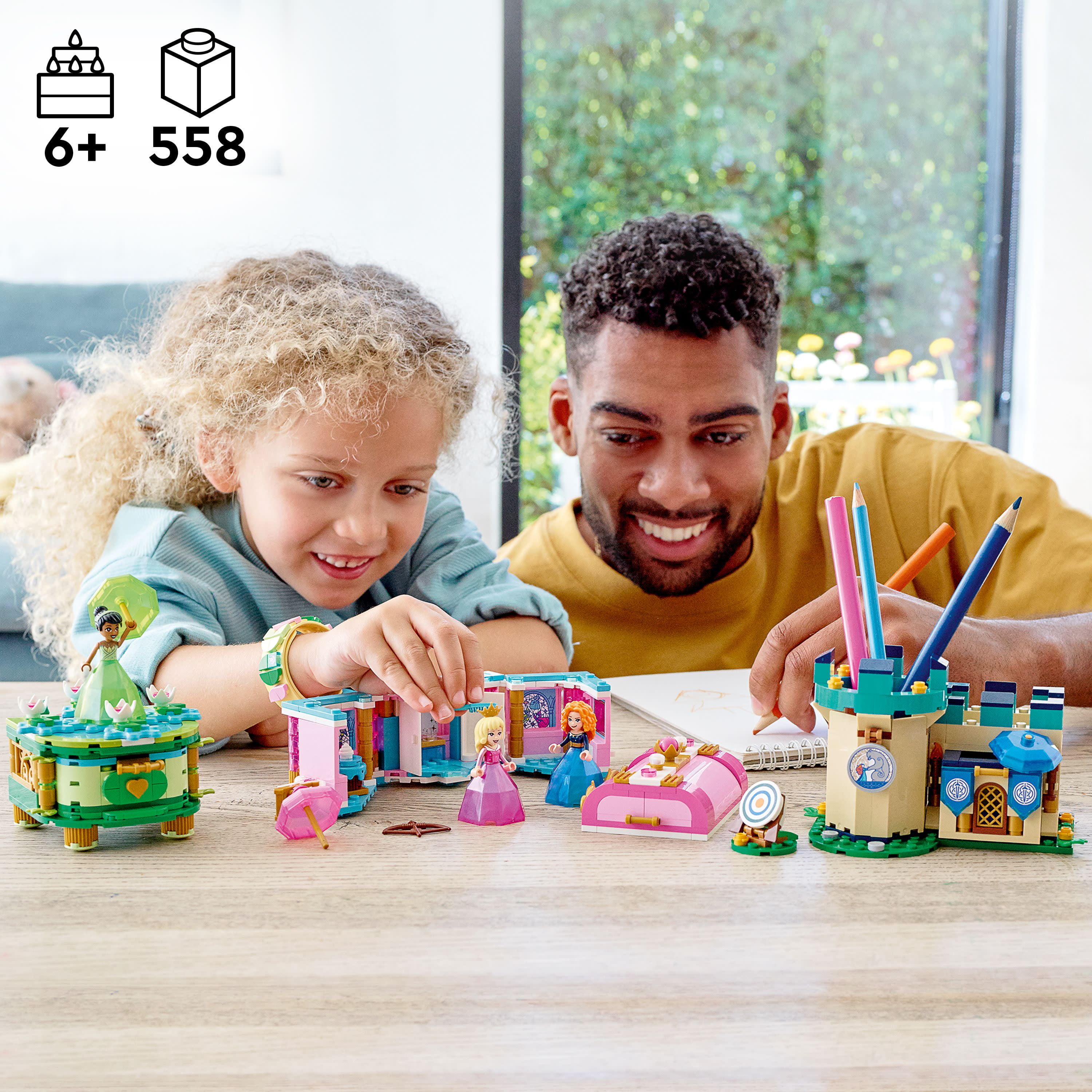 Features 3 incredible jewelry box builds, 3 mini doll figures with diamond dresses inspired by Disney movies, and a LEGO DOTS bracelet! This 558-piece set includes 3 buildable items with functions for each princess & a diamond dress designed to store a mini doll figure inside Let kids replay movie-based scenes with mini doll figures, build the jewelry box toys and use Merida’s tower as a pen holder to keep desk neat! To boost the fun, collect other diamond dress princesses from the LEGO Disney Diamond Dress collection (sold separately) for endless adventures Wow the playground with this LEGO Disney Princess buildable toy coming with Interactive digital building zoom, rotate and visualize tools Full of creative recreations of settings from animated movies & a LEGO DOTS bracelet, this set makes a magical gift for kids aged 6+ •