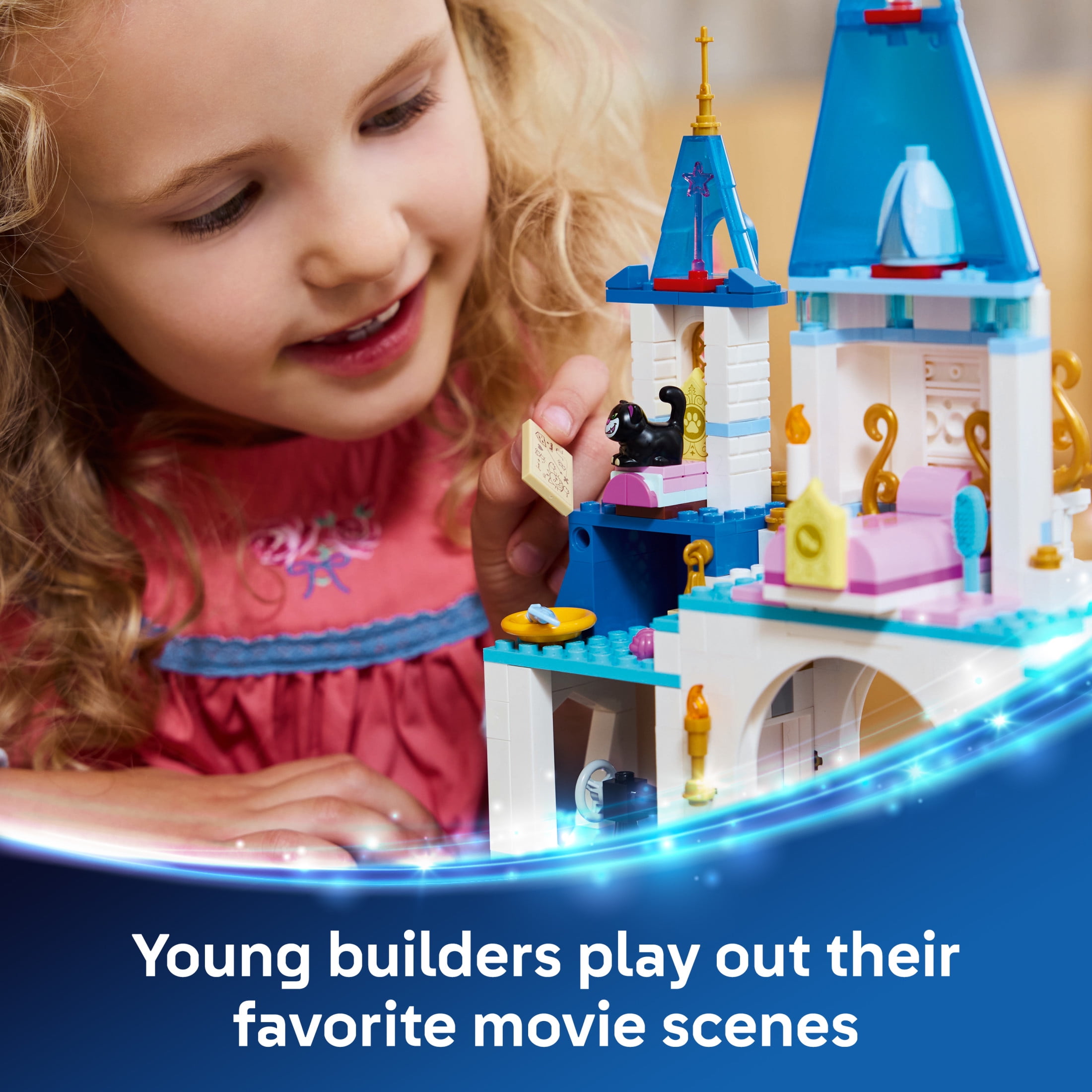 CINDERELLA PLAYSET – Girls and boys ages 6+ can create their own versions of Cinderella’s castle, peek inside the horse carriage and more with this detailed playset CASTLE FEATURES – The buildable 2-level castle toy comes with a stable, multiple rooms, a spinning floor, a carriage with a harness and LEGO ǀ Disney horse figure and 4 LEGO ǀ Disney characters ICONIC DISNEY CHARACTERS – Place Disney Princess Cinderella and Prince Charming on the spinning floor so they can dance, or change the horse’s harness for a saddle or bag FUN ACCESSORIES – The building toy has 4 entrances and includes accessories like a mouse door, a window for Lucifer, Cinderella’s gown, a crown, a wand, and a carriage with a harness and gold accents DISNEY GIFT IDEA – With a castle, carriage and 4 Disney characters, this set makes a fun gift for girls and boys who love playing pretend or any Disney’s Cinderella fan ages 6 and up DIMENSIONS – This set includes a castle that measures over 11.5 in. (29 cm) high
