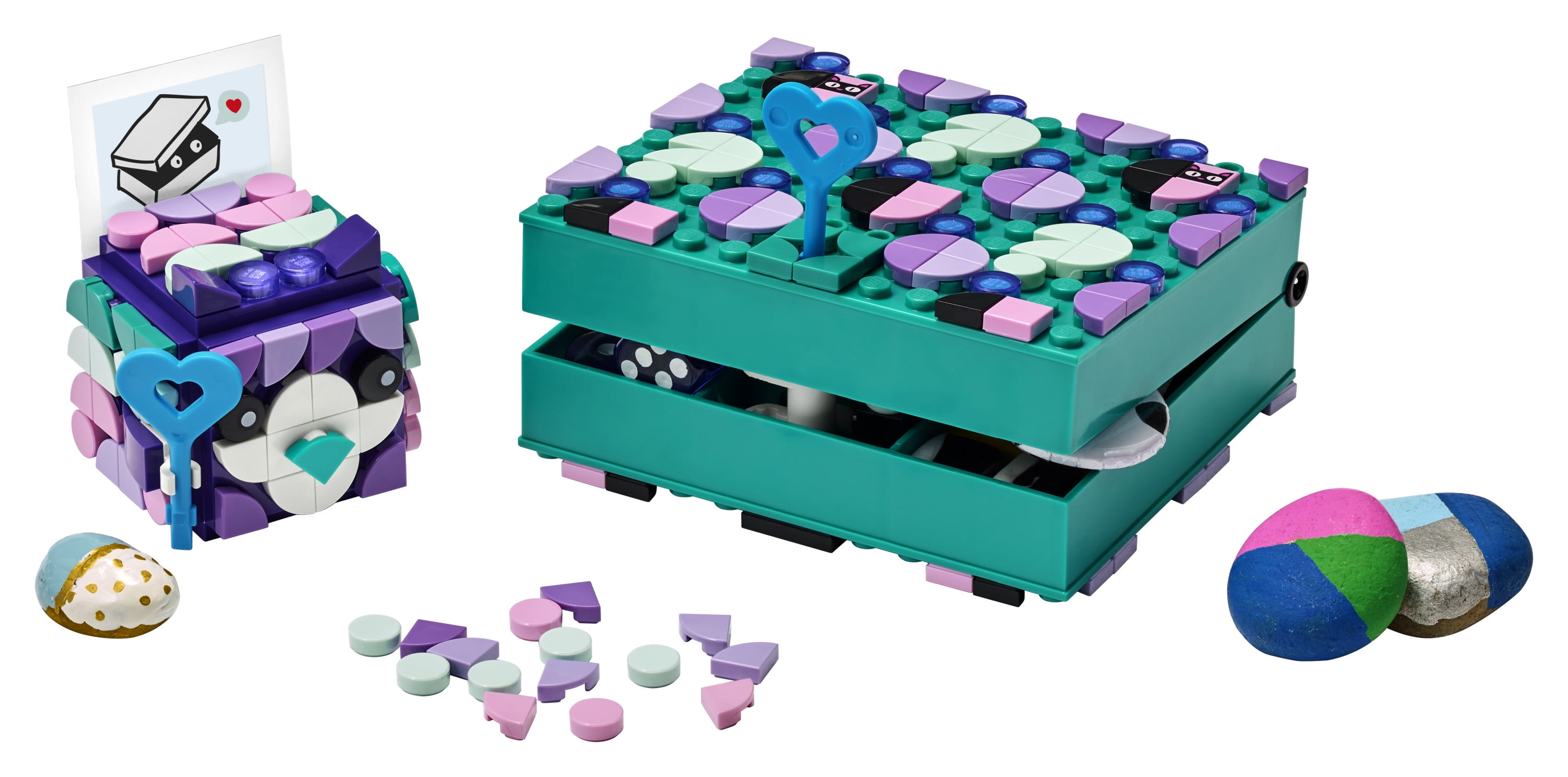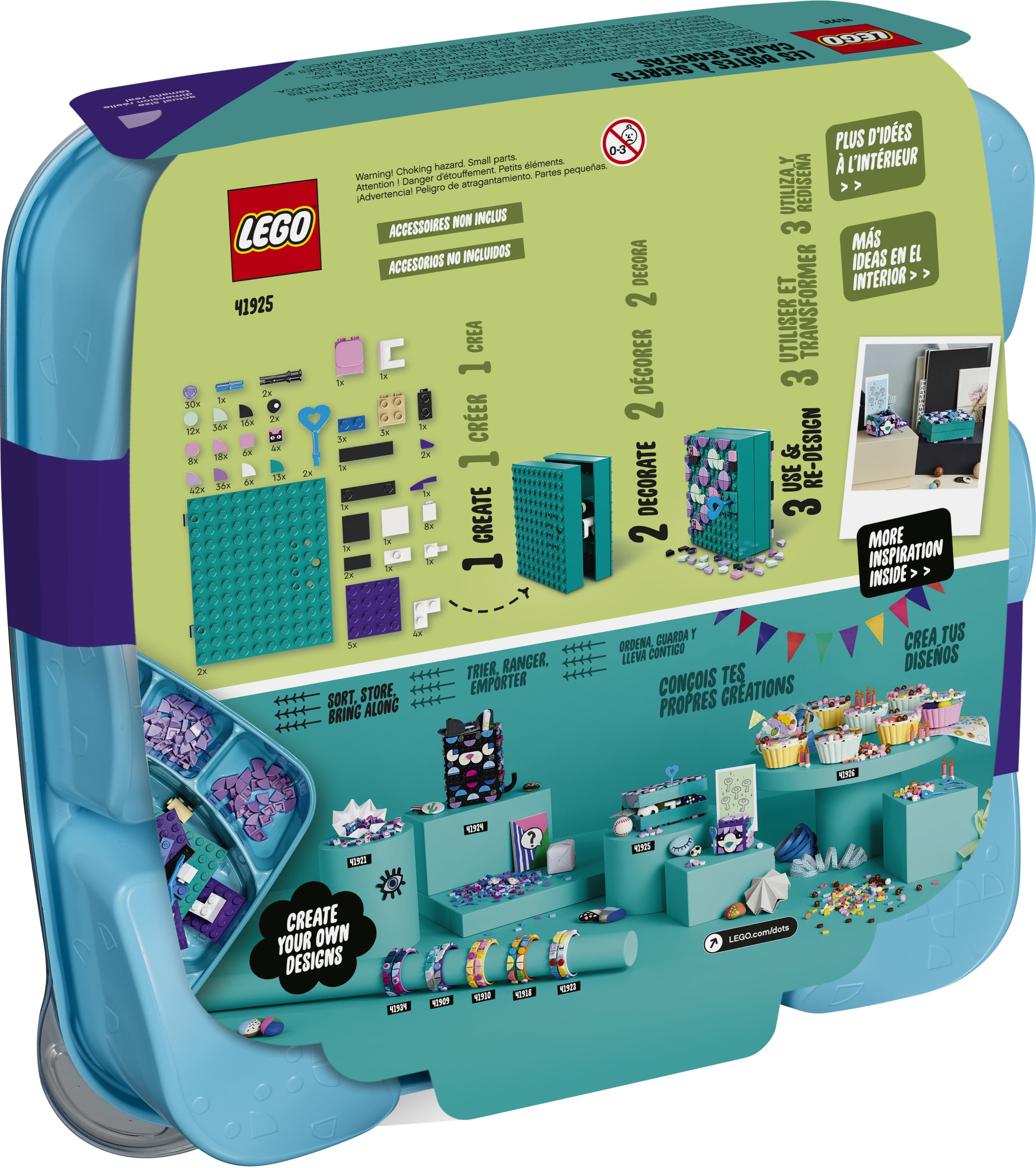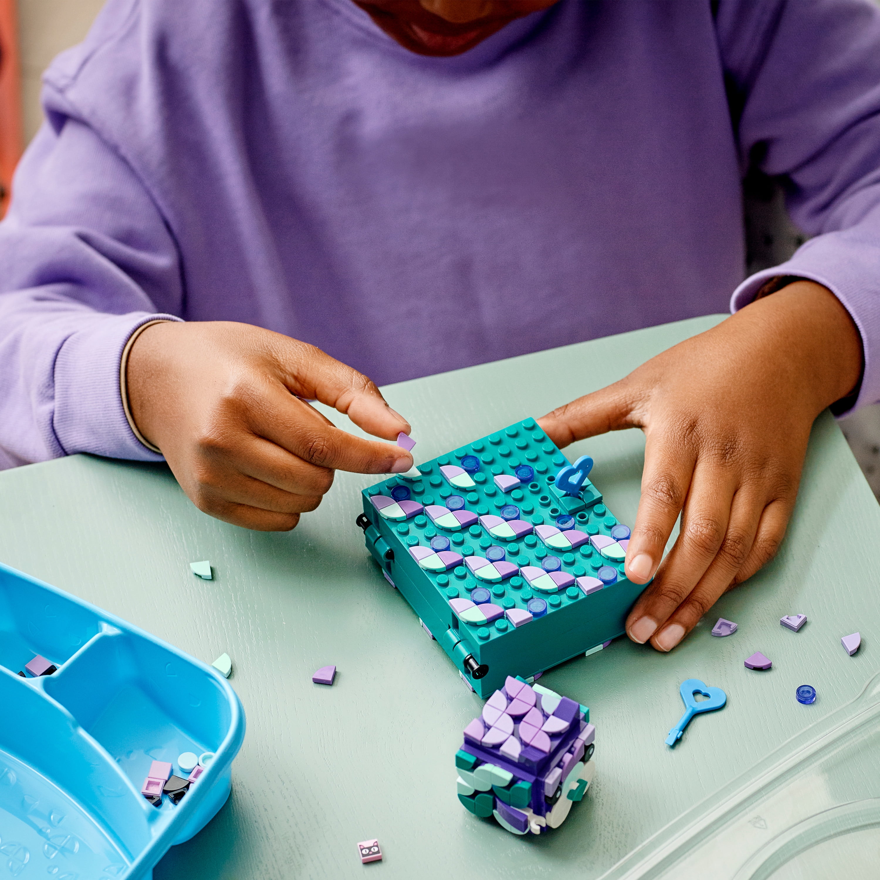 Recognize a child’s hard work with this creative LEGO DOTS Secret Boxes (41925) set This kit is ideal for kids with a passion for arts and crafts who want to express themselves through design This cool kit features an opening book-shaped box with working lock and storage space inside, a small box with a picture frame, 2 keys, plus a storage tray and plenty of tiles The included tiles are great for making unique designs. Kids can also use tiles from other LEGO DOTS kits and bags, such as Extra DOTS Series 3 (41921) to expand their ideas Any fan of DIY or arts and crafts will love this imaginative play toy The clever boxes make a great everyday gift or fun creative reward that boys and girls aged 6 and up will find appealing The locking, book-shaped box measures over 1.5 in. (3 cm) high, 3 in. (8 cm) wide and 3.5 in. (9 cm) long, making this easy kit the perfect size for tucking away secrets