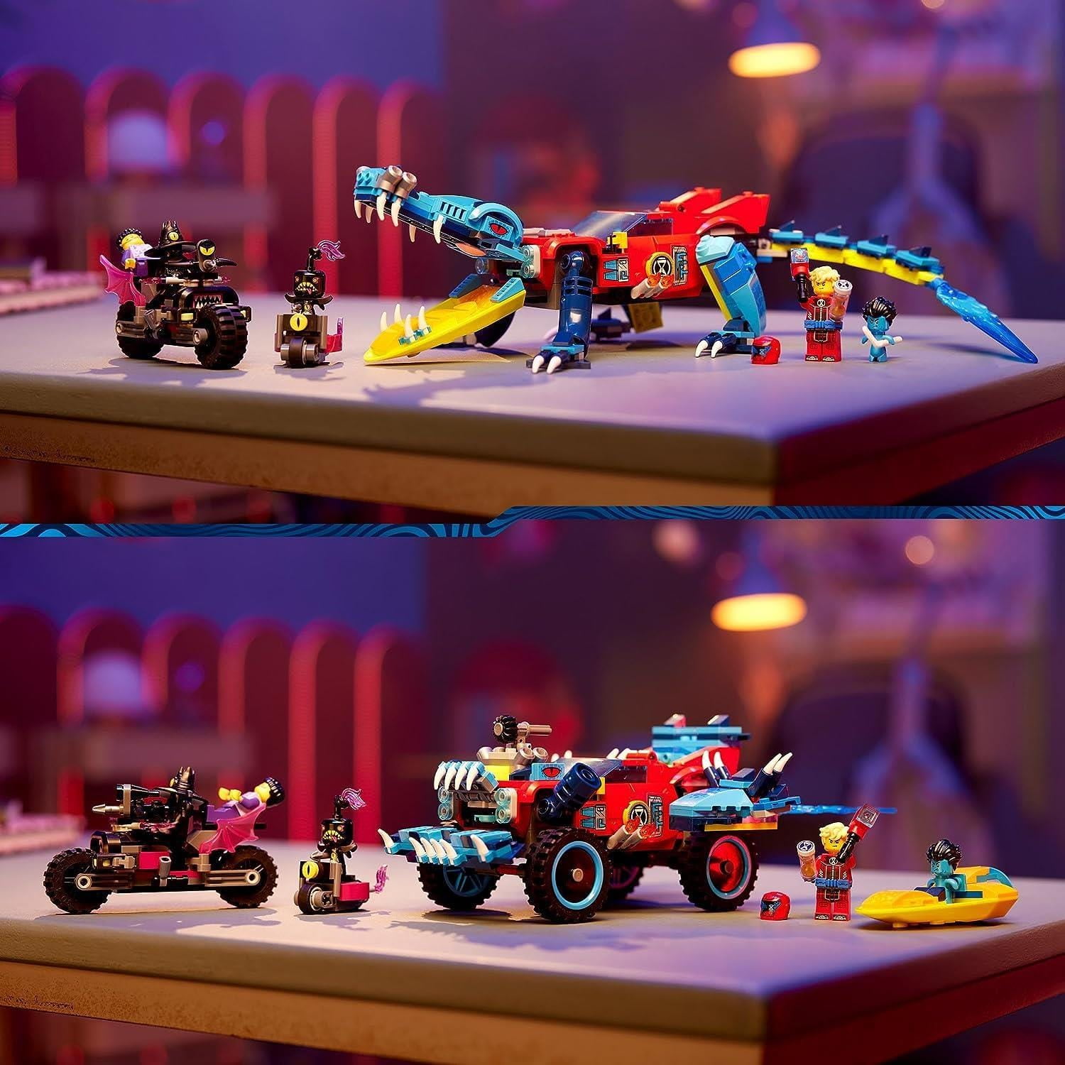 Lego Dreamzzz Crocodile Car 71458 He can quickly travel to a dream world with the LEGO® DREAMZzz™ Crocodile Car (71458) toy building set. Based on the TV series, kids can create an incredible car to save Jayden from the terrifying Night Stalker! 1 set, 2 building options The 2 building options and lots of story-based instructions in the playset encourage kids to choose their own adventure and enjoy double the playtime. They can decide to build a crocodile car to fight nightmares, or a super-fast all-terrain vehicle or mini-boat to chase them away. In Crocodile mode, the vehicle has movable arms and legs and a disc shooter hidden in the front grille so kids can shoot discs from the crocodile’s mouth. In Truck mode, the vehicle has spinning wheels and a roof that can be removed to fit a minifigure inside. The awesome minifigures construction toy set includes minifigures of Cooper and Jayden, plus a cool toy motorcycle and the Night Stalker with his evil sidekick. The Night Stalker has captured Jayden and you must help save him! Join Cooper and Logan as they use their dream transformation skills to build the perfect car and rescue their friends. Choose from a crocodile car with a disc launcher to defeat nightmares or a super fast all-terrain vehicle and mini boat to chase them away. Customizable vehicle Kids can enjoy imaginative play with the LEGO® DREAMZzz™ Crocodile Car toy building set (71458), allowing them to build one of 2 vehicles 2 ways to build Kids can choose to build the car as a crocodile car or a modified super-fast off-road vehicle Crocodile mode In crocodile mode, the car shoots discs from its grills (from the crocodile’s mouth) and has movable arms and legs that make it easy for kids to play and create adventures Off-road vehicle mode In off-road vehicle mode, the vehicle’s wheels spin and the roof can be removed so kids can fit a minifigure inside 3 minifigures This set includes Cooper, Jayden and Night Includes Hunter minifigures Social or solo play This set is designed for children ages 8 and up who can play for hours on their own or with friends Dimensions In its largest form, the model was 8 cm high, 45 cm long and 15 cm wide Companion app The set’s story-based building instructions are also available digitally in the LEGO® Builder app Premium-quality LEGO® bricks are designed to build consistently every time Safety guaranteed LEGO® bricks are rigorously tested to ensure they meet strict safety requirements Kids will love building with these LEGO® bricks and bricks. Build one of 2 vehicles with the LEGO® DREAMZzz™ toy construction set Kids can build the car in 2 modes – crocodile mode and off-road vehicle mode In crocodile mode, the car has movable arms and legs In off-road vehicle mode, the car’s wheels turn The set includes 3 minifigures This set is designed for children aged 8 years and up In its largest form, the model measures 8 cm high and 45 cm long LEGO® Builder app includes digital version of building instructions LEGO® bricks are made from quality materials LEGO® bricks meet rigorous safety requirements Suitable for children 8 years and older.