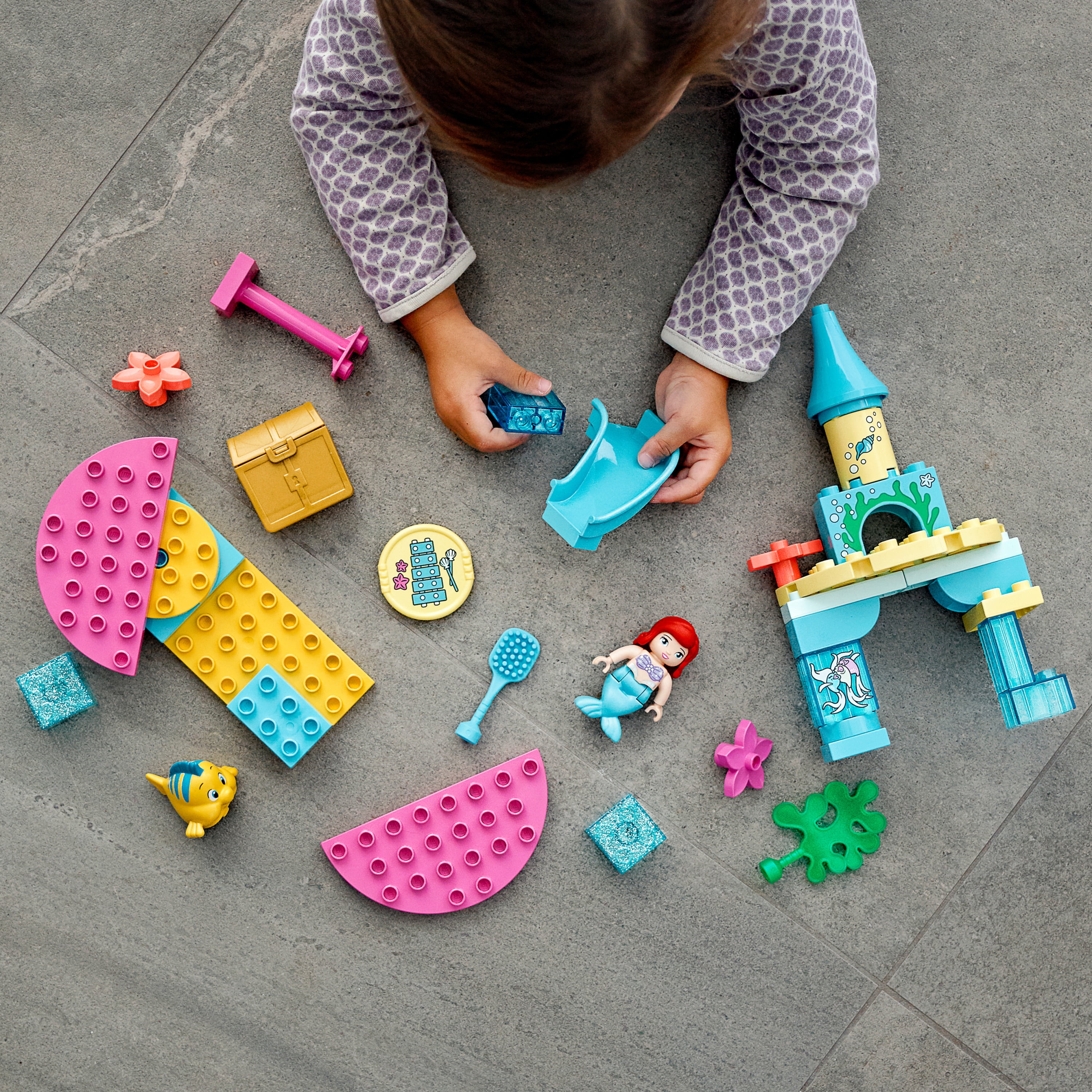 Take toddlers to an undersea world of fun features and role-play adventures with ariel and flounder from Disney’s little mermaid movie. Designed to stimulate and inspire the minds of mermaids and humans alike Much-loved kids’ movie characters ariel and flounder will encourage toddlers’ emotional development And the playground is packed with cool features and accessories to inspire role-play stories This versatile preschooler playset contains elements that are easy for small hands to pick up and place. A great gift for girls and boys aged 2 and up LEGO DUPLO Disney ariel’s undersea castle (10922) measures over 11” (28cm) high, 7” (20cm) wide, and 5” (13cm) deep and combines easily with other DUPLO playsets for even more imaginative play possibilities