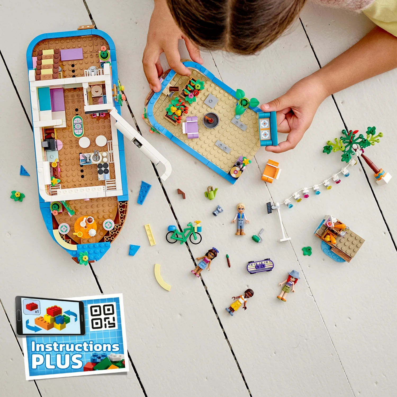 Retro-styled eco-houseboat model – Let kids live out an environmentally friendly lifestyle aboard the LEGO Friends Canal Houseboat (41702), which comes with a deck-top market garden Lots of roles to play – This boat toy comes with 4 mini-doll toys including LEGO Friends Mia, an animal toy, a bicycle and a separate market stall for hours of imaginative play Big fun for little nature-lovers – Kids who care for the environment will delight in growing their own produce, helping the team upcycle the boat and selling their food so the community can shop local Endless storytelling – With this LEGO Friends set, kids can repair the boat, water the plants with the watering can, play on the games console, or hang with friends and play with the kitten on deck Features galore – On deck is a shower and gardening accessories. The deck is removable for easy access to the cabin with its kitchen and cooking implements, gaming station, sleeping area and toilet