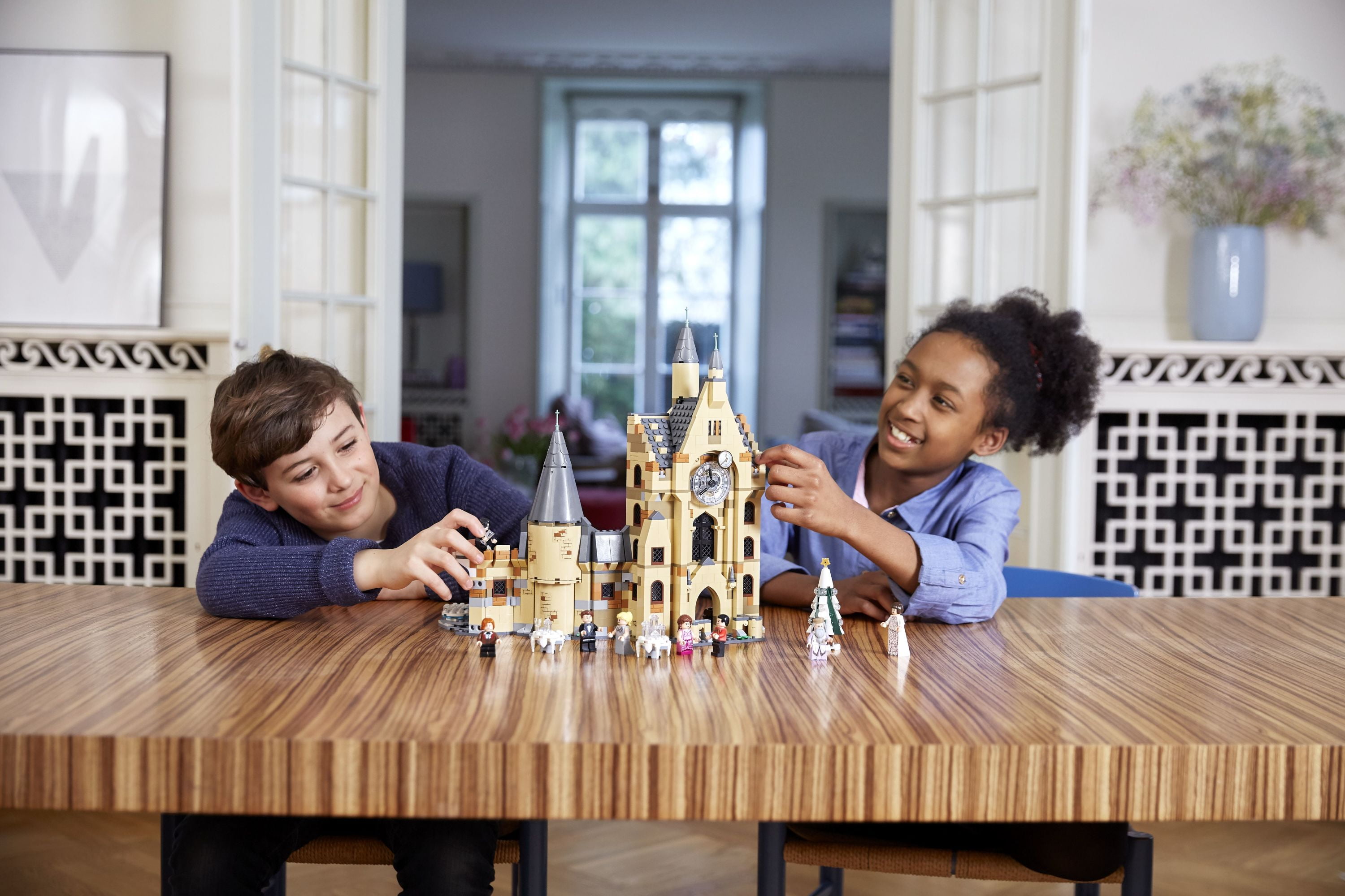 This Harry Potter set features the 3-level LEGO Hogwarts Castle Clock Tower with iconic locations from the Harry Potter movies, including the Defense Against the Dark Arts classroom, Dumbledore’s Office and a section of the Icy Ballroom This Harry Potter LEGO set includes 8 minifigures of your favorite characters: Harry Potter, Ron Weasley, Hermione Granger, Fleur Delacour, Cedric Diggory, Viktor Krum, Albus Dumbledore and Madame Maxime Kids can create their own Harry Potter world with LEGO’s collection of building sets inspired by the iconic books and movies The LEGO Hogwarts Clock Tower 75948 toy playset can be built together with all other original LEGO sets and LEGO bricks for creative building, and makes a great Harry Potter gift for any wizard enthusiast! The Hogwarts Clock Tower measures over 13” (35cm) high, 13” (34cm) wide and 7” (18cm) deep 922 pieces – Harry Potter LEGO set for boys and girls aged 9+ and for fans and big kids of all ages