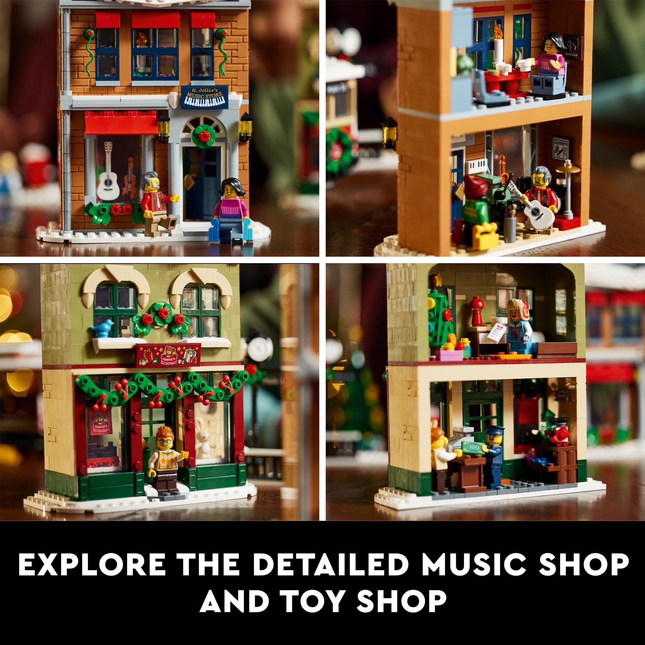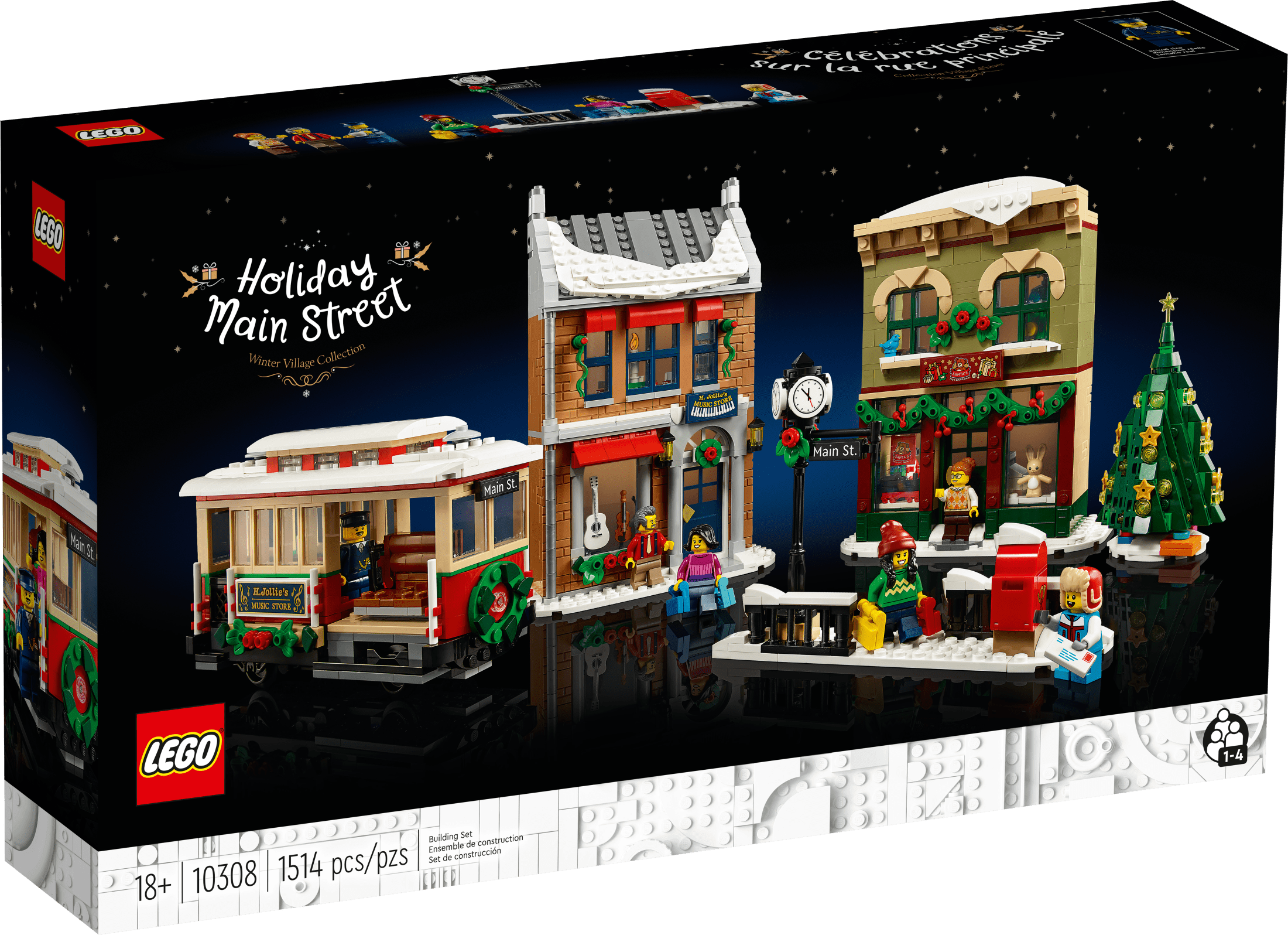A festive tradition – Enjoy quality time crafting all the details of this Holiday Main Street (10308) buildable model with a toy store, music store, shoppers, store owners and their cozy apartments Hop on the streetcar – Assemble all the details of the streetcar, ready to transport the minifigures. It’s decorated for Christmas and includes 4 seats for passengers Let’s go shopping – Head to the Santa’s Toys and Games toy store and H. Jollie’s music store to find toys and musical instruments, all waiting to make someone’s Christmas dreams come true Time to relax – When the working day is over, the store owners can relax in their apartments. Discover cozy details with a tree, presents and bed in the toy store, and a dining area in the music store 6 minifigures – Bring the LEGO Christmas village display to life with the set’s ensemble of minifigures. There are 2 shoppers, a child mailing a letter to Santa, 2 store owners and a streetcar driver