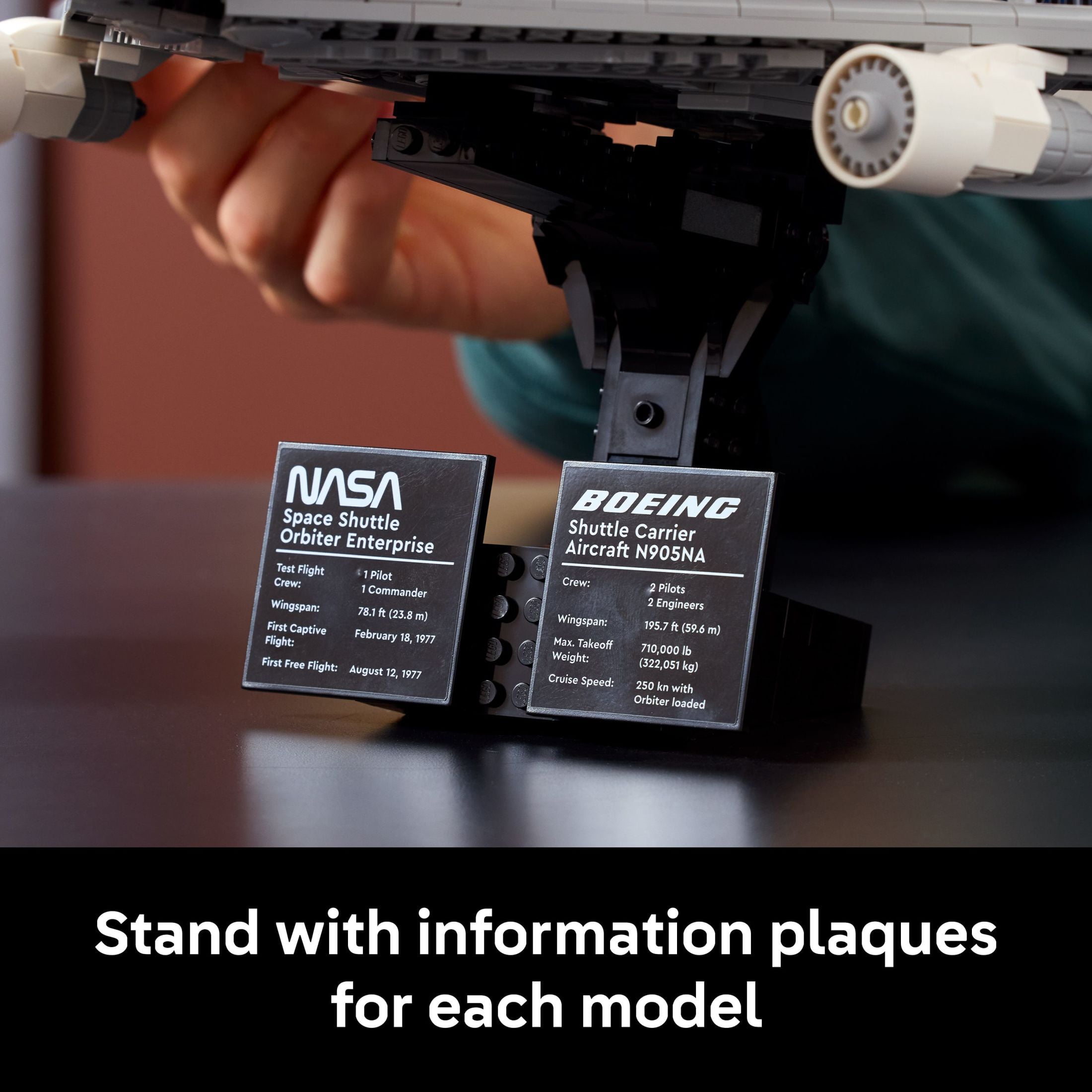 2 AVIATION LEGENDS, 1 BUILD – Recreate the iconic Boeing 747 and NASA Space Shuttle Enterprise with the LEGO Icons Shuttle Carrier Aircraft (10360) building set for adults 18 years old and up DEPLOY LANDING GEAR – Turn the dial to extend the massive 18-wheel landing system on your airplane model, just like real flight operations AUTHENTIC FEATURES & DETAILS – Remove the tail cone, engines, and landing gear from the NASA shuttle and stow them in the cargo bay during flight AIR & SPACE DECOR – Place your completed build on the included display stand and add the information plaques to transform your models into conversation-starting home and office decor BUILDING BLOCKS FOR ADULTS – This model building kit for makes an exceptional present for fans of model airplanes and space history, or adults who enjoy immersive arts and crafts projects ENHANCE YOUR BUILD – The LEGO Builder app provides 3D visualization tools, progress tracking, and digital building instructions for an immersive construction experience DIMENSIONS – The completed Boeing 747 with mounted NASA space shuttle contains 2,417 pieces and measures over 10.5 in. (27 cm) high, 25 in. (63 cm) long and 21 in. (53.5 cm) wide