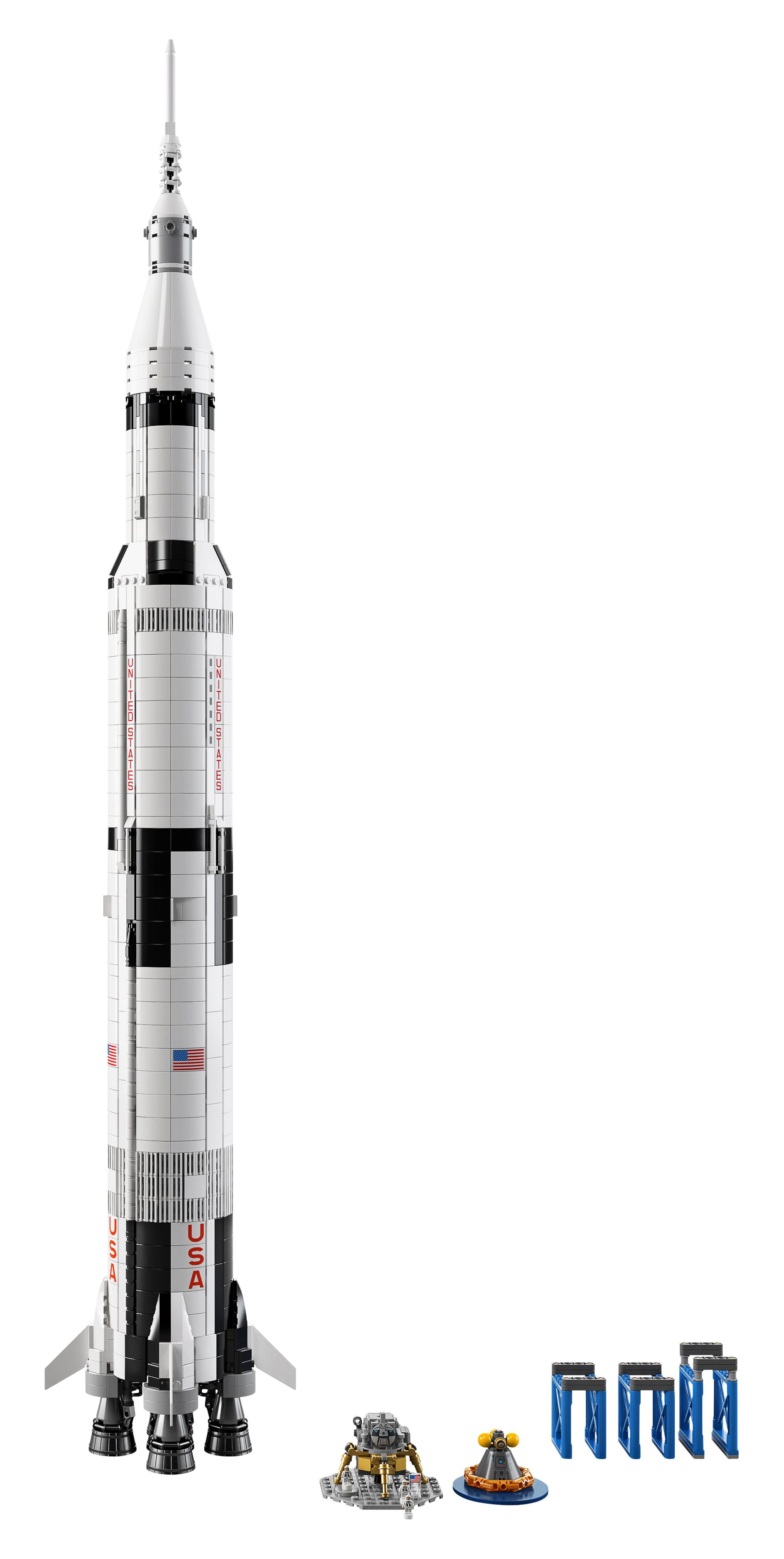 The Apollo spacecraft features the lunar lander and the lunar orbiter Also includes 3 new-for-June-2017 astronaut microfigures Great for display and role-playing the manned Apollo Moon missions This set includes over 1,900 pieces Measures over 39″ (100cm) high and 6 (17cm) in diameter