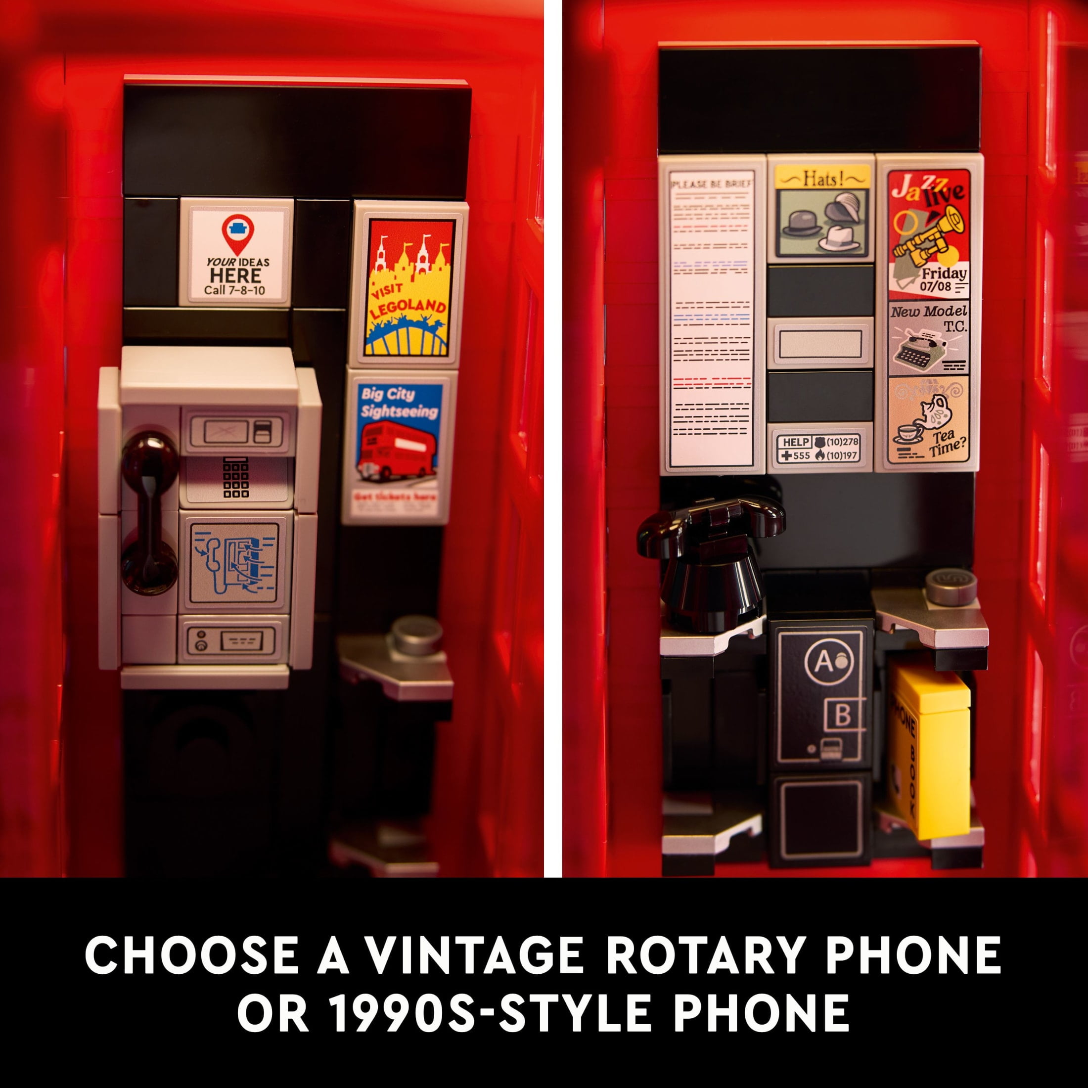 Red London Phone Box display model for adults – A fun gift idea for travelers, this LEGO Ideas set lets you create a brick built version of a British cultural icon, the K2 London telephone box London souvenir gift – This creative building set features an authentically detailed telephone box on a cobbled street, a lamppost with hanging flower baskets, a flowerpot and a fence with a road sign Fun LEGO set with 2 build options – Customize the interior of the London phone booth with either the iconic rotary phone or a 1990s-style phone, both with sticker decorations Buildable decor for your home or office desk – Press the button on the roof of the booth to activate the LEGO light brick inside, and use the fence as a cell phone stand Nostalgic gift idea for adults – Treat yourself or give this LEGO Ideas set as a British themed birthday gift to a travel lover or someone with passion for history The LEGO fans’ choice – This collectible LEGO set for adults is one of a diverse range of LEGO Ideas sets, each created by a fan designer, voted for by LEGO fans and produced by the LEGO Group Fun buildable decor for the home or office – This 1,460-piece build and display model measures over 12 in. (31 cm) high, 7.5 in. (19 cm) wide and 6 in. (15 cm) deep