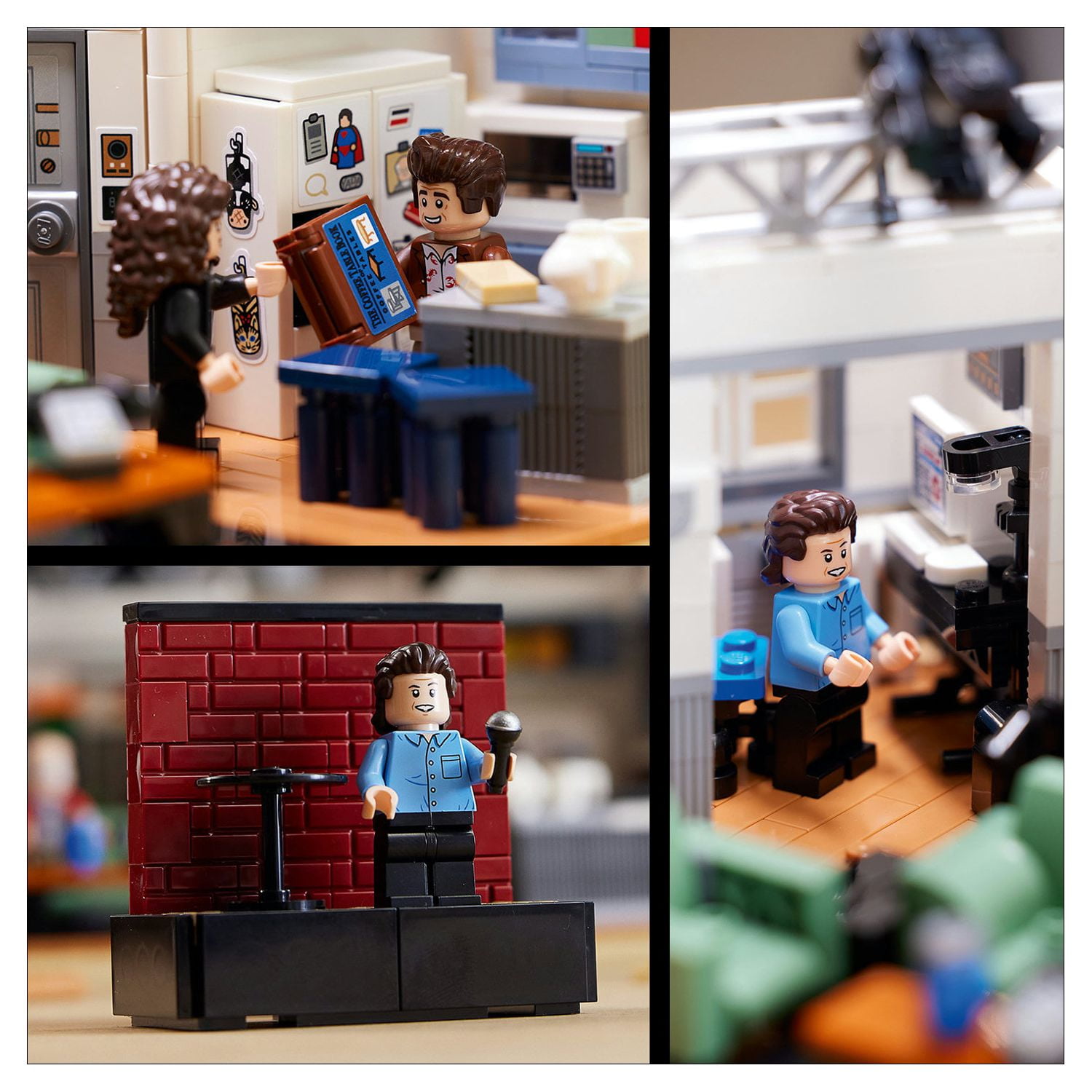Relive scenes from the classic 1990s TV sitcom about nothing with this fantastic LEGO® Ideas Seinfeld display model (21328), featuring a brick-built recreation of Jerry’s apartment Includes 5 minifigures: Jerry Seinfeld, George Costanza, Cosmo Kramer, Elaine Benes and Newman, with accessory elements including a microphone, pretzel, fishing rod, slice of bread and fish in a bag Jerry’s apartment features a kitchen with a buildable counter, fridge with Superman™ sticker, microwave oven and more, a living room with a sofa, armchair and tables, plus an office area Also includes a buildable stage and accessory elements inspired by the show, including a statue, muffin top, Prognosis Negative videotape, Commando 8 air conditioner and Festivus pole The model measures over 5.5 in. (14 cm) high, 13 in. (33 cm) wide and 7 in. (18 cm) deep. A delightful display piece for your home, the set is also a super gift idea for Seinfeld and LEGO® fans