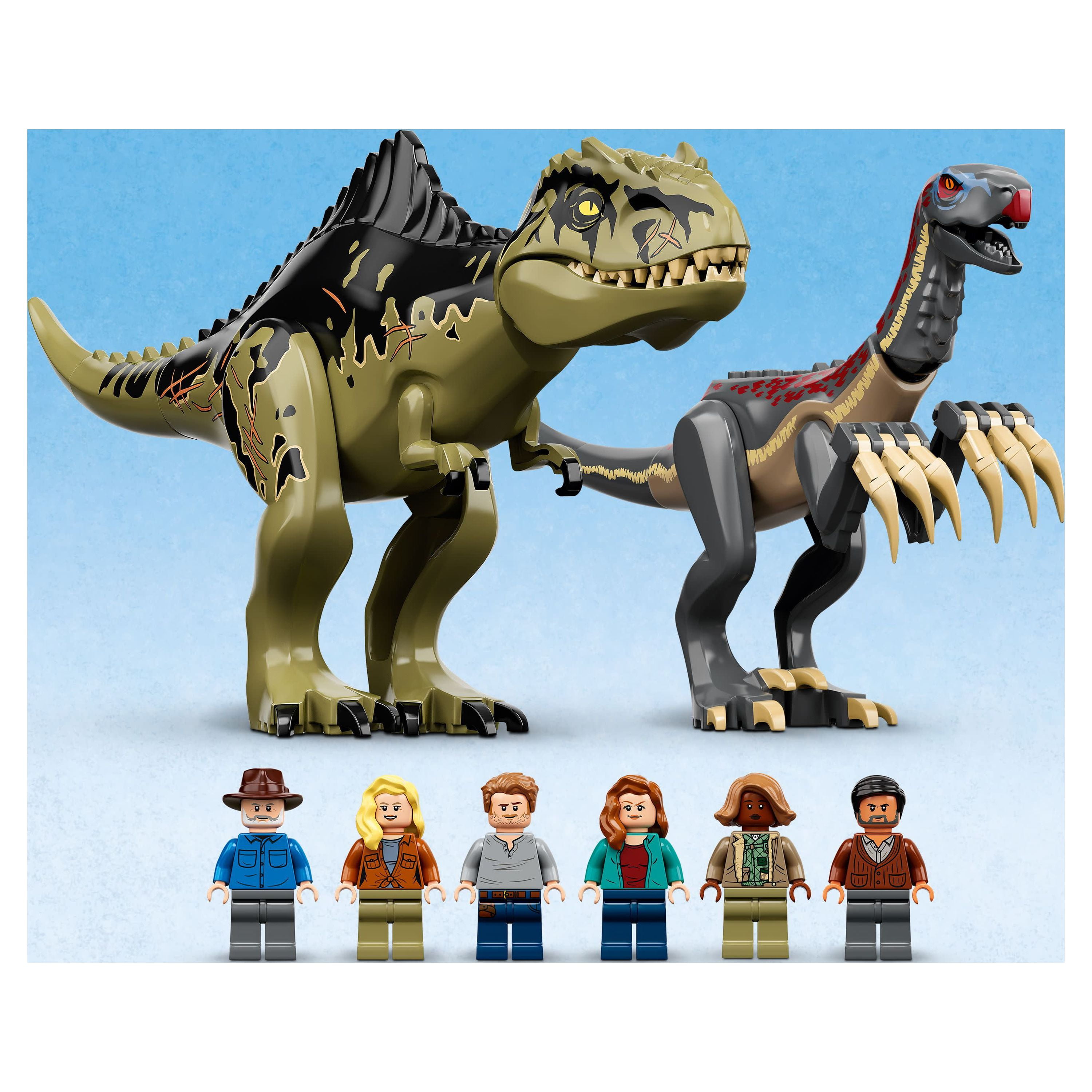 LEGO Jurassic World Giganotosaurus & Therizinosaurus Attack 76949 with 2 Dinosaur Toy Figures, ATV Car, Helicopter & Garage, Gifts for Kids, Boys and Girls