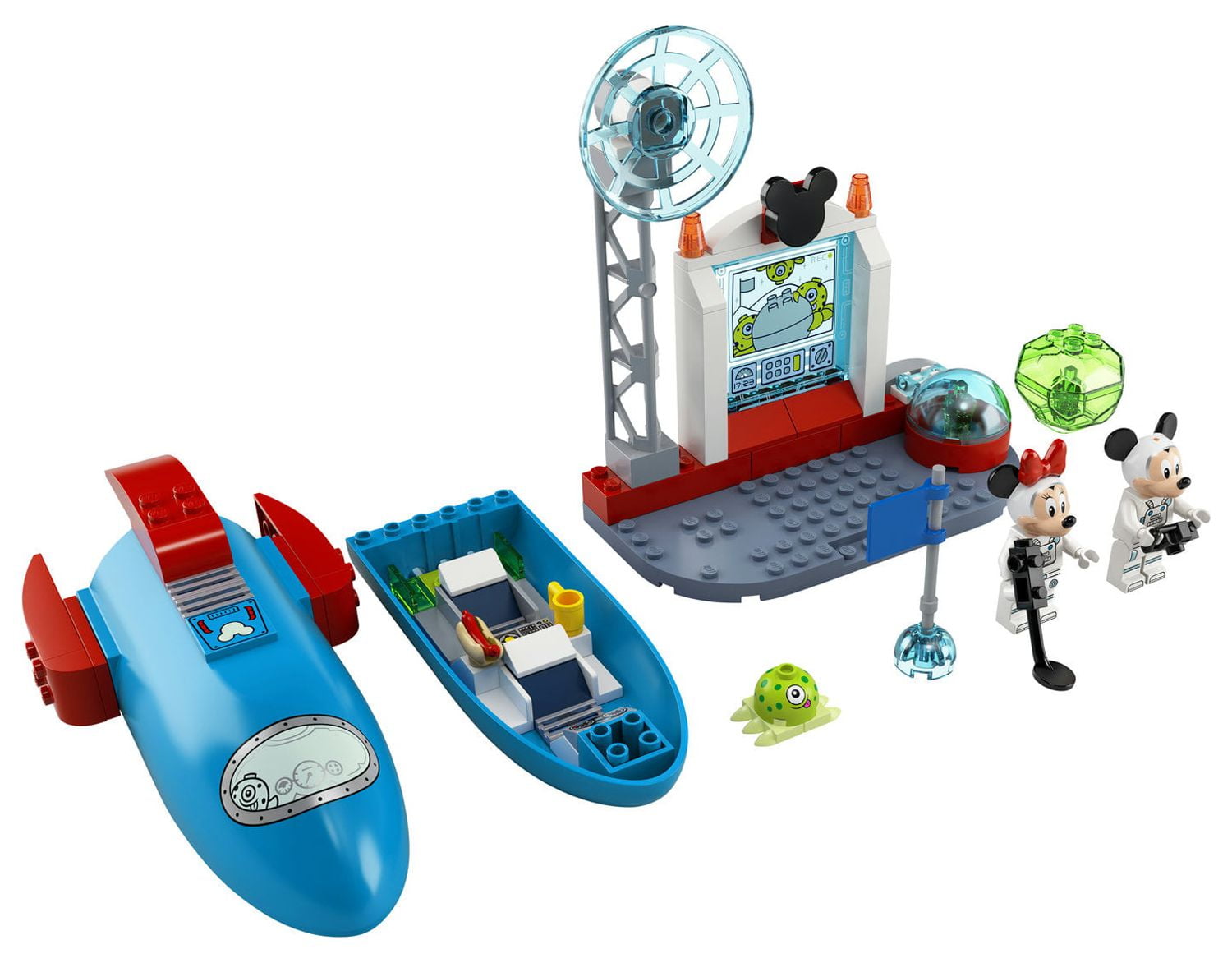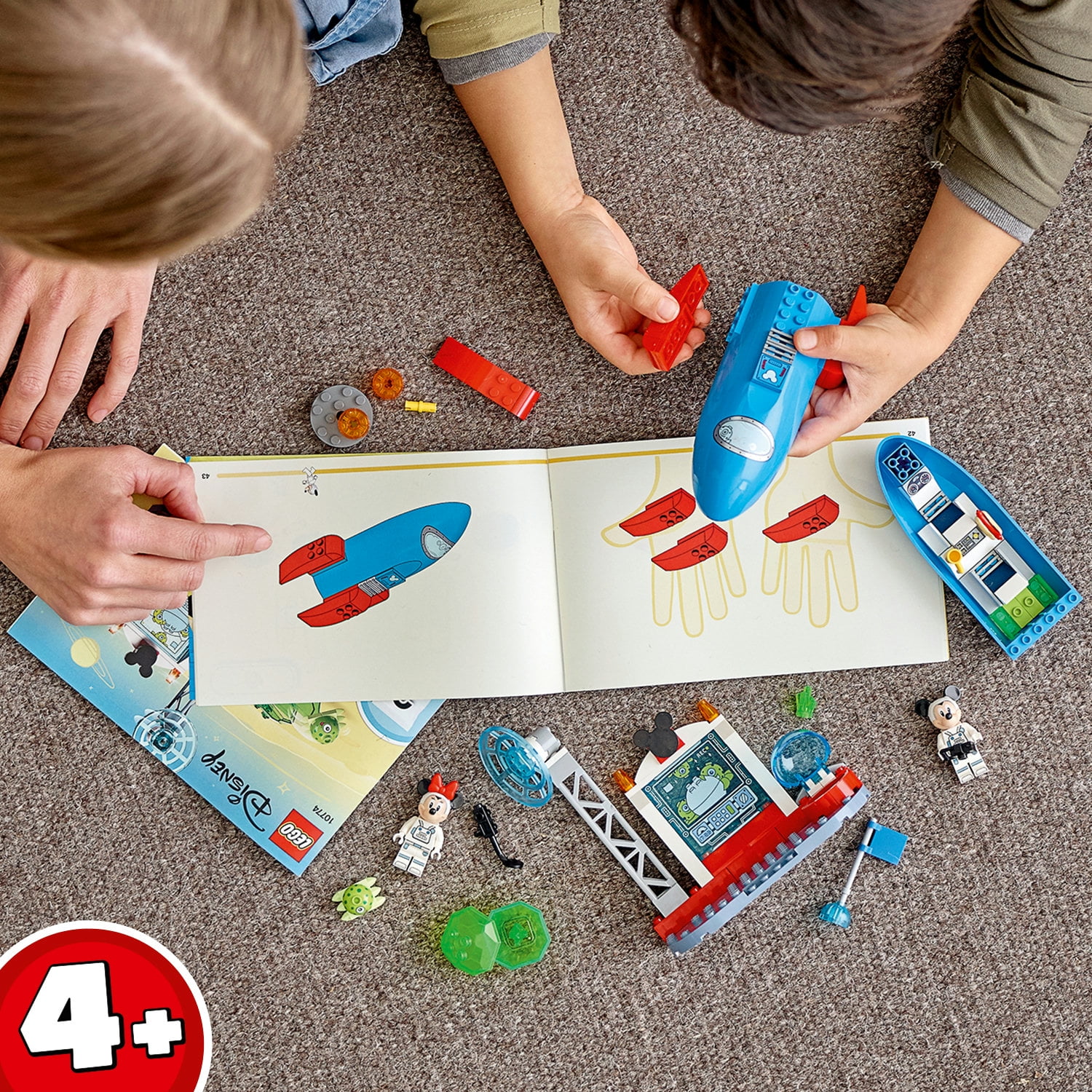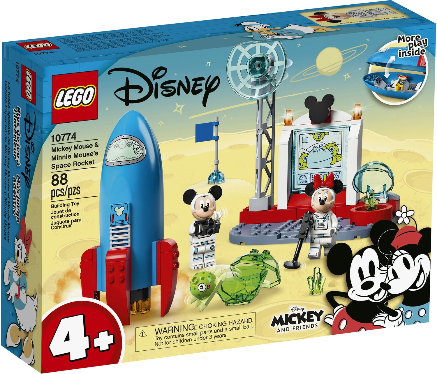 This LEGO Disney Mickey Mouse & Minnie Mouse’s Space Rocket (10774) set gives youngsters a set packed with fun role-play and building skills growth as they fly around in a rocket and explore space A perfect gift for kids aged 4 and up who want to set trends at the playground! Surprise a child with this creative construction toy that boosts imagination and confidence, and entertains for hours Perfect for learning to build. The rocket and space station include Starter Bricks elements for an easy build so there’s more time for play, plus 2 minifigures and an exclusive Mickey silhouette tile This LEGO Disney set is full of fun details and accessories, including a large rock that opens and holds an alien inside, plus a camera and small flag build to boost role-play possibilities The rocket measures over 5.5 in. (15 cm) high and 2.5 in. (7 cm) long, and the whole set inspires endless play. Because it’s compatible with other LEGO bricks, it can expand as building skills grow