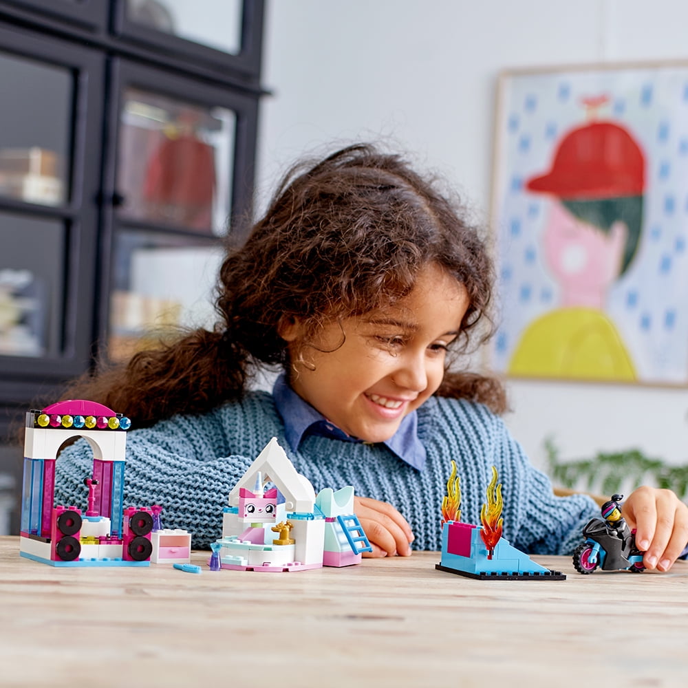 Give your young master builder hours of pleasure with THE LEGO MOVIE 2 70833 Lucy s Builder Box! This creative toy features 3 buildable models Lucy s motorcycle with a ramp, rotating dance stage and the Unikitty spa, with a spa bath and washstand. This LEGO building set also includes a Lucy minifigure and a brick-built Unikitty figure for endless role-play fun.