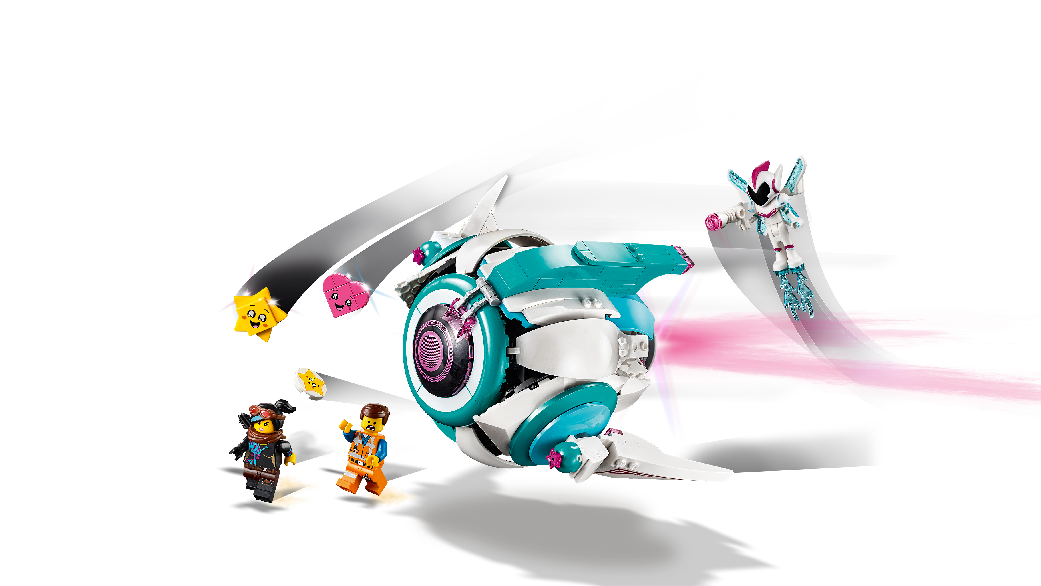 Includes 5 THE LEGO MOVIE 2 characters: a LEGO Emmet minifigure and Lucy minifigure, plus a Sweet Mayhem mini-doll figure and brick-built Heart and Star toy figures Sweet Mayhem’s Systar Starship toy features an opening cockpit for a mini-doll or minifigure, retractable landing gear, a roll of stickers, disc shooter and an opening prison cell with a removable control panel and a gun Weapons include Lucy’s crossbow and Sweet Mayhem’s gun Starship accessory elements include Lucy’s quiver, Sweet Mayhem’s adjustable wings, helmet, 2 hearts and translucent-blue boosters Recreate fun-packed scenes from THE LEGO MOVIE 2 with this awesome building toy For boys and girls ages 9+