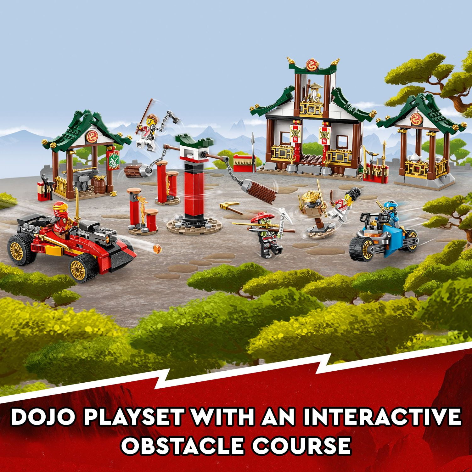 LEGO NINJAGO Creative Ninja Brick Box building set features elements to build a ninja training center, plus a toy storage box and LEGO bricks Kids can build a LEGO NINJAGO Dojo obstacle course with 3 interactive stations, 2 spinning punch bags and an armed spinning dummy figure Kids also build a LEGO NINJAGO car toy, a toy bike and an armory packed with weapons, so they can role-play action scenarios ninja-style The LEGO NINJAGO toy for kids 5+ years old includes 6 minifigures with toy weapons: Kai, Nya, Master Wu, female and male apprentices and Bone Hunter Kids can use the included LEGO pieces to build their own buildings and vehicles; building suggestions for creative inspiration are included LEGO NINJAGO brick box building toy with cool vehicles and characters makes a fab birthday gift or any time treat toy for young ninja fans Check out the immersive LEGO Builder app that helps kids zoom, rotate and visualize the construction toy model in 3D as they build