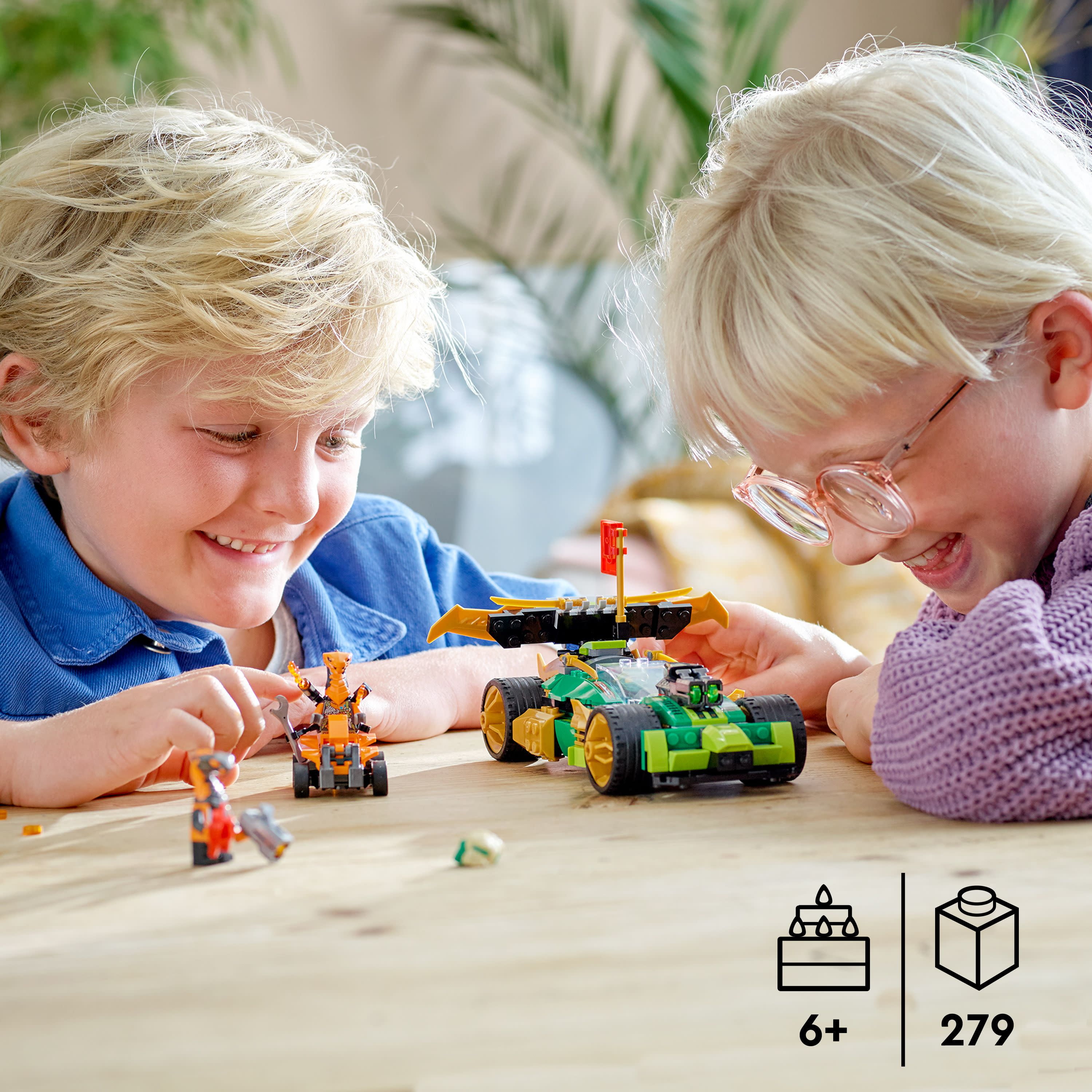 LEGO fans can play out hours of action-packed, gripping ninja action with this highly impressive LEGO NINJAGO Lloyd’s Race Car EVO (71763) set. In 3 progressive stages, the toy car for kids 6+ years old can be upgraded from a buggy toy to a powerful armored NINJAGO racing car toy, with shooters, spoilers with blades and gold panels. This LEGO Ninjago car toys set includes 3 minifigures: Lloyd armed with a sword, Cobra Mechanic on a quad bike with a flamethrower, and Python Dynamite with a gun and a stick of dynamite. New for January 2022, when kids defeat the ninja enemies and complete their mission, they are rewarded with a collectible banner. NINJAGO toys and figures have the power to lure kids away from their screens and into an all-consuming world of fantasy action. Here they can team up with their brave ninja heroes to battle villains with a stunning collection of building sets, including dragons, mech action figures and vehicles. NINJAGO toys also make fantastic birthday toy gifts for kids 6 + years old who are into ninjas and racing cars. The NINJAGO car toy measures over 3.5 in. (9 cm) high, 7.5 in. (20 cm) long and 5.5 in. (14 cm) wide. Contains 279 pieces.
