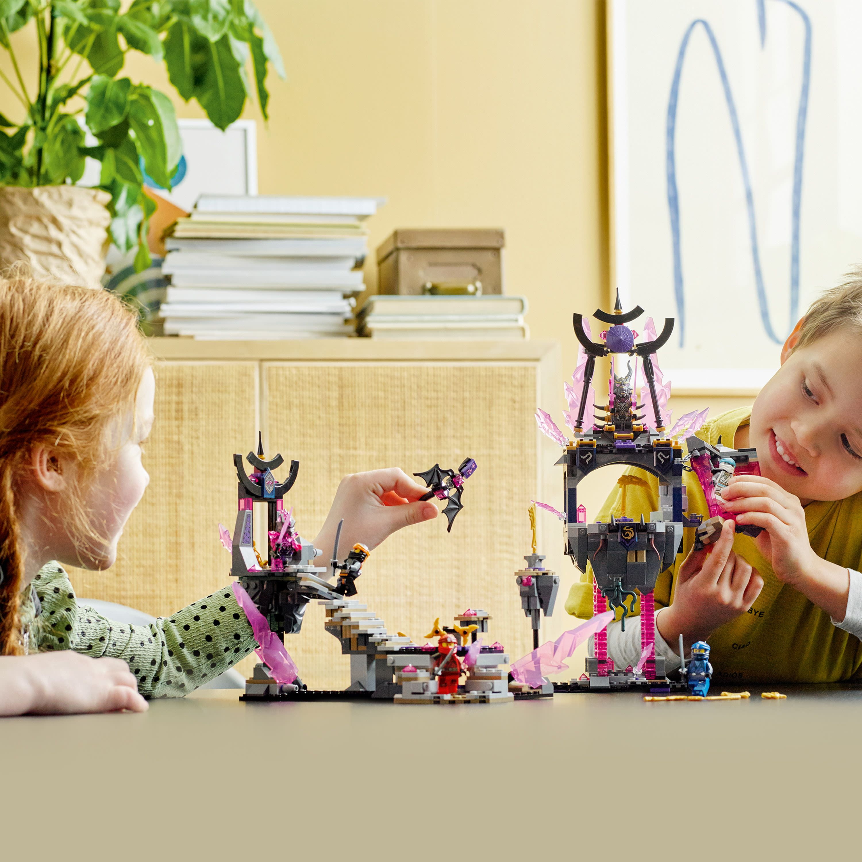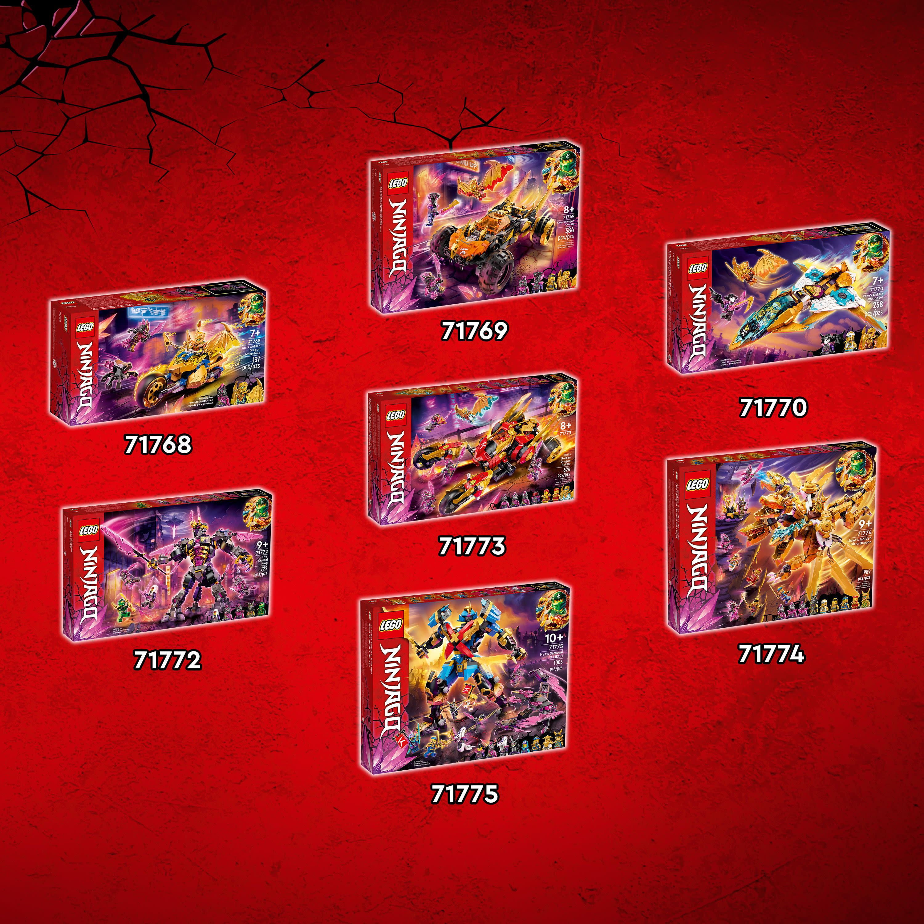Kids can bring characters and action from the NINJAGO: Crystallized TV series to life with this action-packed LEGO NINJAGO Crystal Temple set Features a buildable temple packed with cool features and functions, including The Crystal King’s throne, a floating prison and several traps Includes 4 exclusive NINJAGO minifigures: Cole, Zane, Kai and Jay plus elemental weapons: swords, shuriken, bladed nun chucks and a scythe This LEGO NINJAGO action toy also features an exclusive Crystal King minifigure with 4 arms & swords plus a Vengestone Guard with crystal armor Kids dare to climb to the top of the temple, past dangerous traps to retrieve the stolen elemental weapons from the Crystal King Comes with the free LEGO Building Instructions app to zoom, rotate and visualize a digital version of the model on smartphones and tablets Check 7 other playsets from the NINJAGO: Crystallized TV series, including The Crystal King Temple (71771) and Nya’s Samurai X MECH (71775)