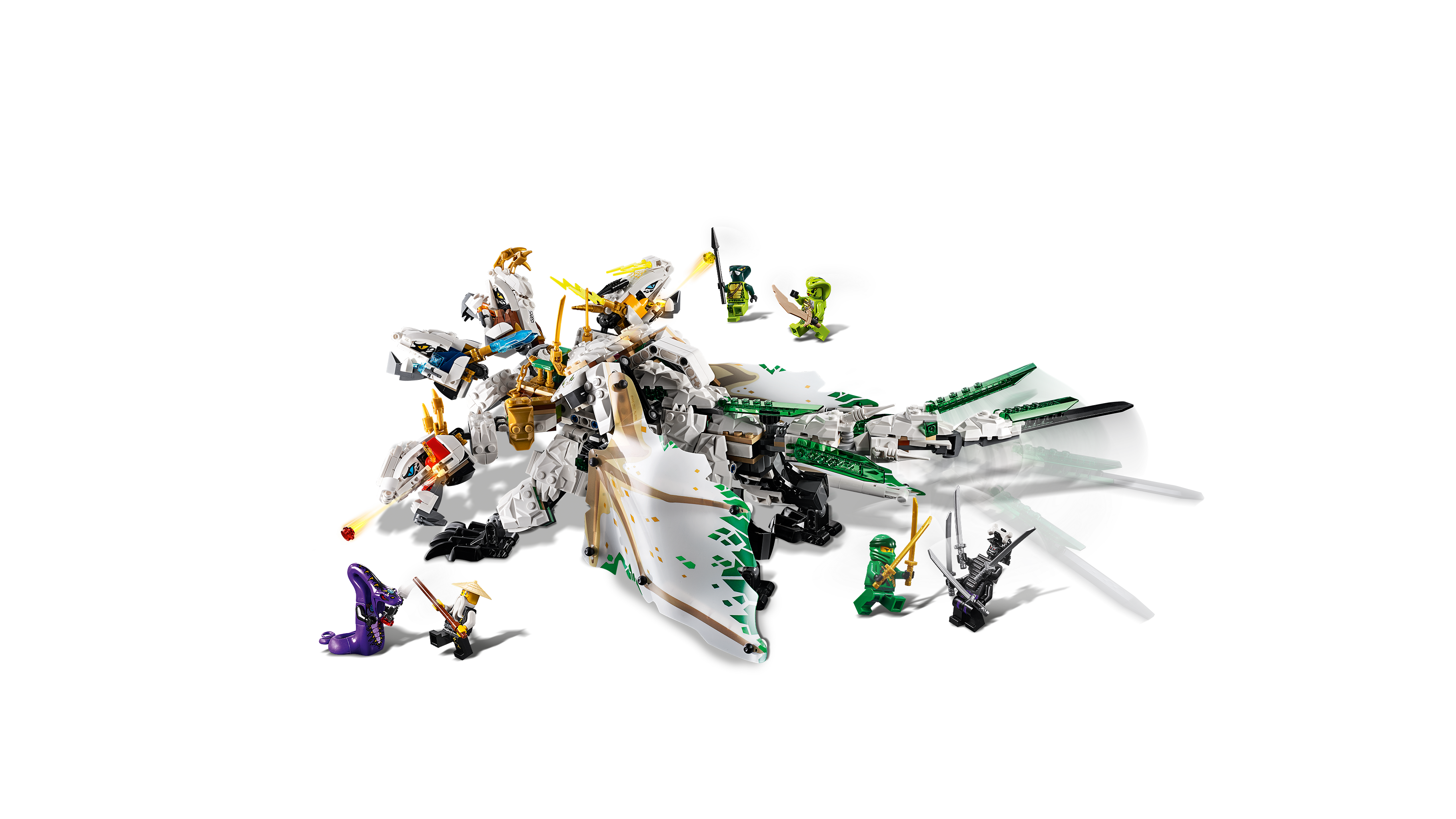 This ninja toy features 6 LEGO NINJAGO minifigures, including ninja characters Lloyd and Wu, plus Lord Garmadon, Spitta, Lasha and Pythor Lift the 4-headed dragon by the handle to increase its wingspan and fly! Weapons include LEGO NINJAGO ninja Lloyd’s 2 gold-colored katanas, Wu’s bo staff, Lord Garmadon’s 4 silver-colored katanas, Spitta’s spear, Lasha’s butterfly sword and Pythor’s short Serpentine dagger The LEGO NINJAGO Legacy range features new versions of popular LEGO NINJAGO sets from past seasons to recreate or reimagine iconic conflicts from the NINJAGO Masters of Spinjitzu TV show Measures over 7” (20cm) high, 21” (55cm) long and 17” (44cm) wide