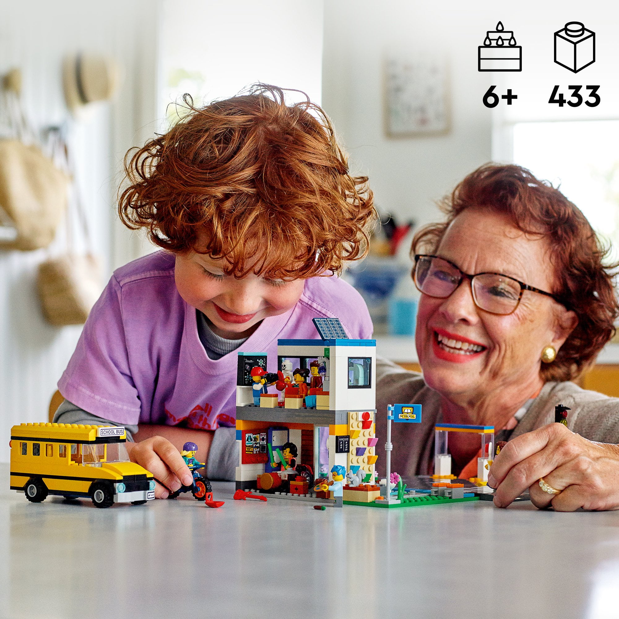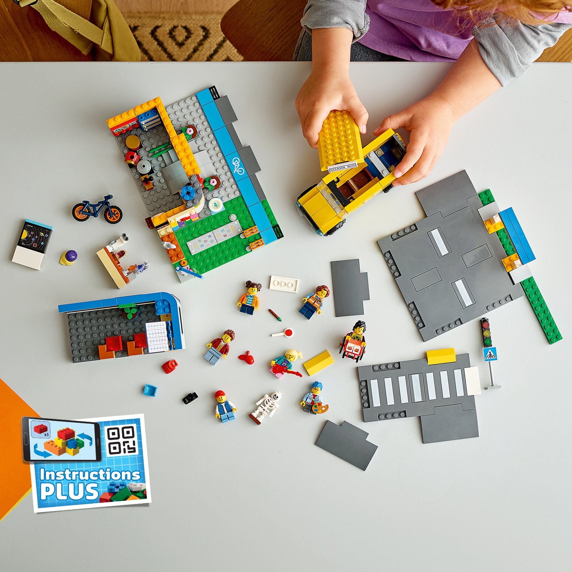 Exciting school adventures await with this playset, featuring 2 classrooms and a yard with a climbing wall and hopscotch, plus a toy school bus and bicycle. The road plates, with crosswalks and bike lanes, can also be used to connect to other LEGO sets, and with adventure TV series TV characters, there’s plenty of inspiration for imaginative play. This LEGO construction set includes a step-by-step printed building guide and interactive digital building instructions. Available in the free LEGO building instructions app for smartphones and tablets, the digital guide comes with intuitive zoom and rotates tools that allow kids to visualize each model from all angles as they build. The playsets put kids at the heart of the action with detailed structures, realistic vehicles, and inspiring characters that nurture open-ended play based on real-life scenarios.