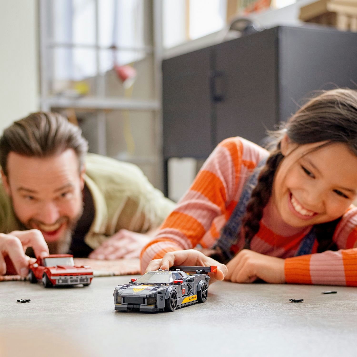 The LEGO Speed Champions Chevrolet Corvette C8.R Race Car and 1969 Chevrolet Corvette (76903) set makes a perfect gift for fans of high-performance automobiles. Kids and car enthusiasts get to collect and explore 2 groundbreaking Corvettes from different eras. Packed with realistic details, these epic cars are fun to build, great for display and awesome to race! The vehicles in this Speed Champions playset come with a wide chassis, which allows room for a 2-seat cockpit and even more authentic detailing. And with 2 Chevrolet driver minifigures geared up and ready to go, the scene is set for legendary racetrack action. Speed Champions sets deliver authentic replicas of the world’s most innovative and best-known automobiles. Perfect for display, the collectible models are also great for thrilling race action against other vehicles from the Speed Champions range.