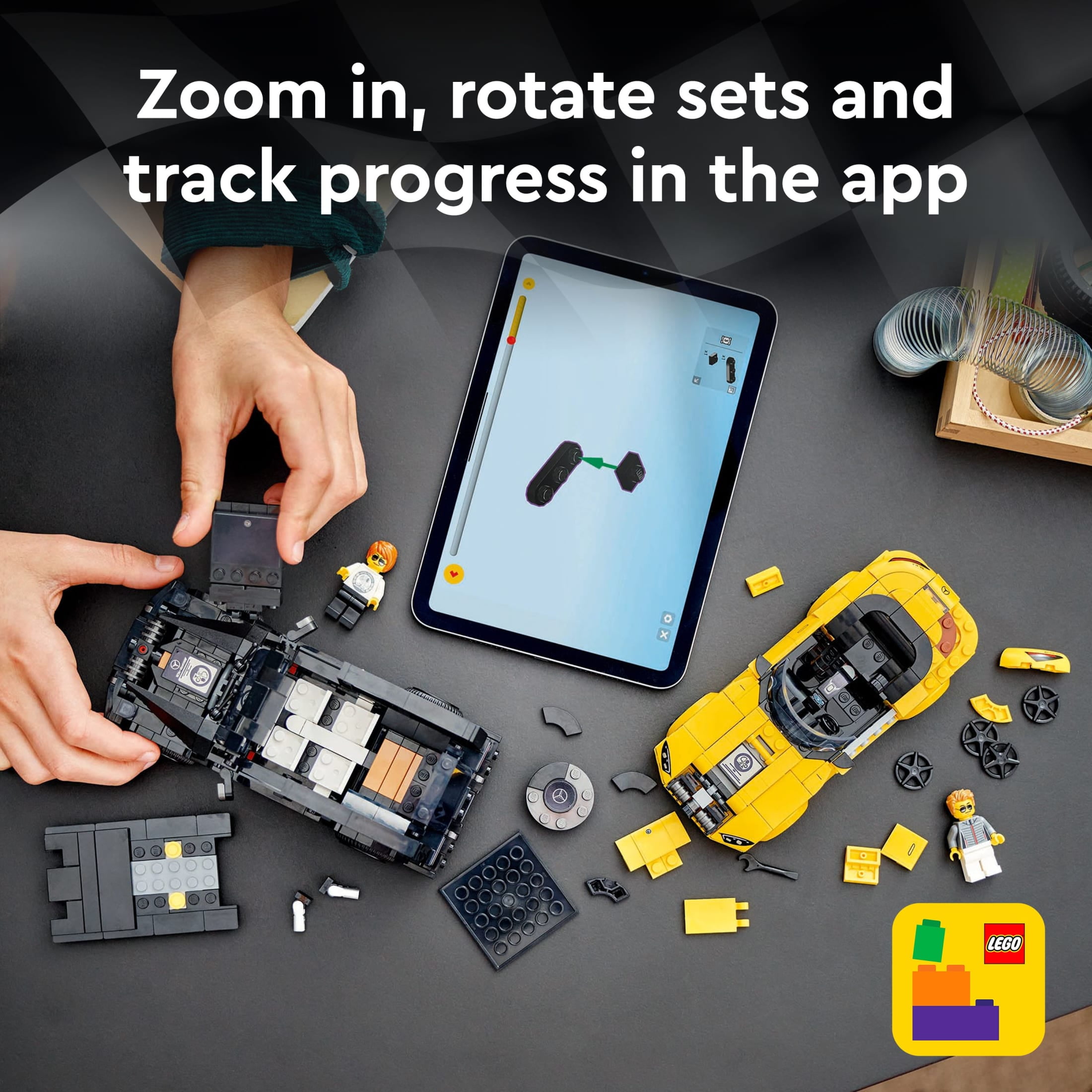 2 Mercedes F1 toy cars for kids – LEGO Speed Champions Mercedes-AMG G 63 & Mercedes-AMG SL 63 vehicle playset for boys and girls ages 10 and up and adult Formula 1 model car collectors 2 driver minifigures – Each buildable vehicle toy comes with a driver minifigure wearing a Mercedes outfit so kids can role-play fast-paced races Authentic Mercedes design – Each collectible car model features design details from the real life versions, including front grilles, hoods, wheels, interior features and the famous Mercedes livery Display models – After kids have enjoyed hours of independent play racing 2 LEGO toy model cars, the vehicles can be displayed on a shelf or bedside table Convertible toy car gifts – This Mercedes car playset provides a fun build and play experience and is a gift idea for kids ages 10 and up or adult model car collectors Play with and display car building toys – LEGO Speed Champions car building sets let kids and car fans build replicas of some of the world’s most iconic vehicles Measurements – This 806-piece LEGO driving playset features a Mercedes-AMG car toy that measures over 2.5 in. (7 cm) high, 7 in. (18 cm) long and 3 in. (8 cm) wide