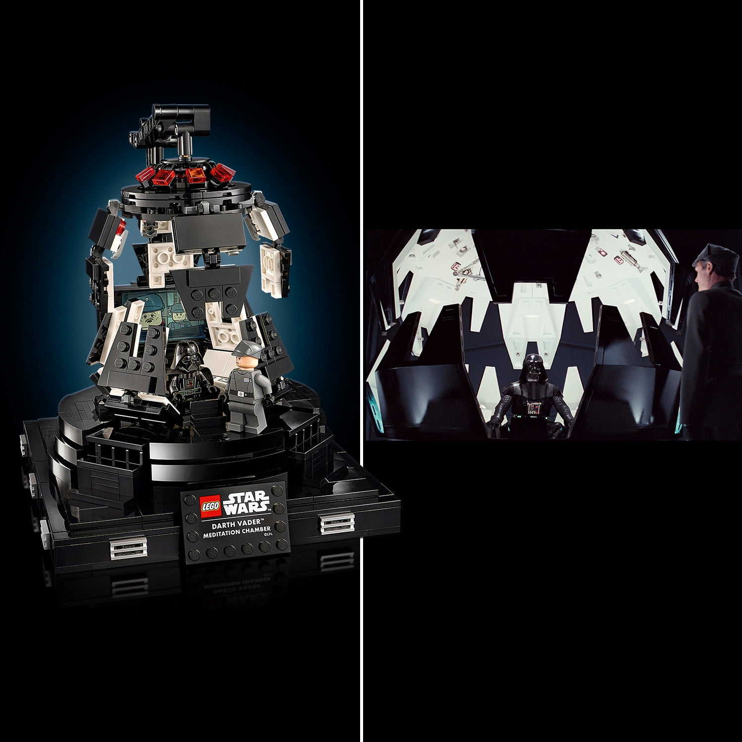 Find your building zen and relive an iconic Star Wars: The Empire Strikes Back scene as you construct the first-ever LEGO brick model of the Darth Vader Meditation Chamber (75296) This build-to-display model comes with 2 LEGO Star Wars Minifigures: Darth Vader and General Veers with a blaster pistol The chamber opens and closes like the real thing and has a rotating seat for Darth Vader, a big screen, control panels, a stud for General Veers to stand on, plus a nameplate This set is part of a series of collectible LEGO Star Wars build-to-display models This awesome 663-piece set offers a rewarding building experience and makes the best birthday, holiday, or surprise gift for any Star Wars enthusiast, experienced LEGO builder or hobbyist