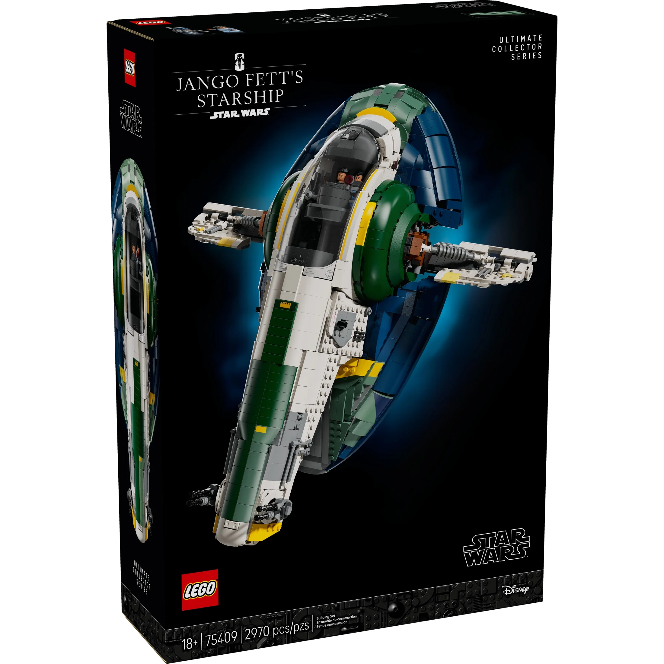 ULTIMATE COLLECTOR SERIES – Adults 18 years old and up can recreate Jango Fett’s legendary ship with the LEGO Star Wars Jango Fett’s Firespray-Class Starship (75409) building set JANGO & BOBA FETT MINIFIGURES – Collectors can position the father and son duo in the removable section of the starship’s cockpit to set the scene for Attack of the Clones action AUTHENTIC DETAILS – Adults can lift off the cockpit canopy to view the detailed interior, push the main entrance open, reveal the compartment containing a seismic charge, and aim the blaster cannons DISPLAY YOUR WAY – Builders can place their creation in landing mode or showcase it in upright flight position on the buildable stand with information plaque—wings remain horizontal when tilted STAR WARS GIFT FOR ADULTS – Perfect for creative adult fans and UCS collectors who love DIY Star Wars collectibles and want to enjoy mindful, creative activities 3D BUILDING INSTRUCTIONS – Adults can use the LEGO Builder app to view a 3D digital version of this construction model as they build, track progress and save sets DIMENSIONS – The LEGO Star Wars starship in this 2,970-piece fantasy set measures over 7.5 in. (19 cm) high, 17.5 in. (44 cm) long and 15.5 in. (39 cm) wide