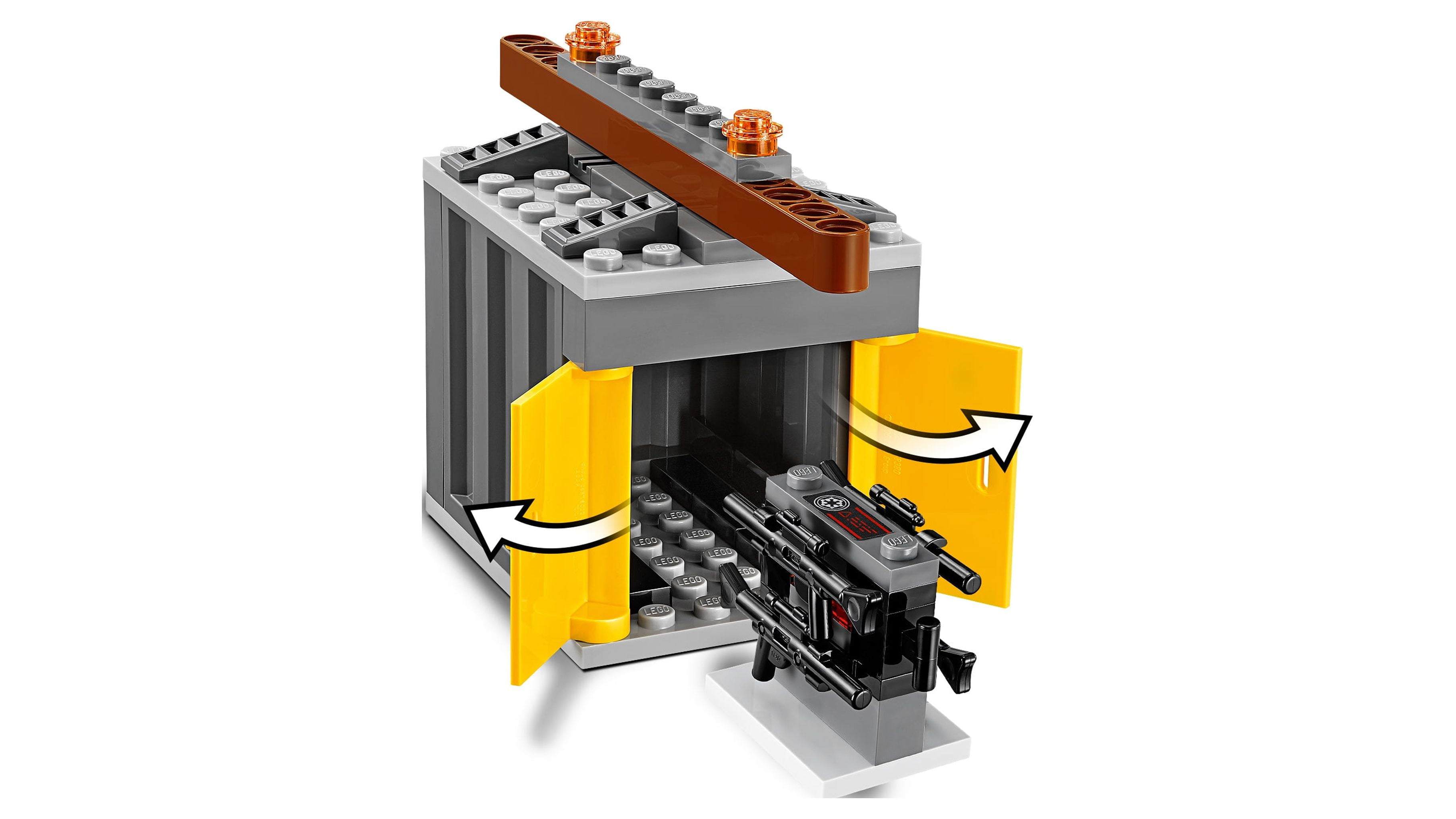 Includes LEGO minifigures: Qira, Val, Rio Durant and 2 of Dryden’s guards Features rotating pylons with movable lifting hooks, an opening minifigure cockpit, side-mounted stud shooters and a platform underneath for carrying minifigures Includes a buildable, opening cargo container with lifting beam Load the container, hook it up and lift it away! Rotate the lifter arms for landing and flying modes Weapons include 2 blasters, 3 blaster pistols and 4 rack-mounted blaster rifles inside the container Combines with the 75215 Cloud-Rider Swoop Bikes and 75217 Imperial Conveyex Transport for the ultimate high-speed train heist! Recreate exciting scenes from Solo: A Star Wars Story! Imperial AT-Hauler measures over 4inches (12cm) high, 12inches (32cm) long and 4inches (21cm) wide
