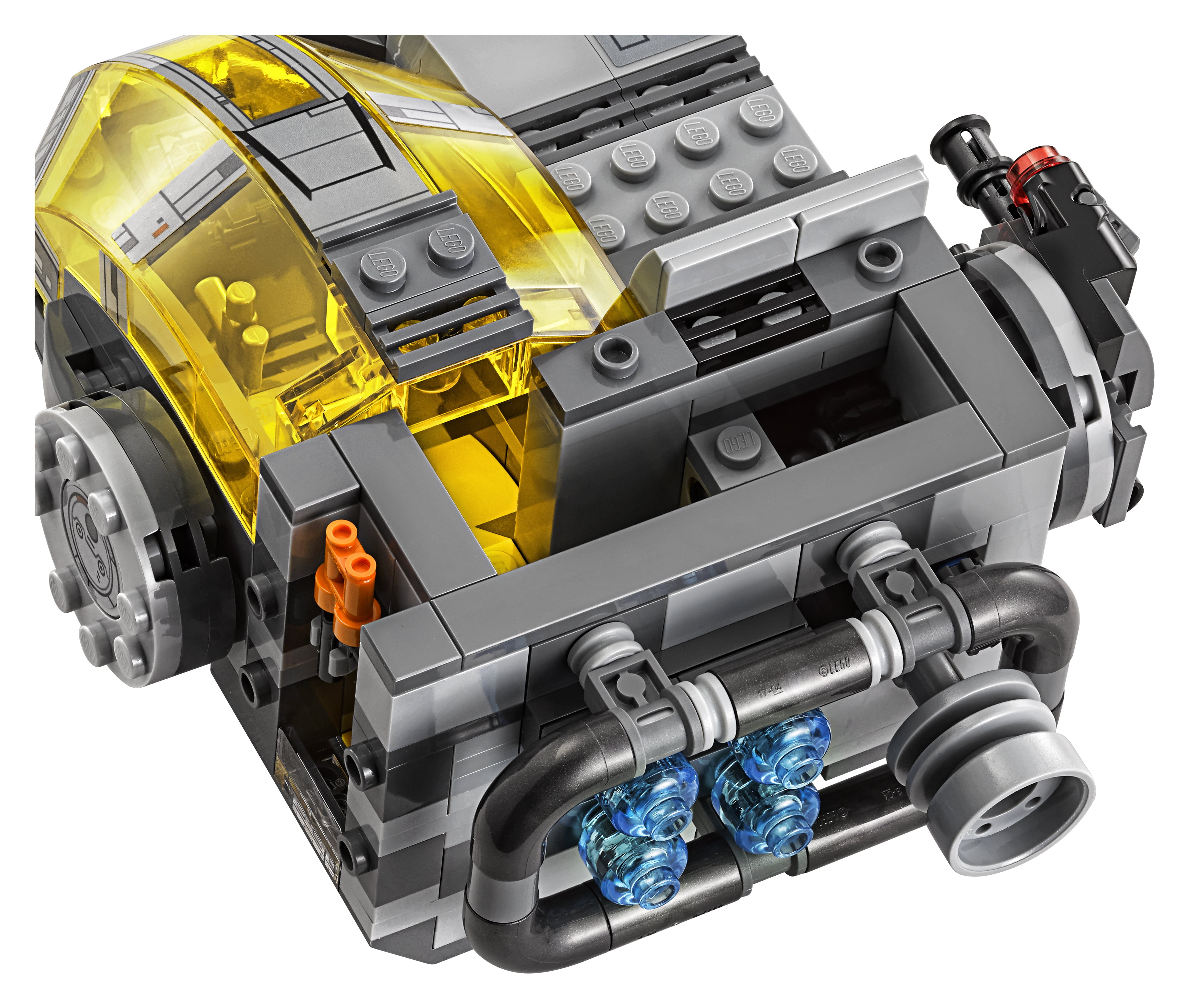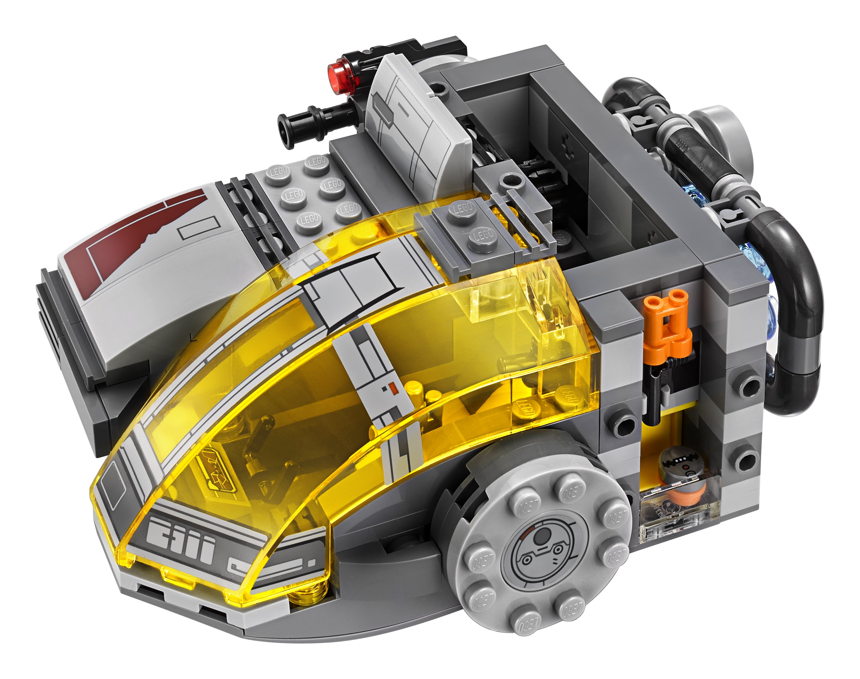 Includes Finn and Rose minifigures plus a BB-8 figure. Features a 2-minifigure cockpit with removable canopy, detachable panels that reveal a rear storage compartment and weapon store, aimable side stud shooter and dual spring-loaded shooters. Roll the wheel to fire the spring-loaded shooters. Remove the top panel to reveal BB-8’s secret stowaway spot. Weapons include Finn’s blaster and Rose’s shock gun and blaster pistol. Recreate exciting scenes from Star Wars: Episode VIII. Measures over 3” (10cm) high, 5” (14cm) long and 4” (12cm) wide.