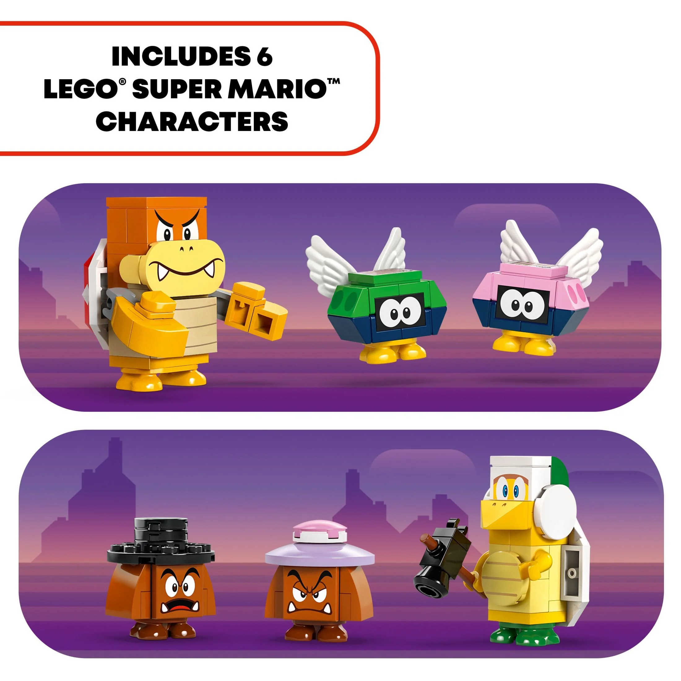 The Bowser Express Train toy for kids – All aboard for role-play fun and more with this LEGO Super Mario playset, featuring a detailed train, 2 train stations and a handcar Adventure playset featuring 6 LEGO Super Mario toy figures – A Hammer Bro, Boom Boom, 2 Goombas and 2 Para-Biddybuds Fun features – A train locomotive with a lever-operated spinning platform and Super Star Block, passenger wagon with a removable roof and a cannon wagon with a spring-loaded shooter Interactive digital play – Help LEGO Mario, LEGO Luigi or LEGO Peach (figures not included) chase the train in the handcar, defeat all enemies and drive the train to the station The companion LEGO Super Mario app – Download the app for building instructions, inspiring tips and more; for a list of compatible Android and iOS devices, visit LEGO.com/devicecheck Spark children’s imaginations – LEGO Super Mario playsets are designed for solo or social play, offering role play, digital coin-collecting and fun challenges through expansion and rebuilding Measurements – The Bowser toy train in this 1,392-piece set measures over 8.5 in. (22 cm) high, 26.5 in. (68 cm) long and 4.5 in. (12 cm) wide, and it can be used with other LEGO Super Mario sets
