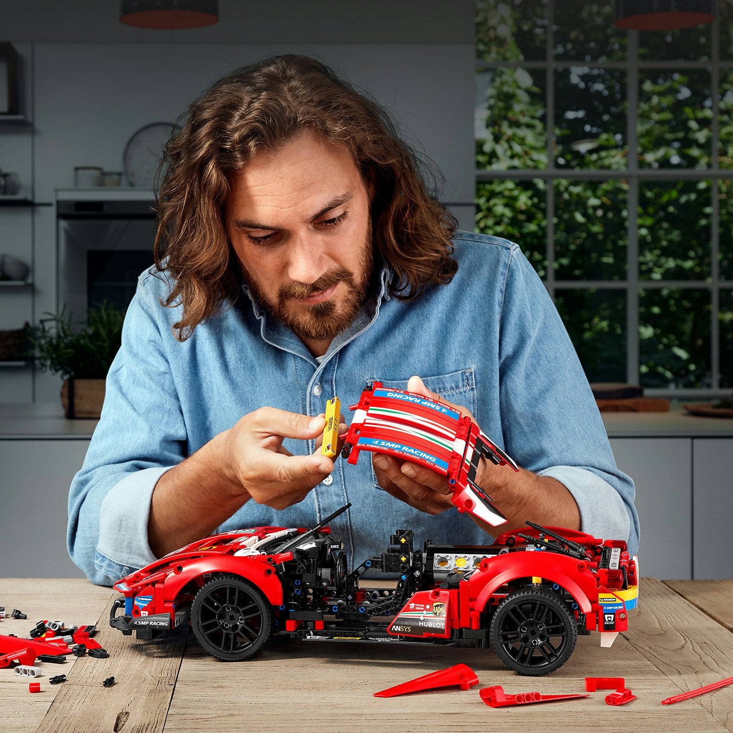 Immerse yourself in the exciting world of endurance racing, creating your own displayable LEGO Technic model version of the iconic Ferrari 488 GTE racing car Authentic features include front and back suspension, opening doors, a V8 engine with moving pistons and functioning steering wheel With original race stickers and a faithful color scheme, the LEGO Technic Ferrari 488 GTE “AF Corse #51” (42125) will take pride of place in the home or office of any motorsport fan A rewarding building project for adults and an inspired birthday or special occasion gift for anyone who loves endurance racing, Ferrari racing cars and motorsport Model measures over 5 in. (13 cm) high, 19 in. (48 cm) long and 8.5 in. (21 cm) wide This set comes with a special building instruction book featuring exclusive content, including details about the car and the AF Corse 51 team.