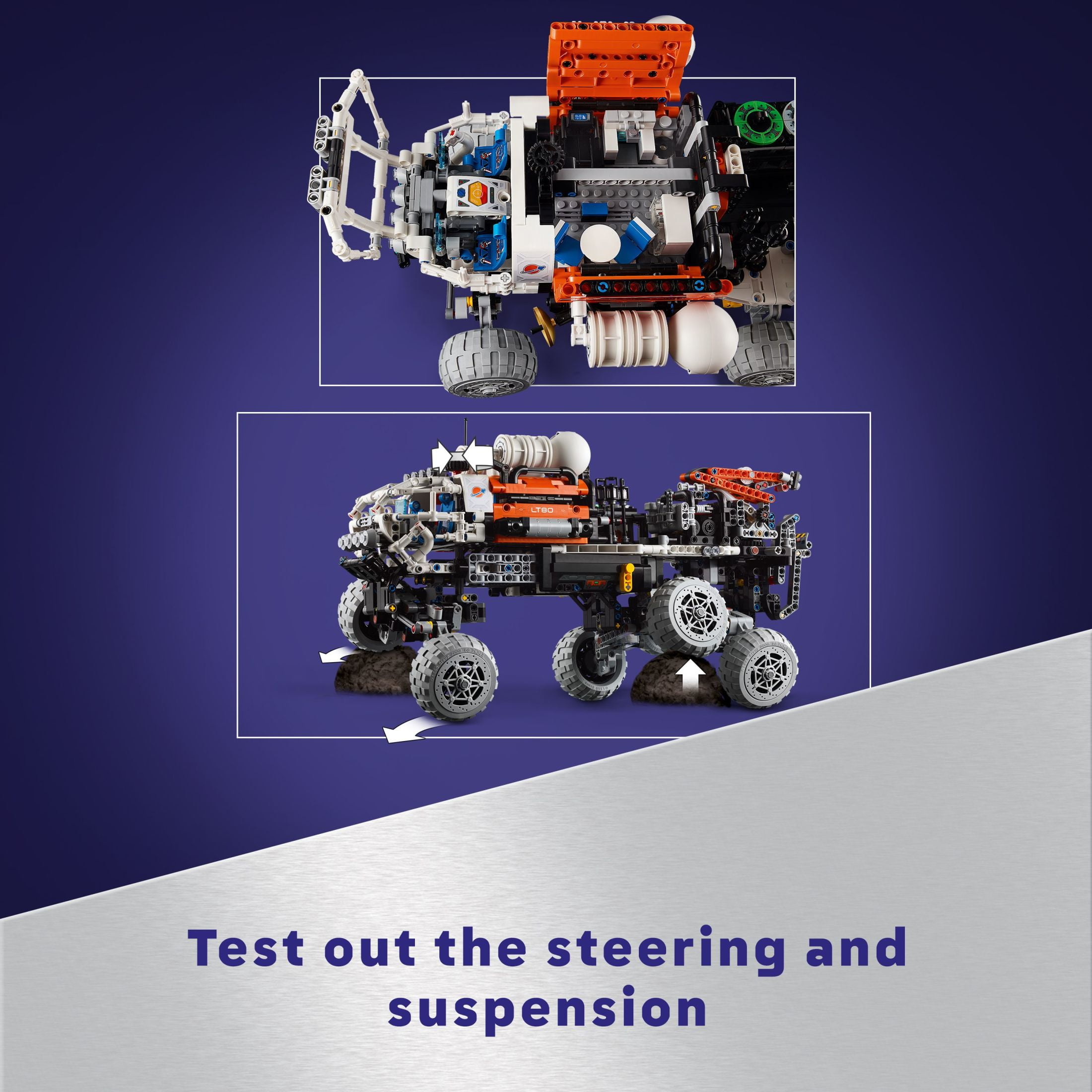 Mars Rover toy for boys and girls aged 11+ – The LEGO Technic Mars Crew Exploration Rover space toy for kids is packed with realistic features so young explorers can learn through play A space toy filled with features – This space building toy includes an expanding truck bed, suspension, a moving crane, elevator, generator, beacons, companion rover, living quarters and cockpit Rover expands and retracts – The model reflects how rovers adapt from being compact for transportation to expanding when they carry cargo after landing Scientific accessories – This space exploration playset toy features accessories modeled on those used by astronauts, including scientific equipment and gas canisters Space gift for kids who love NASA-inspired toys – This set makes a creative gift for boys and girls aged 11 plus who love fun space toys Air lock connects to other models – This set has a special space air-lock element so kids can connect other compatible space-themed LEGO playsets (sold separately) for more adventures A fun way to build – The LEGO Builder app guides kids on an intuitive building adventure, letting them save sets, track progress, zoom in and rotate models in 3D while they build