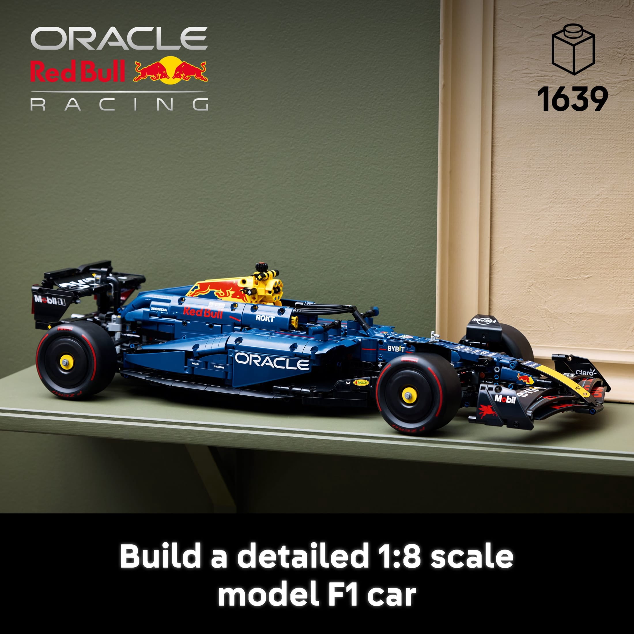 CAR MODEL KIT – Stay focused with an epic building project as you assemble this detailed LEGO Technic Oracle Red Bull Racing RB20 F1 Car model kit F1 RACING CAR MODEL – Celebrate your love for motorsports as you explore details including front and rear suspension, steering, an adjustable spoiler and printed tires REALISTIC ENGINE AND GEARBOX – Examine the 2-speed gearbox and differential, and remove the engine cover to explore the V6 engine with its moving pistons BUILD & DISPLAY – This model version of the Oracle Red Bull Racing RB20 F1 Car makes a great display piece for home or office, celebrating your passion for F1 GIFT FOR FORMULA 1 FANS – Gift idea for adult F1 fans who enjoy challenging projects or a treat for yourself if you want to build your own F1 car EXPAND THE COLLECTION – Explore engineering concepts and enjoy a relaxing building project with the collection of LEGO Technic vehicle sets for adults, sold separately DIMENSIONS – A 1,639-piece set with a LEGO F1 car measuring over 5.5 in. (14 cm) high, 25 in. (63 cm) long and 9.5 in. (24 cm) wide