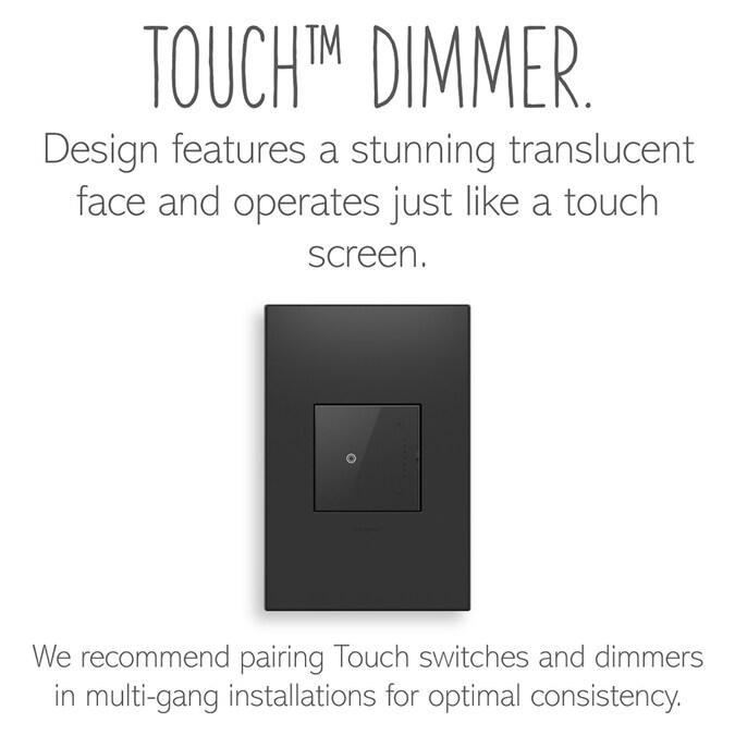 - The touch dimmer features a stunning translucent, glass-like face and operates just like an iPod®—simply press your finger on the circle to turn lights on and off, or use the arrows on the right to dim them