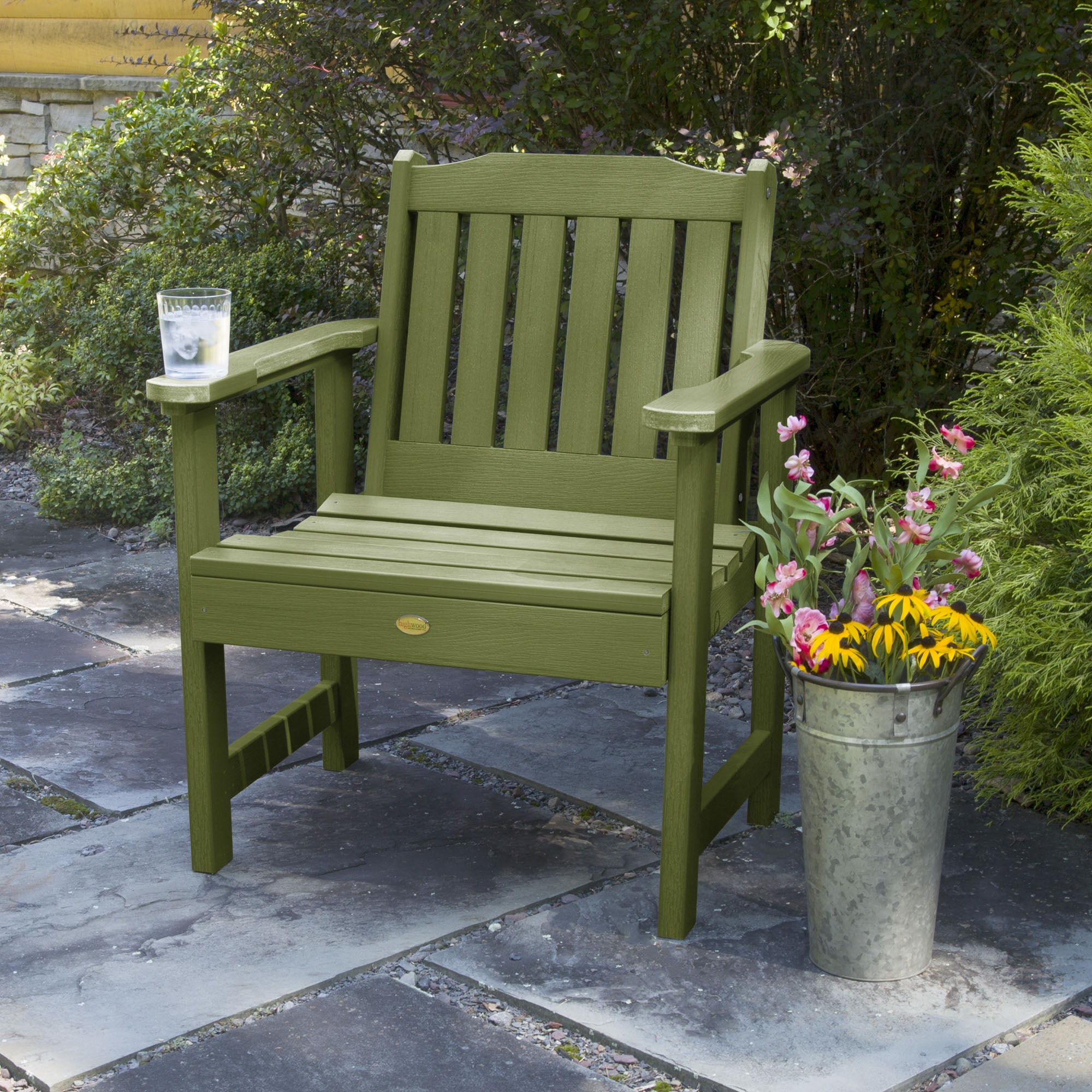 Welcome to highwood®. Welcome to relaxation.This highwood® Garden Chair has all the classic and elegant design elements that the Lehigh Collection is known for. This distinctive chair makes a dramatic statement in any environment. Adorn the chair with your favorite outdoor pillow or seasonal accoutrements like a pumpkin, scarecrow, statue, or snowman.Explore the entire highwood® product line to coordinate other beautiful and durable products to enhance your outdoor living space. Best of all, our high-grade poly lumber doesn’t absorb moisture and repels dirt and grime, making clean-up a breeze.The chair has been load tested, per ASTM 1561-03 (2008) standard for Outdoor plastic furniture, and has a 500 pound weight capacity. Some assembly is required (see assembly guide) and assembled chair dimensions = 27″W x 35″H x 25″D (28lbs).