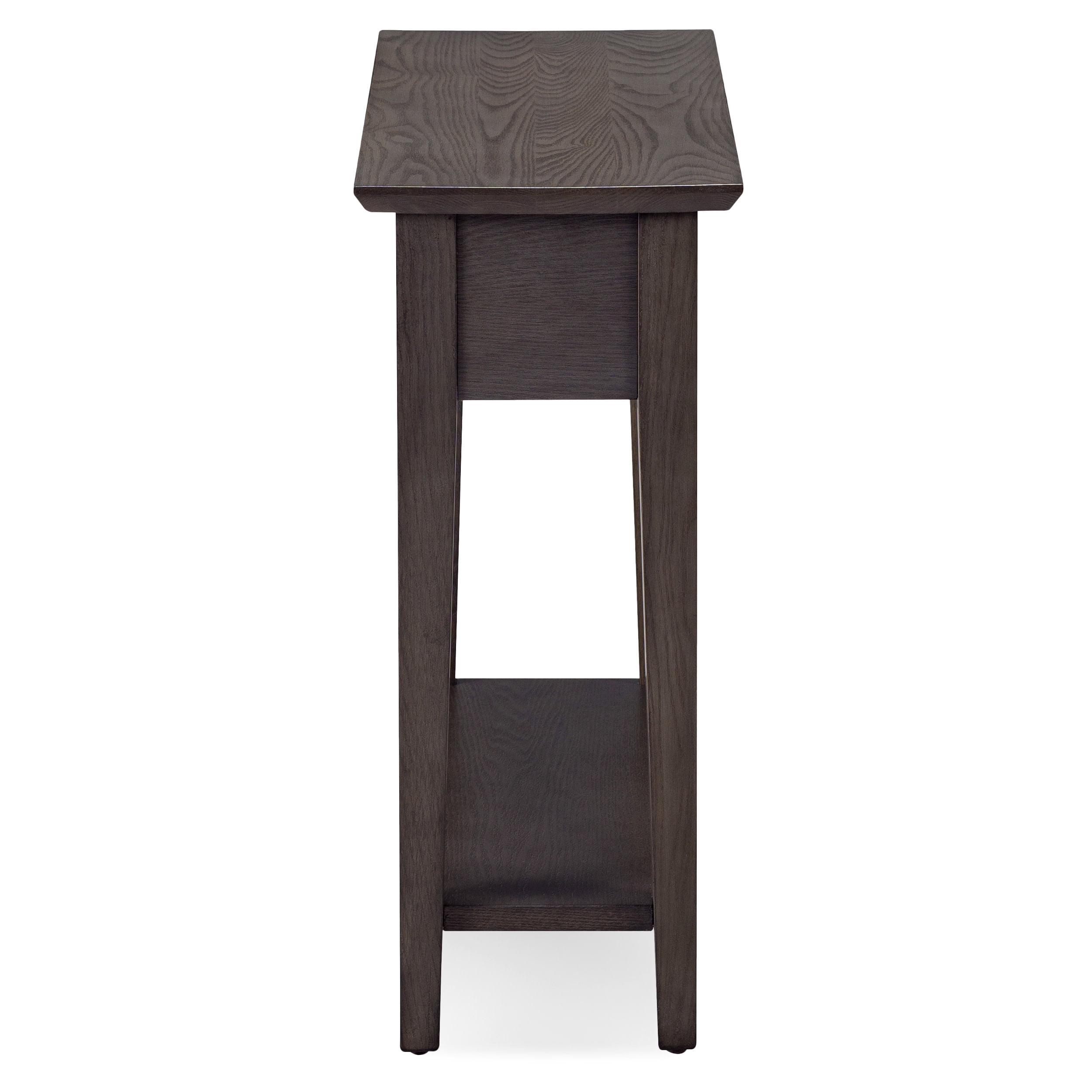 The Leick Home 10071-GR Narrow Chairside Table, finished in smoke gray, is an ultimately versatile design alongside or between seating pieces designed to complement many popular color and furnishing approaches. Scaled to fit most anywhere but generous in function with surface, drawer, and shelf display uses. A solid wood drawer box offers a sturdy place to stow away small items. Designed and manufactured by Leick Home, the trusted source for quality home furnishings for every taste and budget.