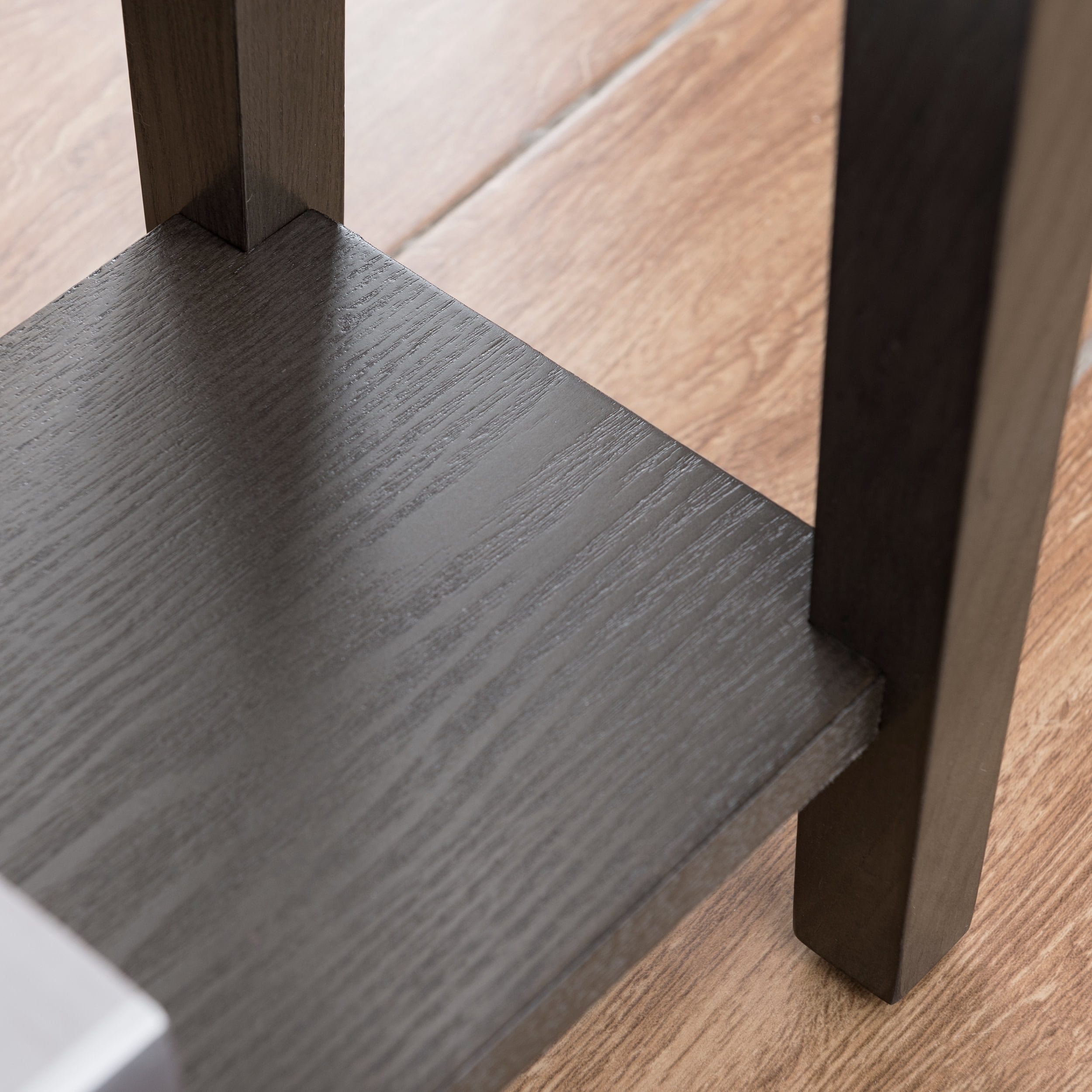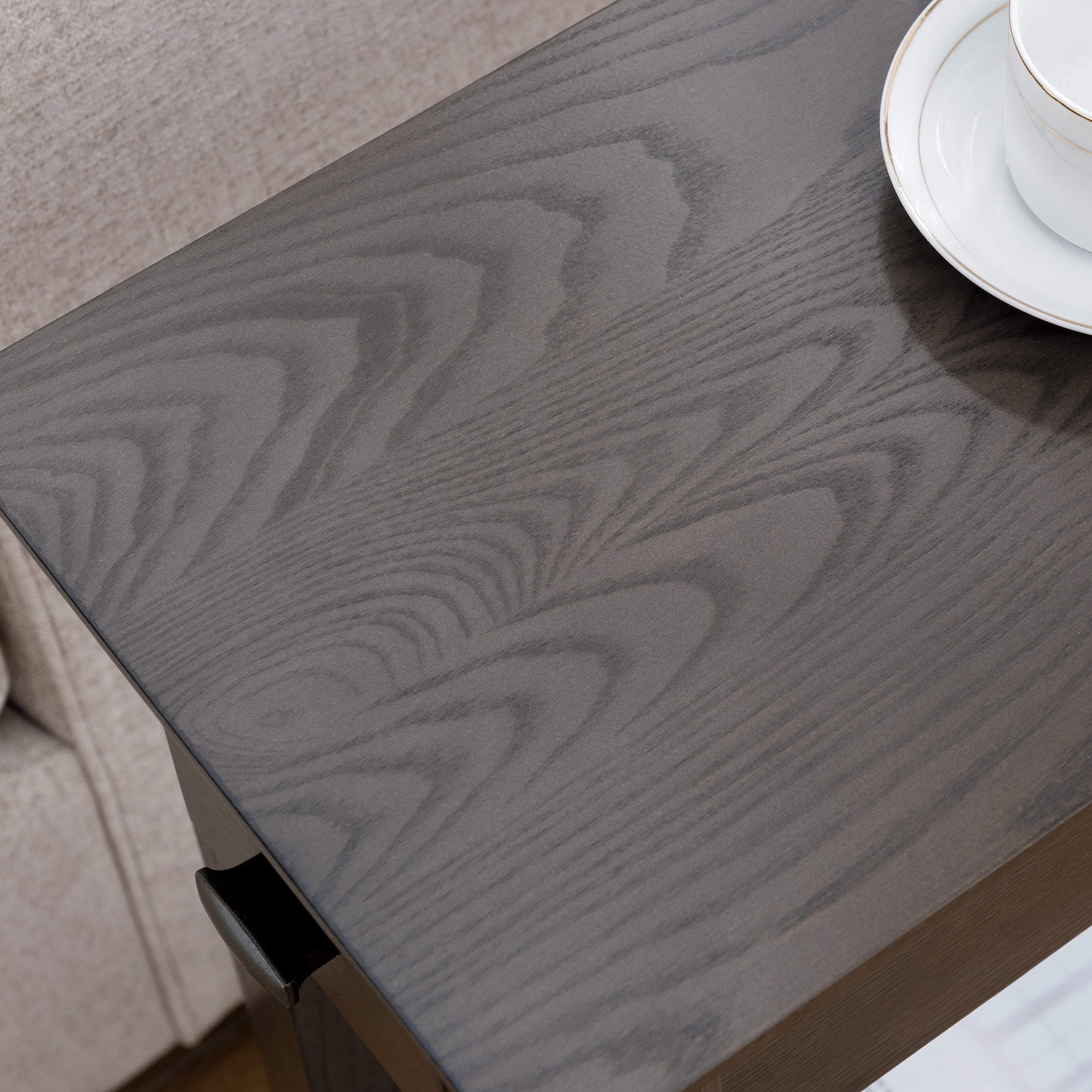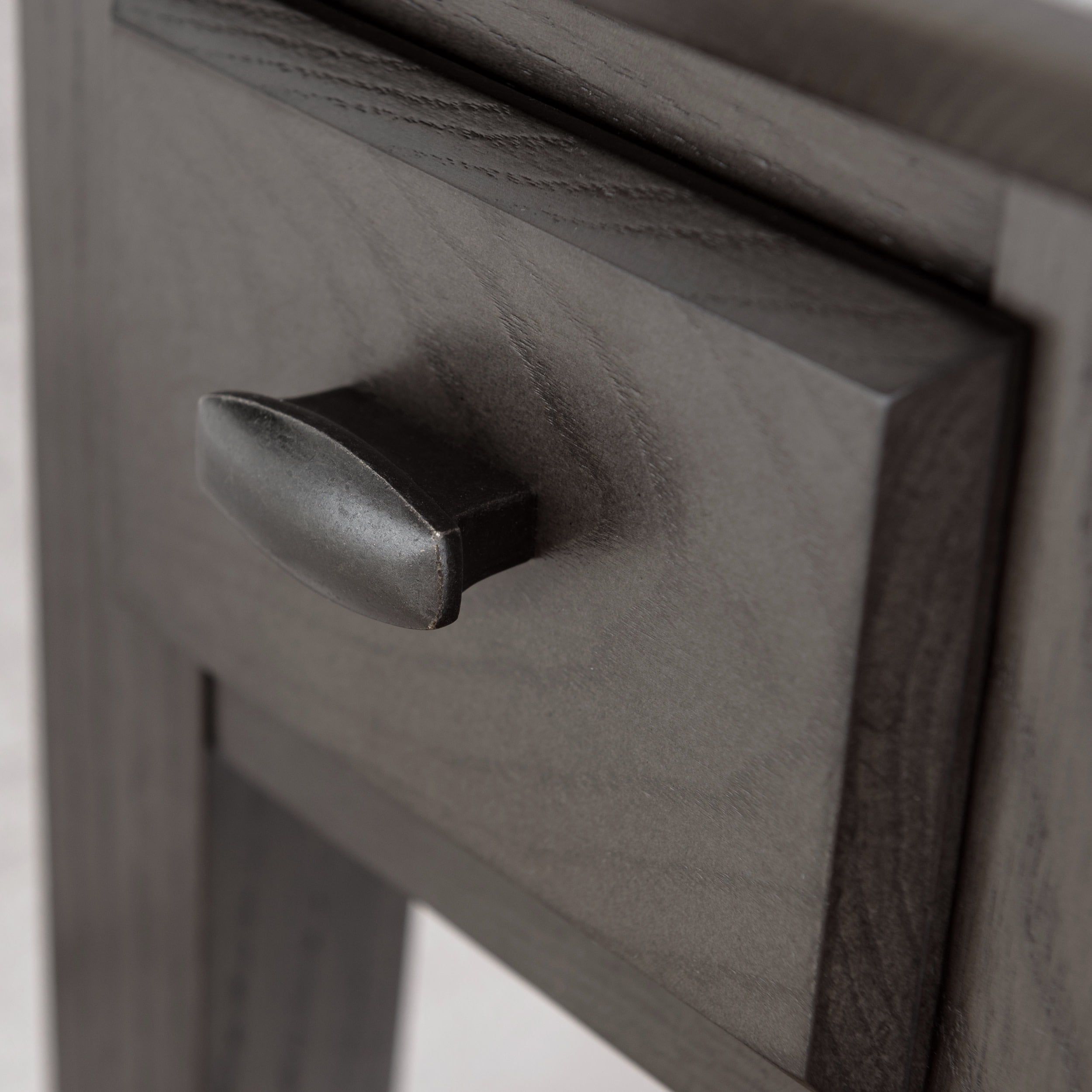 Leick Home Teegan Solid Wood Narrow Side End Table with Shelf and Drawer, Smoke Gray