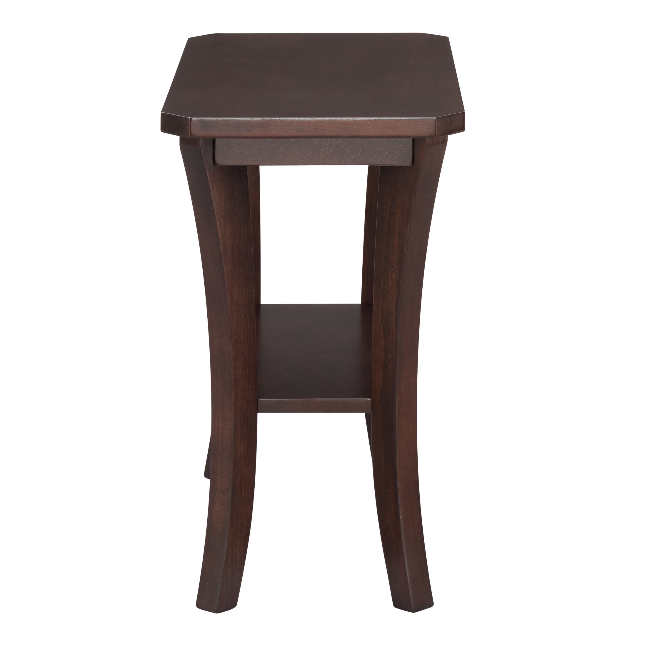 Compact Design: The Boa Narrow End Table in Chocolate Oak is crafted for tight spaces, measuring 14″ L x 24″ W x 24″ H; Its space-saving silhouette is perfect for apartments and small living areas Elegant and Durable: With a Chocolate Cherry finish, this table features a full one-inch thick top and saber legs for a timeless and sturdy design Functional and Reliable Storage: The high display shelf offers easy access to showcase your collectibles, while the solid wood construction ensures durability for everyday use Quick Assembly: Designed for simple assembly in minutes, it delivers a practical and stylish addition to any home Buy with Confidence: Customer satisfaction has been the priority for our Wisconsin-based company for more than 150 years; with our 1-year limited warranty, you can rest assured your purchase is risk-free