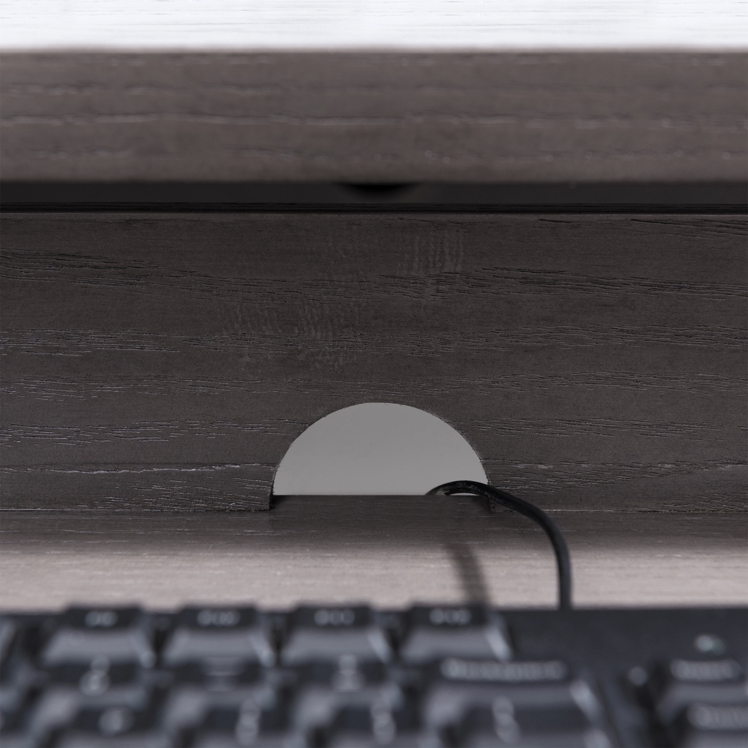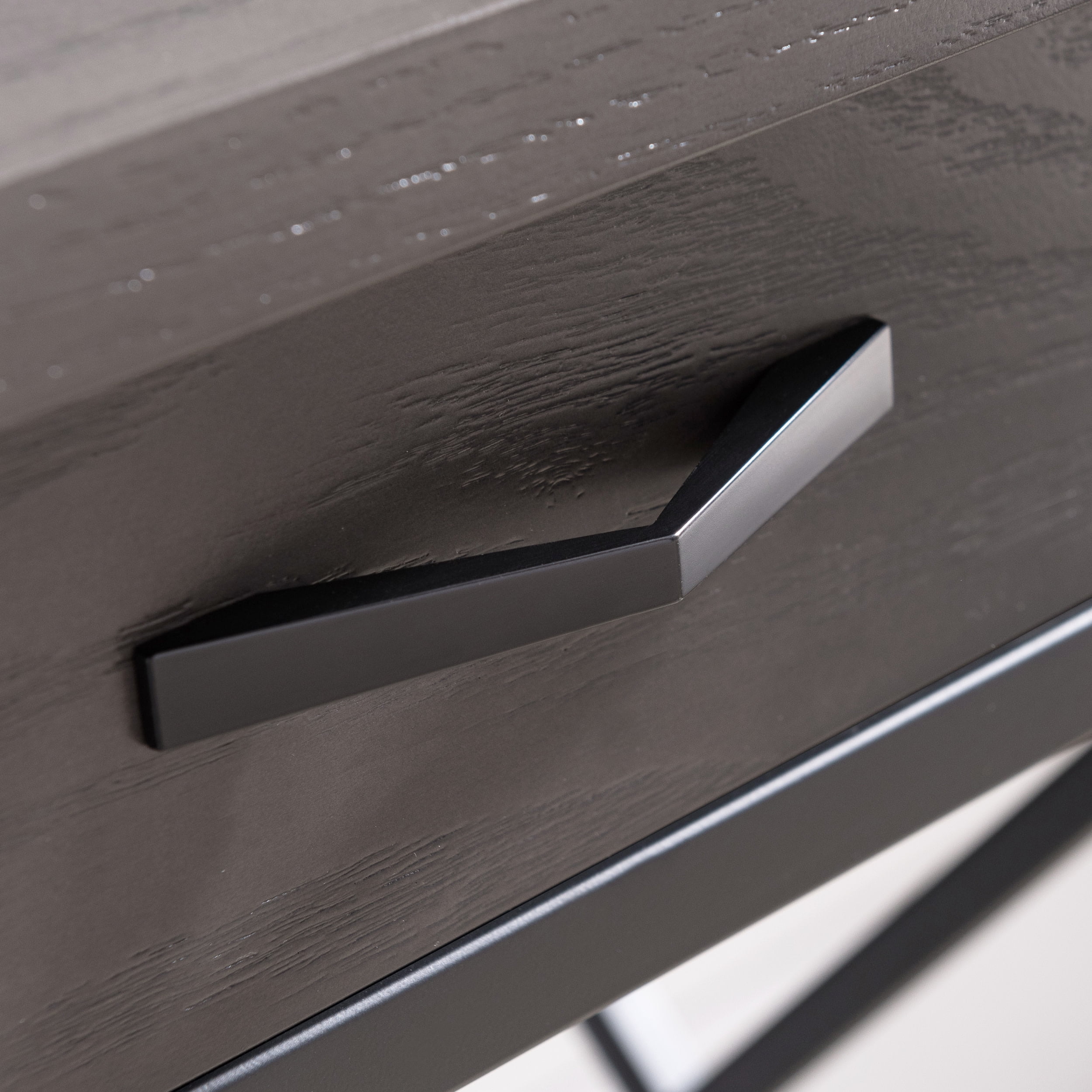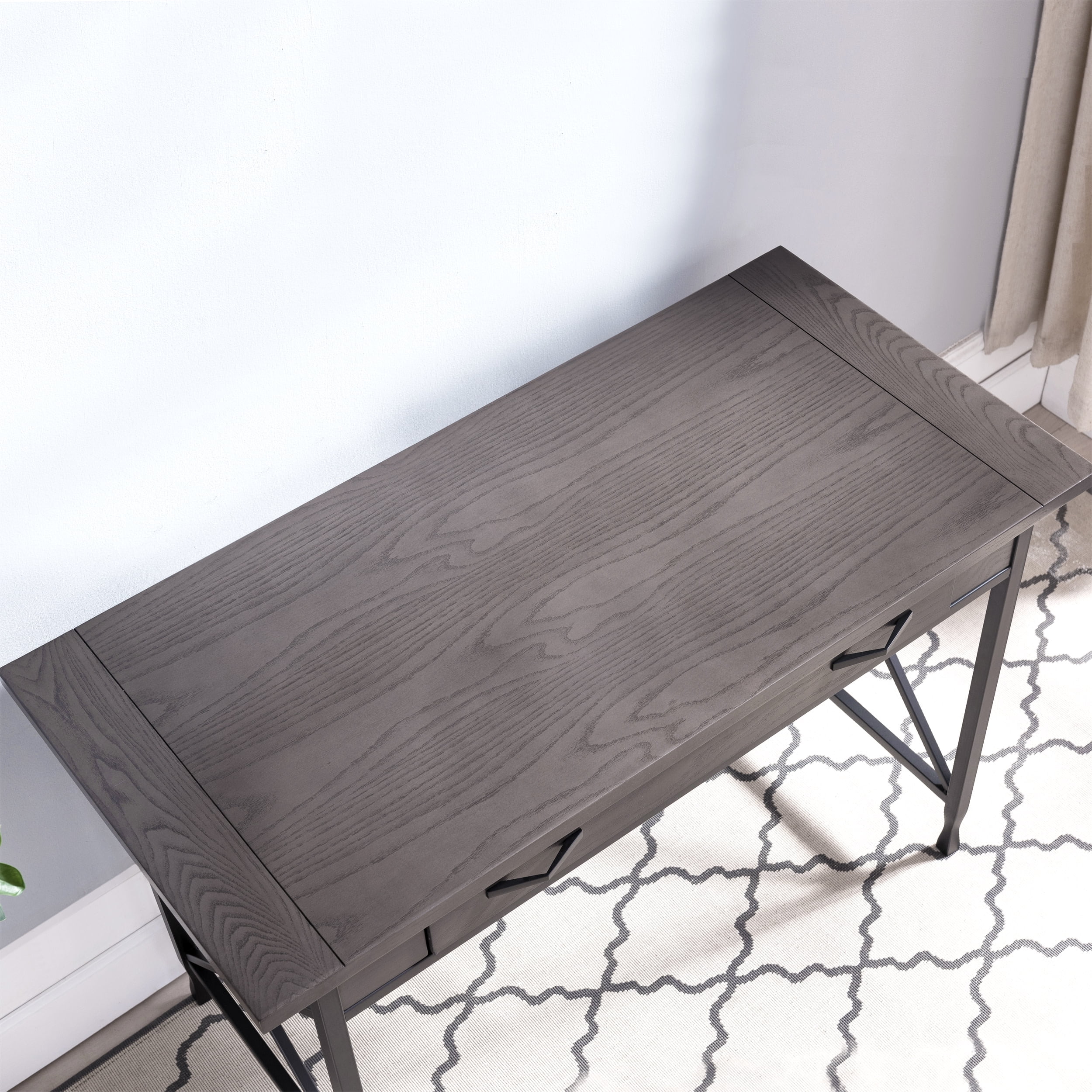 Modern Industrial Style: This Chisel & Forge desk combines a Smoke Gray wood finish with a Matte Black metal base, featuring an X-side design, for a striking modern-industrial look Its dimensions of 46″ W x 22″ D x 30″ H make it a perfect fit for home offices, bedrooms, or small spaces Functional and Organized: A drop-front keyboard drawer provides ergonomic convenience, while full-extension ball-bearing guides allow for maximum drawer utility A wire retaining grommet on the back helps keep cords neat and organized Durable Craftsmanship: Constructed from solid hardwoods, oak veneers, and a sturdy metal frame, this desk offers lasting durability with a blend of natural and industrial materials Premium Craftsmanship: Constructed with high-quality solid wood, this table ensures longevity and sturdiness The dovetailed drawer design adds a touch of craftsmanship and durability Buy with Confidence: Customer satisfaction has been the priority for our Wisconsin-based company for more than 150 years; with our 1-year limited warranty, you can rest assured your purchase is risk-free
