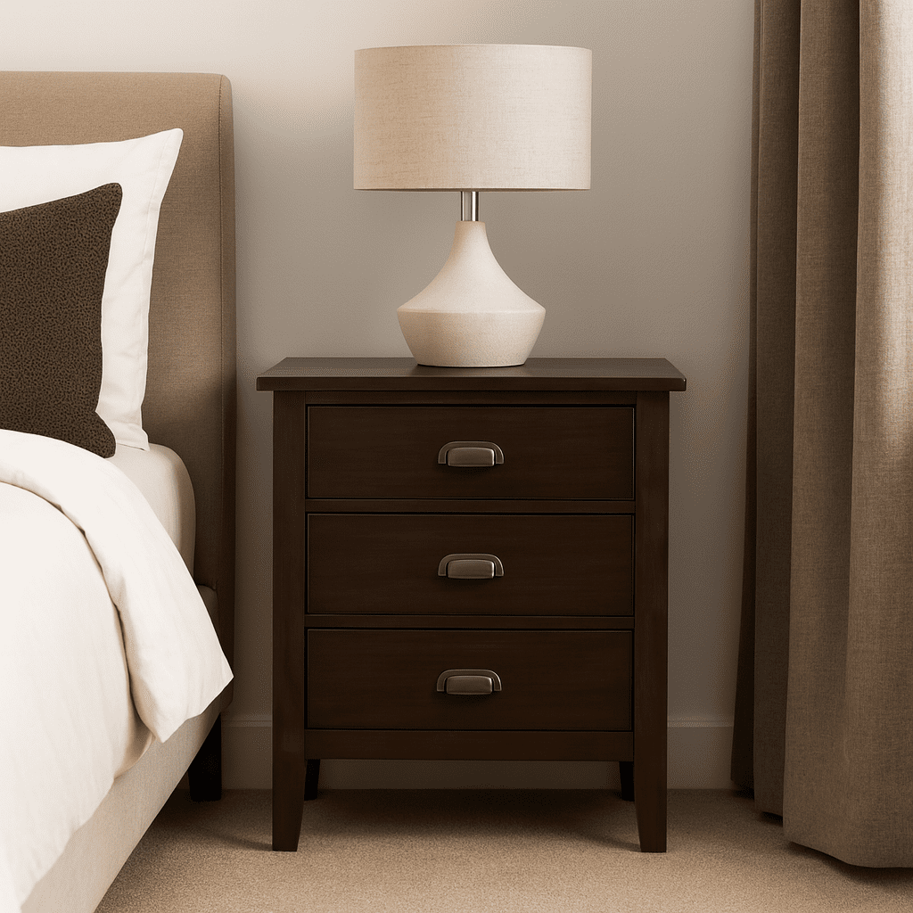Leick Home Traditional 3-Drawer Solid Wood Laurent Nightstand with USB-C Charging Station, Chocolate Cherry
