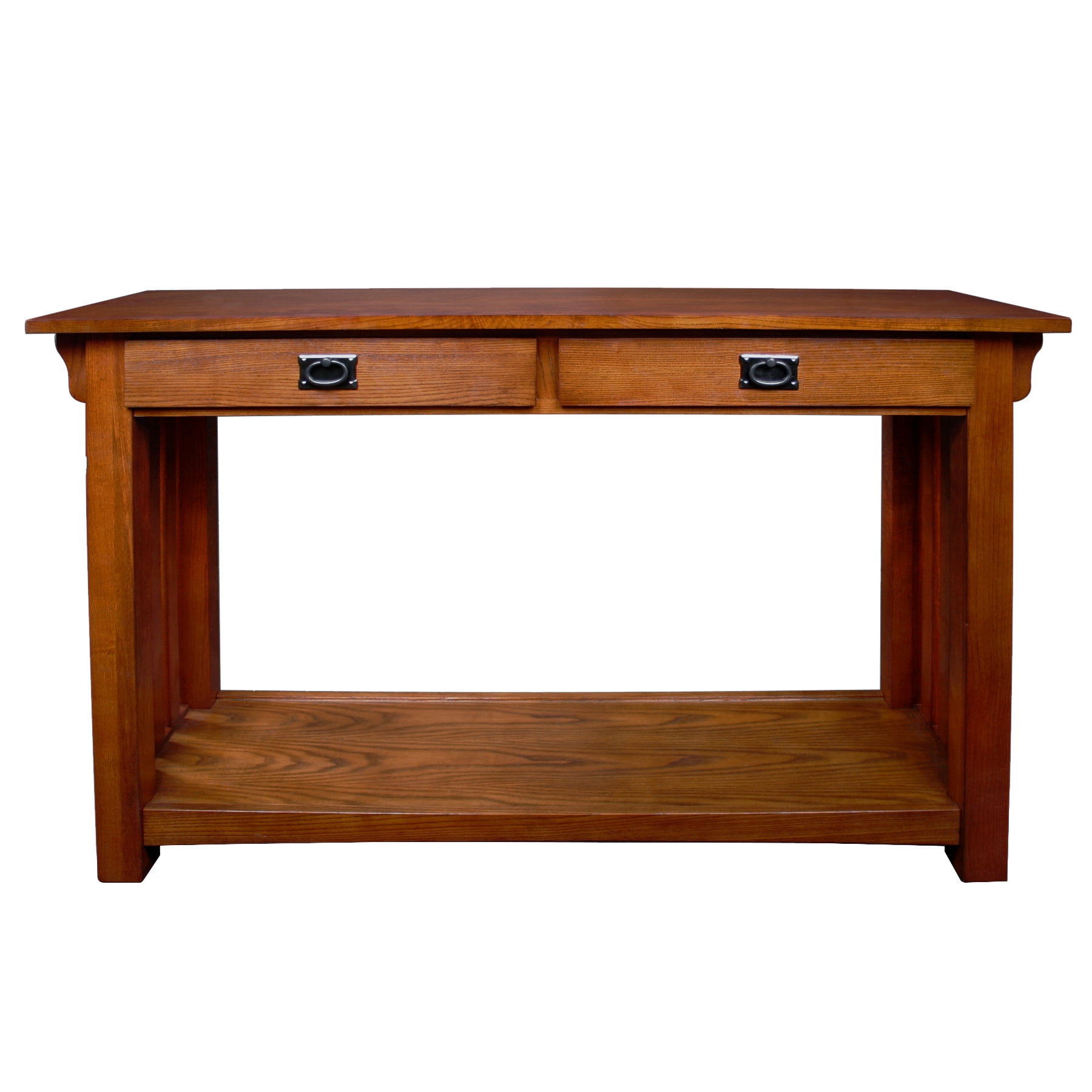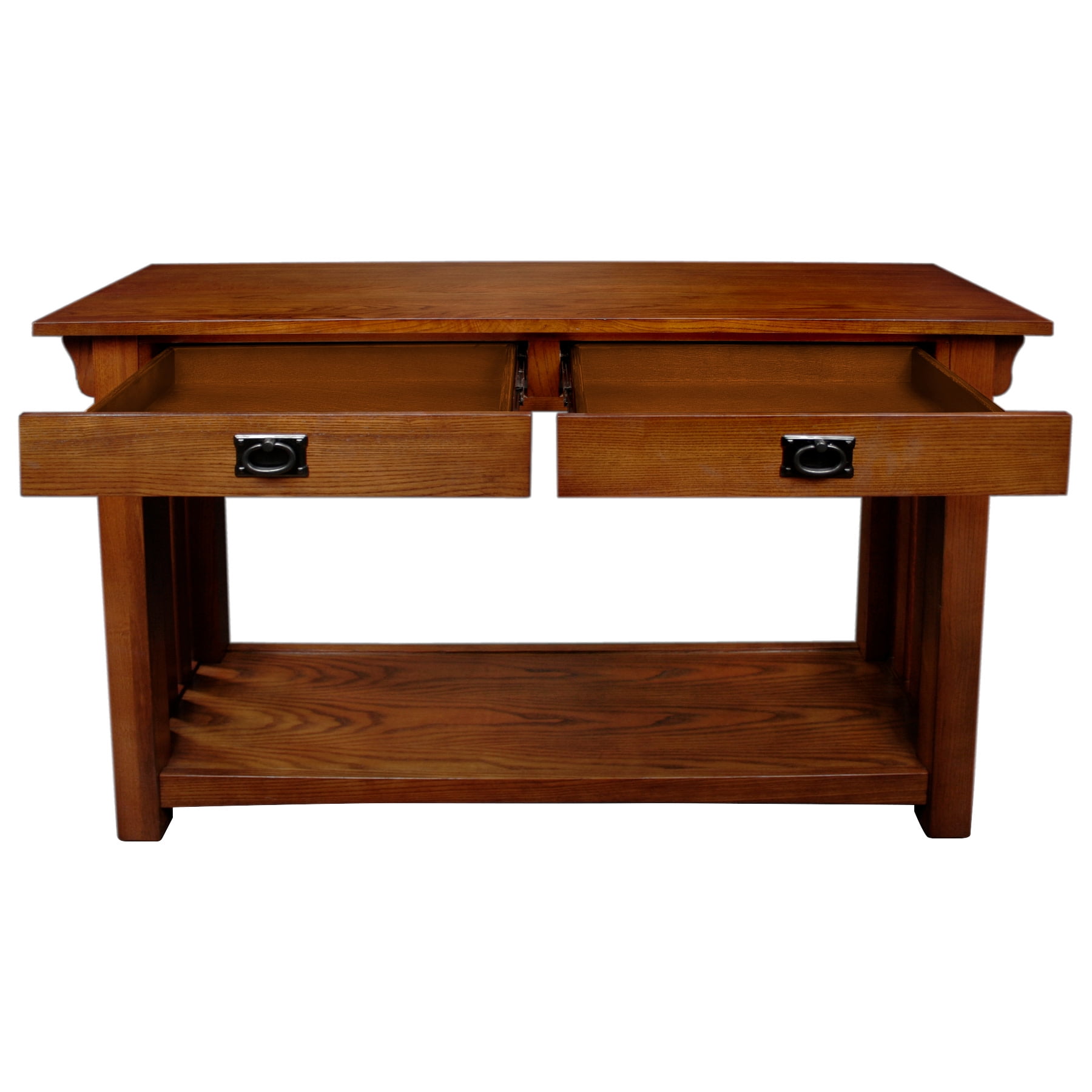 The Leick Home Mission Impeccable Console Table features a versatile storage capacity to tidy living spaces quickly. The corbel supported top is sturdy and waiting to be adorned. Finished in medium oak, this quality-crafted hall stand will add a warm shaker design to your foyer, entryway, or hallway. Or use it as a sofa table or console table behind a couch. With the compact sizing and ample storage space, this beautiful wood table provides versatility to your home’s furnishings. Crafted with solid North American hardwood for the authentic Mission appeal and long-lasting use. Features two drawers on full-extension, metal ball-bearing drawer glides with metal pull hardware for the things you want to tuck away and a lower display shelf for the things you want to show off. Easy to assemble with pre-assembled drawer. Designed and manufactured by Leick Home, the trusted source for quality home furnishings for every taste and budget.