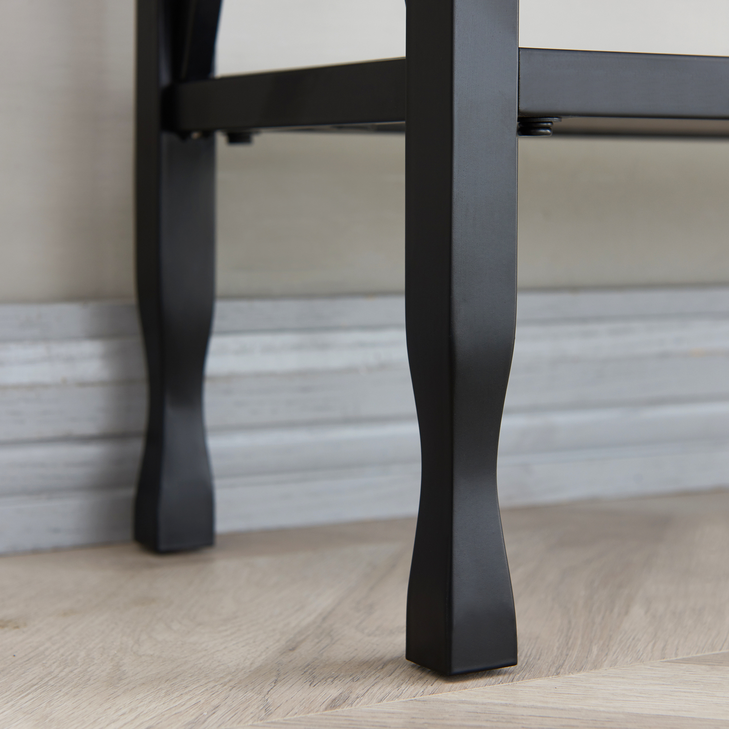 Finish: Smoky Gray Oak Material: Sturdy Wood construction Compact scale suitable for apartments/condos Matte Black metal “X” sides Cinched metal toe design