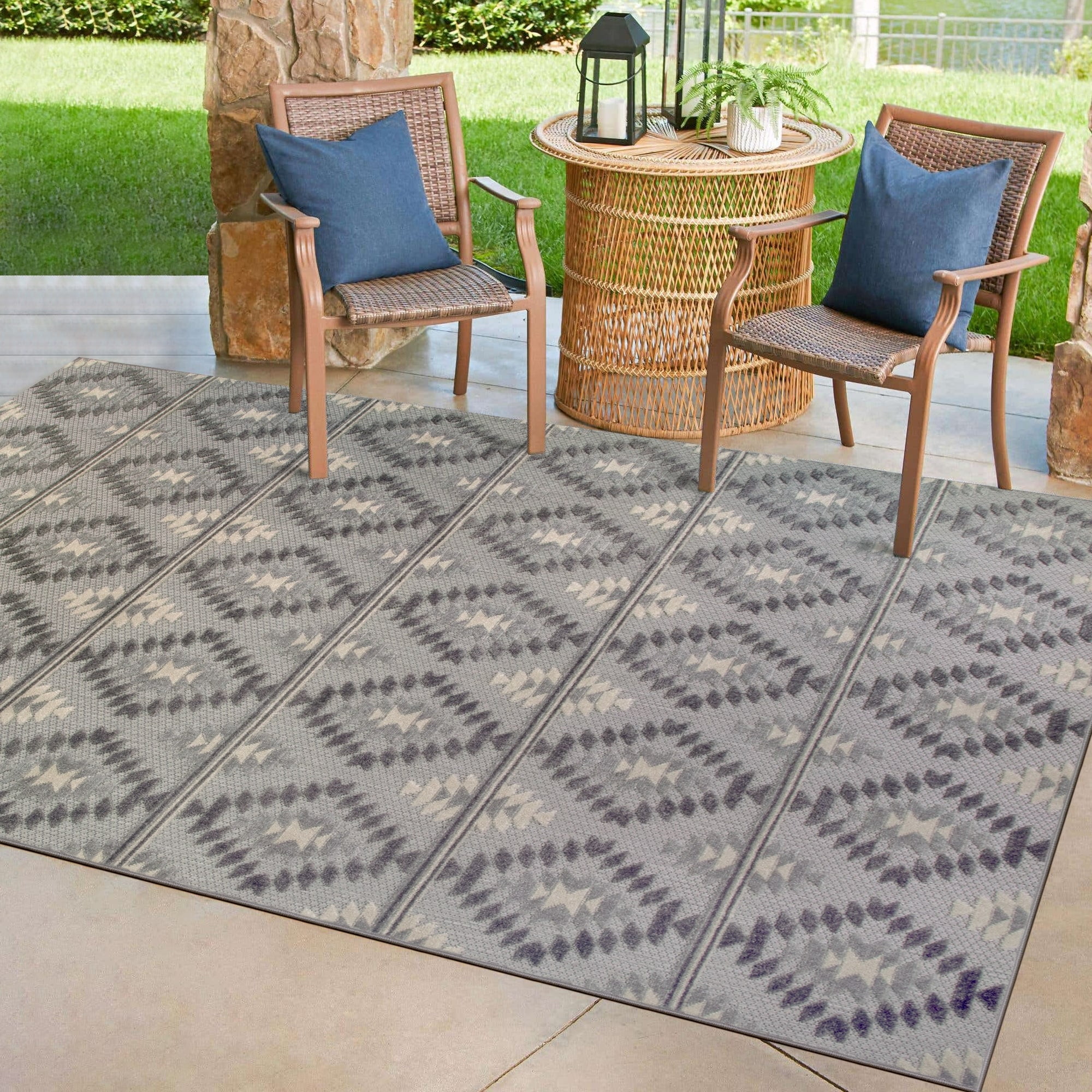 Compact Dimensions: Measuring 5’3″ x 7′, this Cirrido Southwestern Indoor Outdoor Area Rug is ideal for adding a stylish touch to living rooms, patios, dining rooms, or office spaces Durable and Weather-Resistant: Crafted from 100% polypropylene, this rug is UV-, stain-, and water-resistant, ensuring long-lasting use in indoor and outdoor environments Southwestern-Inspired Design: Features a gray and ivory geometric pattern for a neutral yet visually appealing aesthetic that complements modern and traditional décor Low Maintenance: Lightweight, non-shedding, and easy to clean with a hose, broom, or vacuum Recommended rug pad for indoor use and storage during extreme weather Buy with Confidence: Customer satisfaction has been the priority for our Wisconsin-based company for more than 150 years; with our 1-year limited warranty, you can rest assured your purchase is risk-free