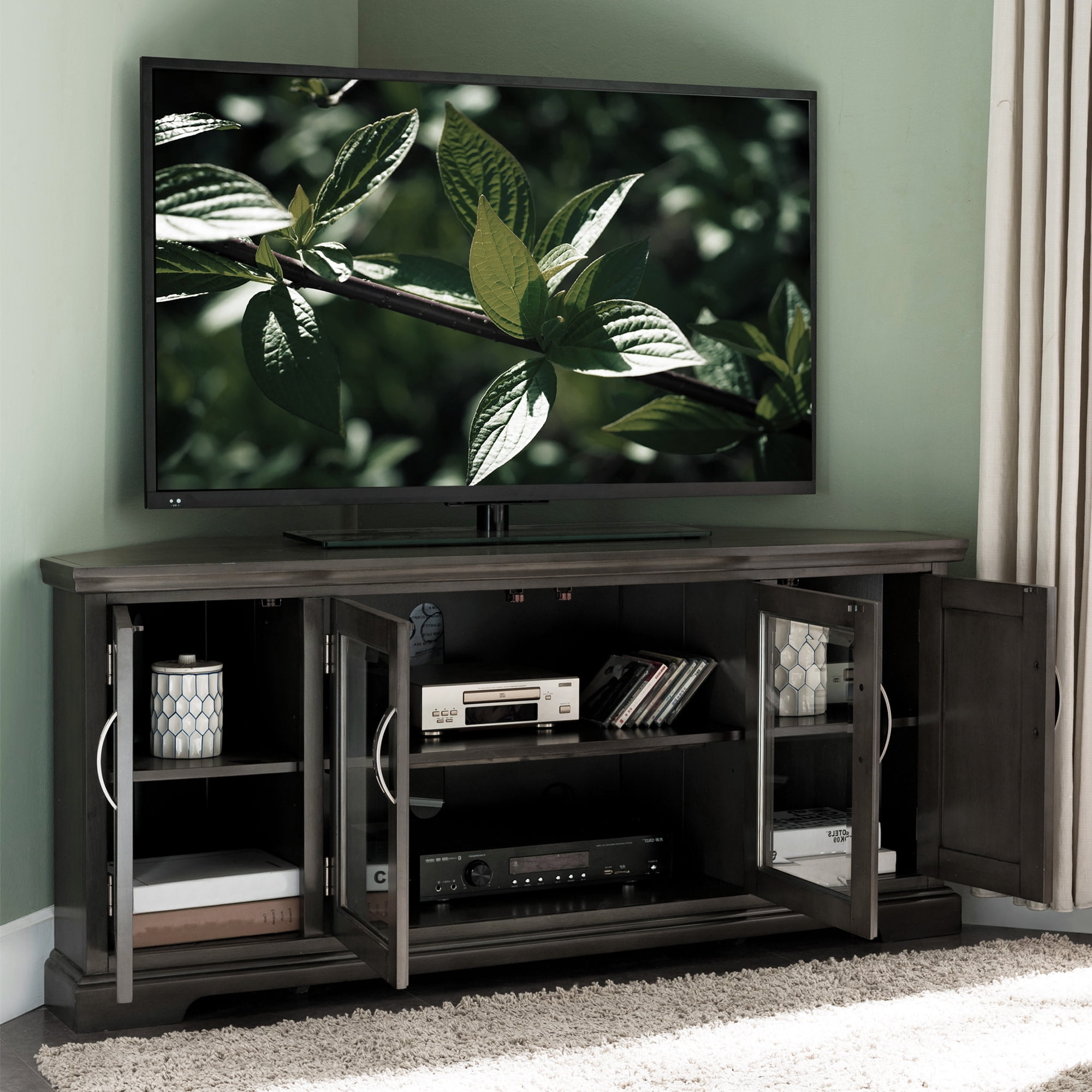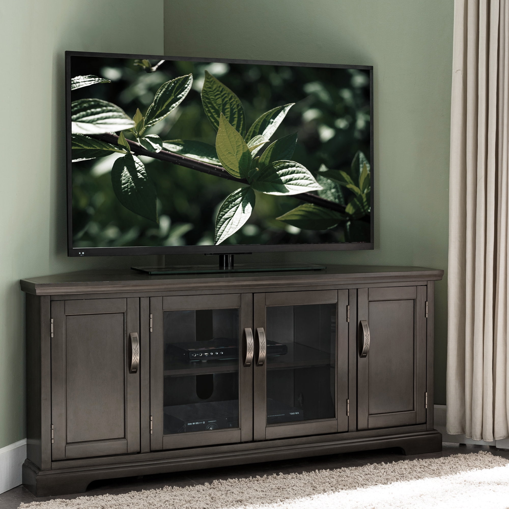 Leick Home Riverstone Gray Corner 2-Door TV Stand for TVs up to 65 Inches with Storage