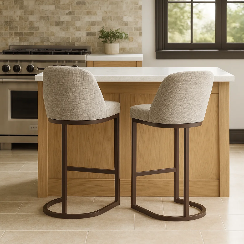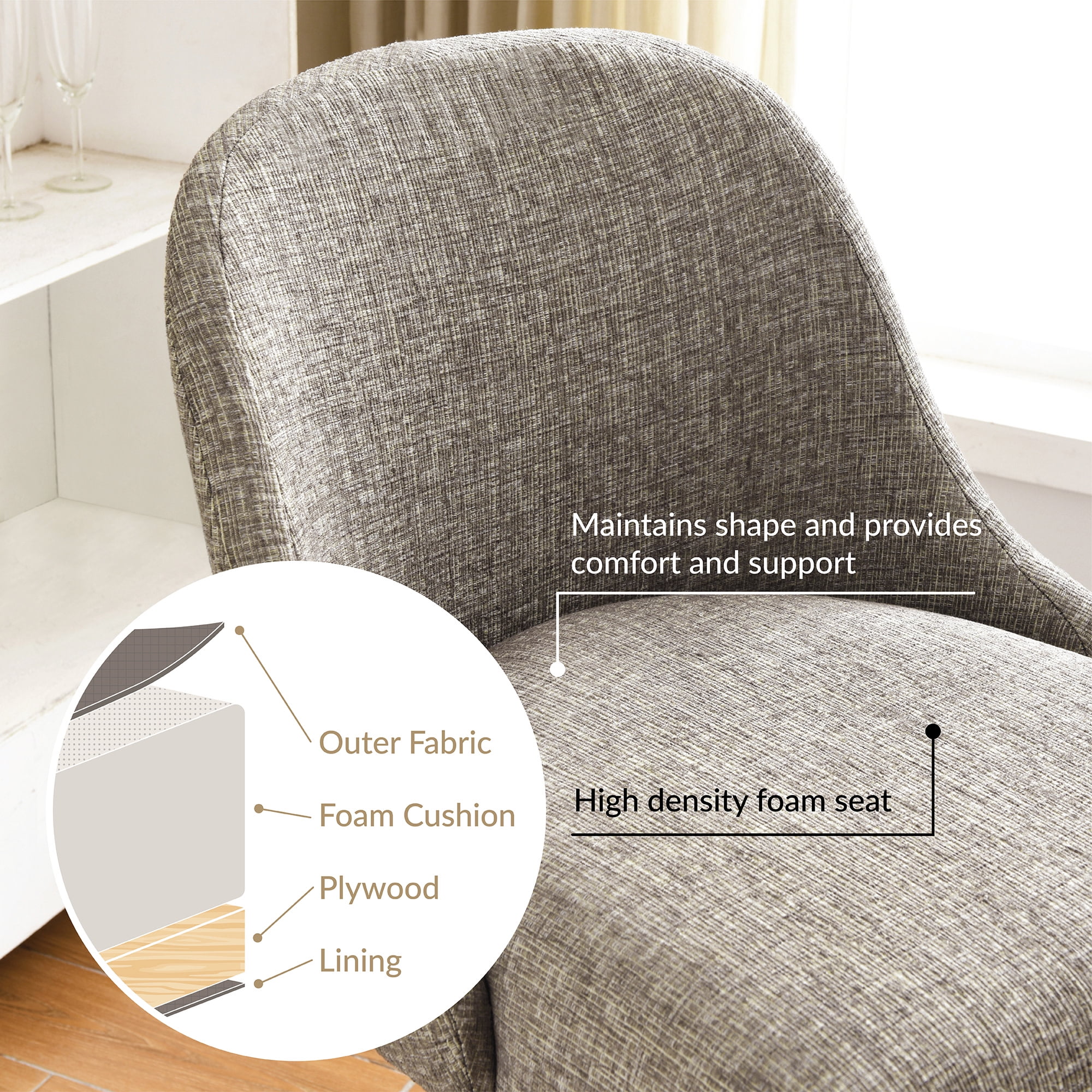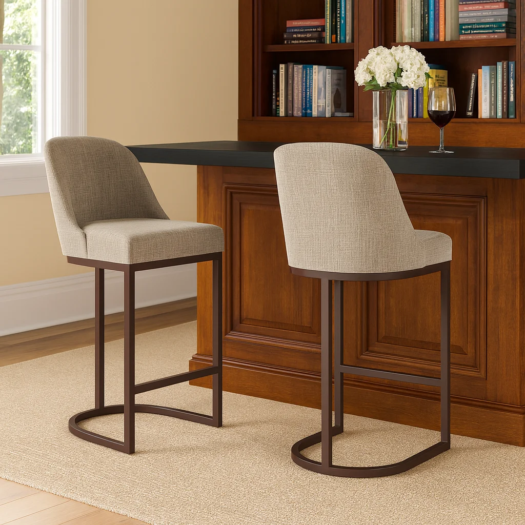 Counter Height Stool: Measures 20.75 inches L x 23.25 inches W x 38.5 inches H and is compatible with counters and tables 36 to 39 inches high High Quality Craftsmanship: Durable fabric provides long-lasting use and heavy gauge steel base ensures stability Comfortable Seat: High density foam seat cushion maintains its shape over time and supportive barrelback design provides comfort for everyone Modern Design: Gray linen upholstery with curved metal elements complement many decor styles including modern and contemporary to give you a versatile piece for your home Stress-Free Assembly: Simple assembly allows you to enjoy your new barstool in minutes Buy with Confidence: Customer satisfaction has been our priority for 150 years; with our 1-year limited warranty, you can rest assured your purchase is risk-free