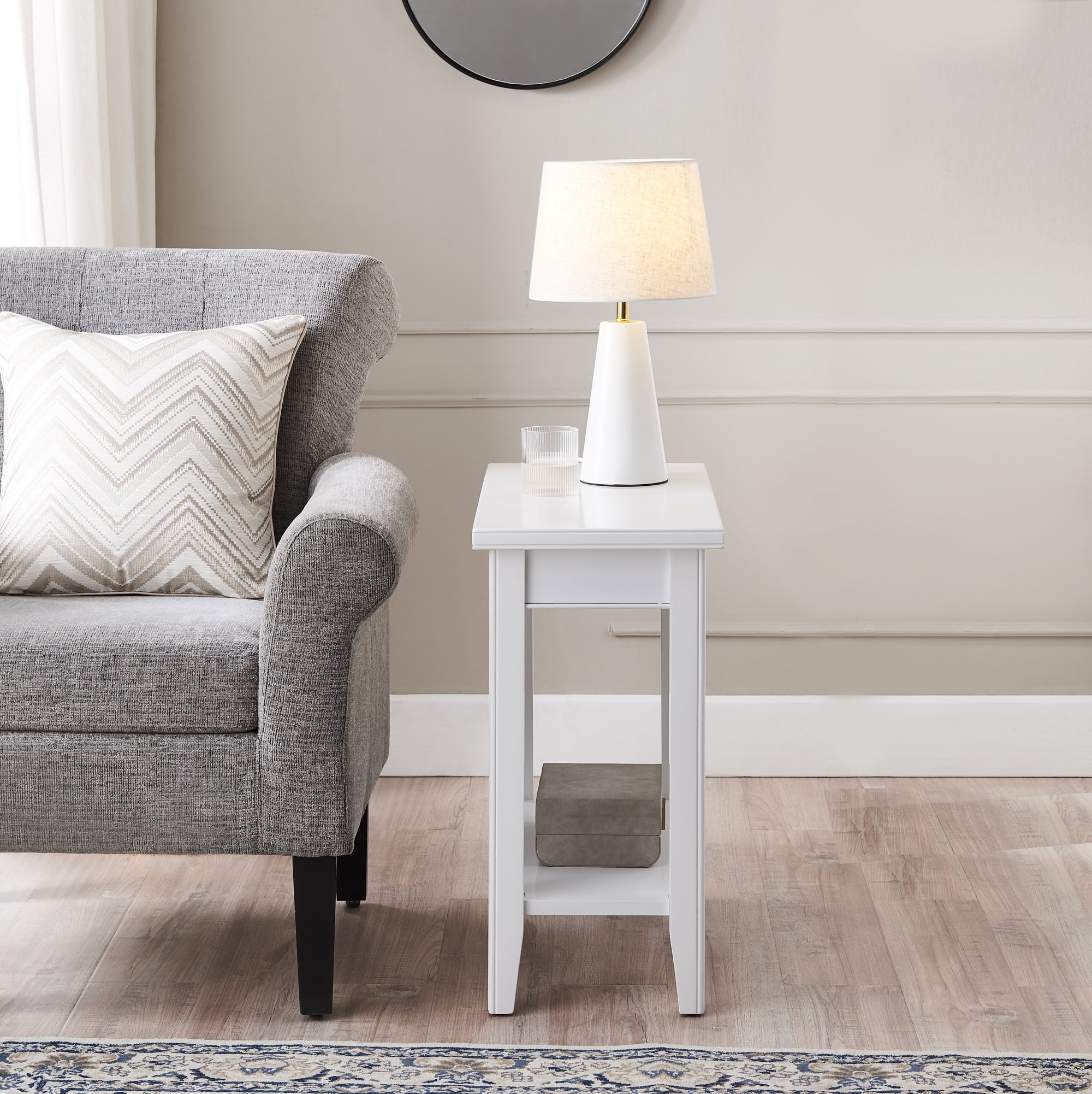 Leick Home Solid Wood Laurent 12″ Narrow End Table with Shelf, White