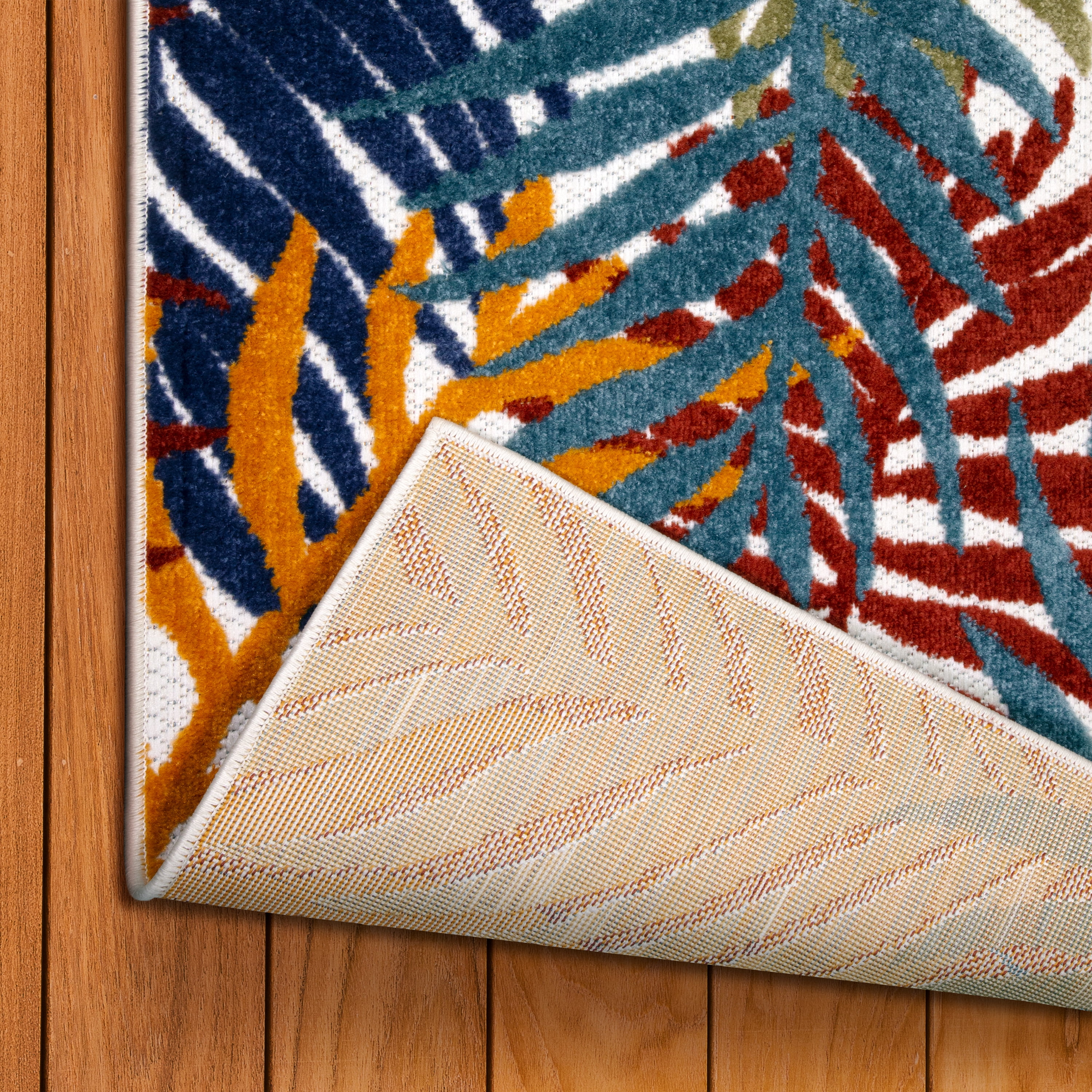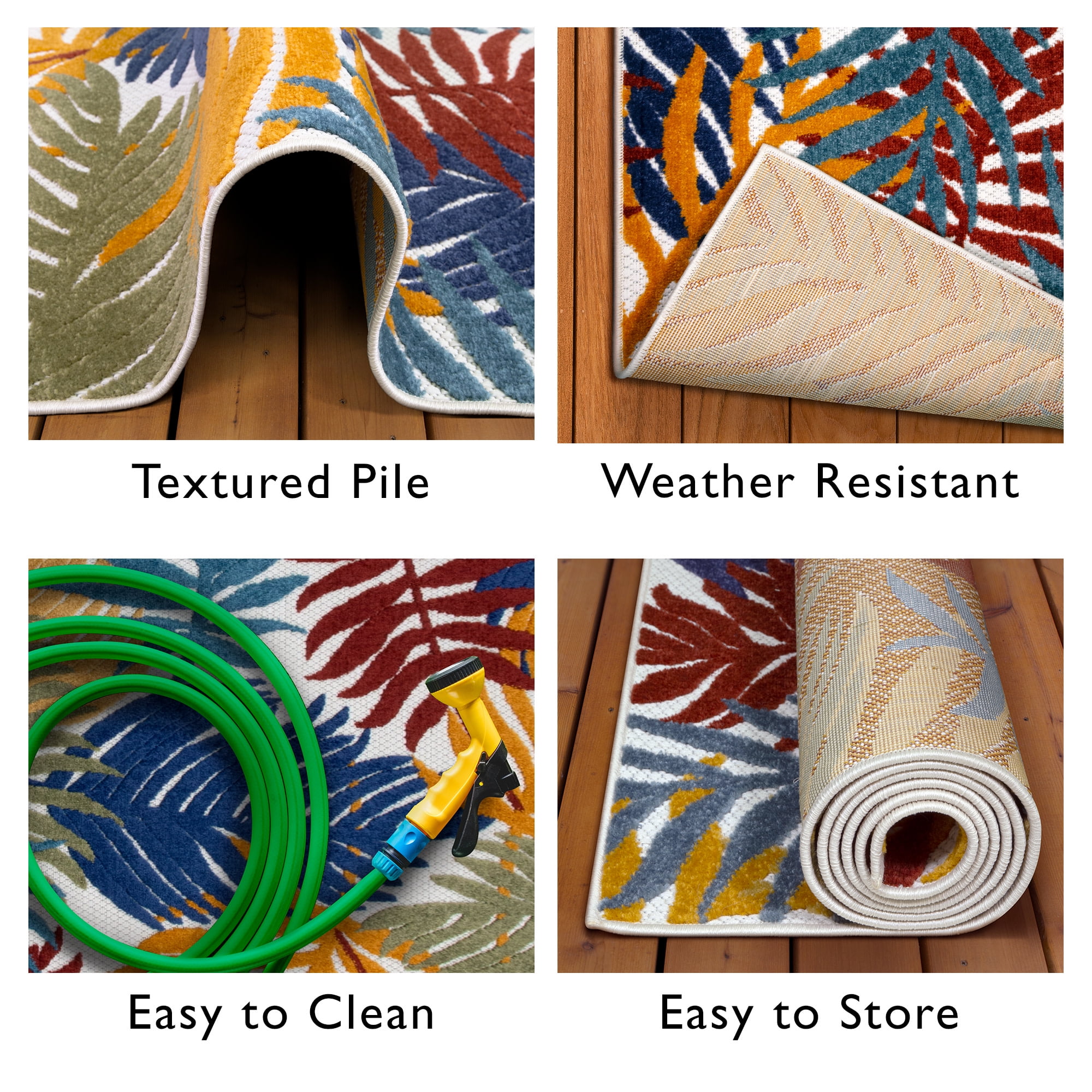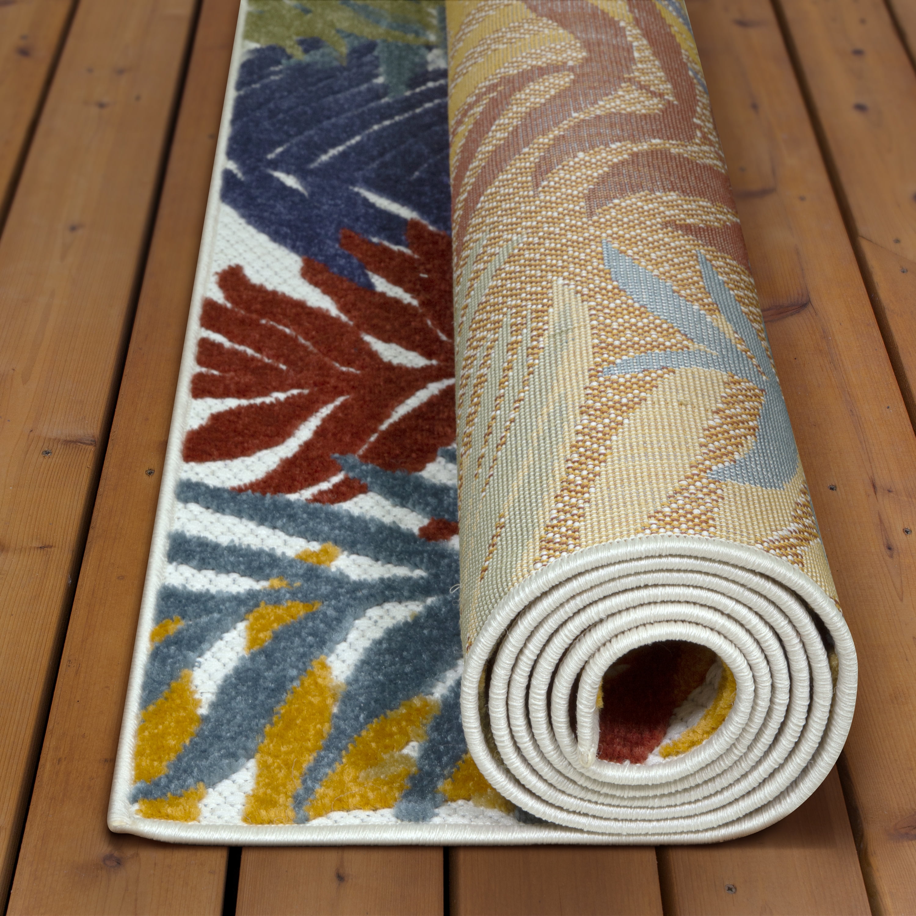 Versatile Area Rug: Measures 6’7″ x 9’6″ (79″ x 114″), ideal for larger living rooms, outdoor entertaining spaces, and dining areas, featuring a durable and fade-resistant tropical design Durable for Indoor and Outdoor Use: Made from 100% polypropylene, this rug resists stains, water, and fading, making it ideal for high-traffic areas, homes with pets, and outdoor spaces Lightweight and Easy to Move: Designed for versatility, this rug is easy to relocate and works well in any room, from living areas to covered patios and decks Simple to Clean and Maintain: The low-pile, non-shedding surface allows for quick cleanup. Just blot spills, sweep, vacuum, or hose off to keep it looking fresh Buy with Confidence: Customer satisfaction has been the priority for our Wisconsin-based company for more than 150 years; with our 1-year limited warranty, you can rest assured your purchase is risk-free