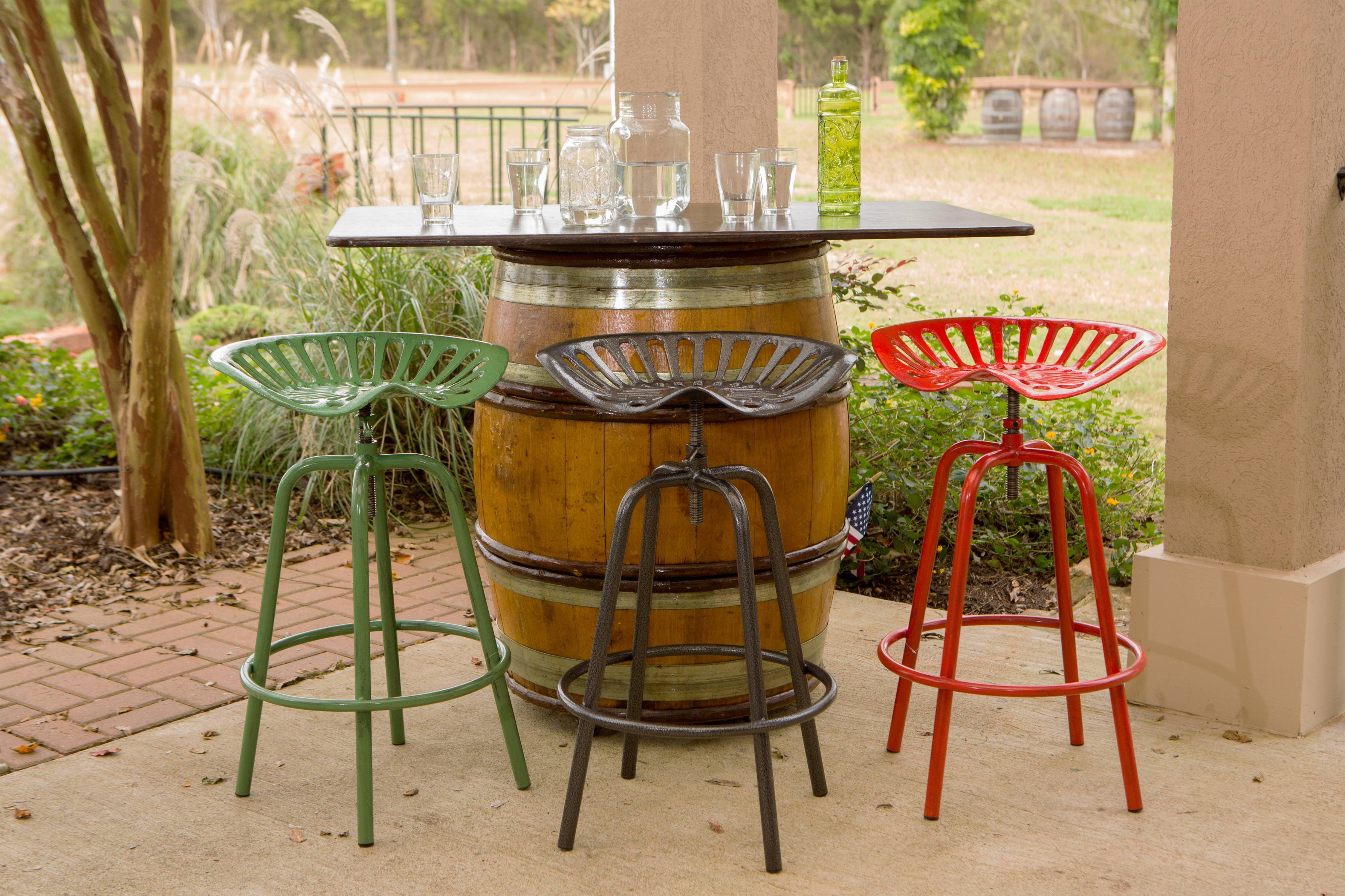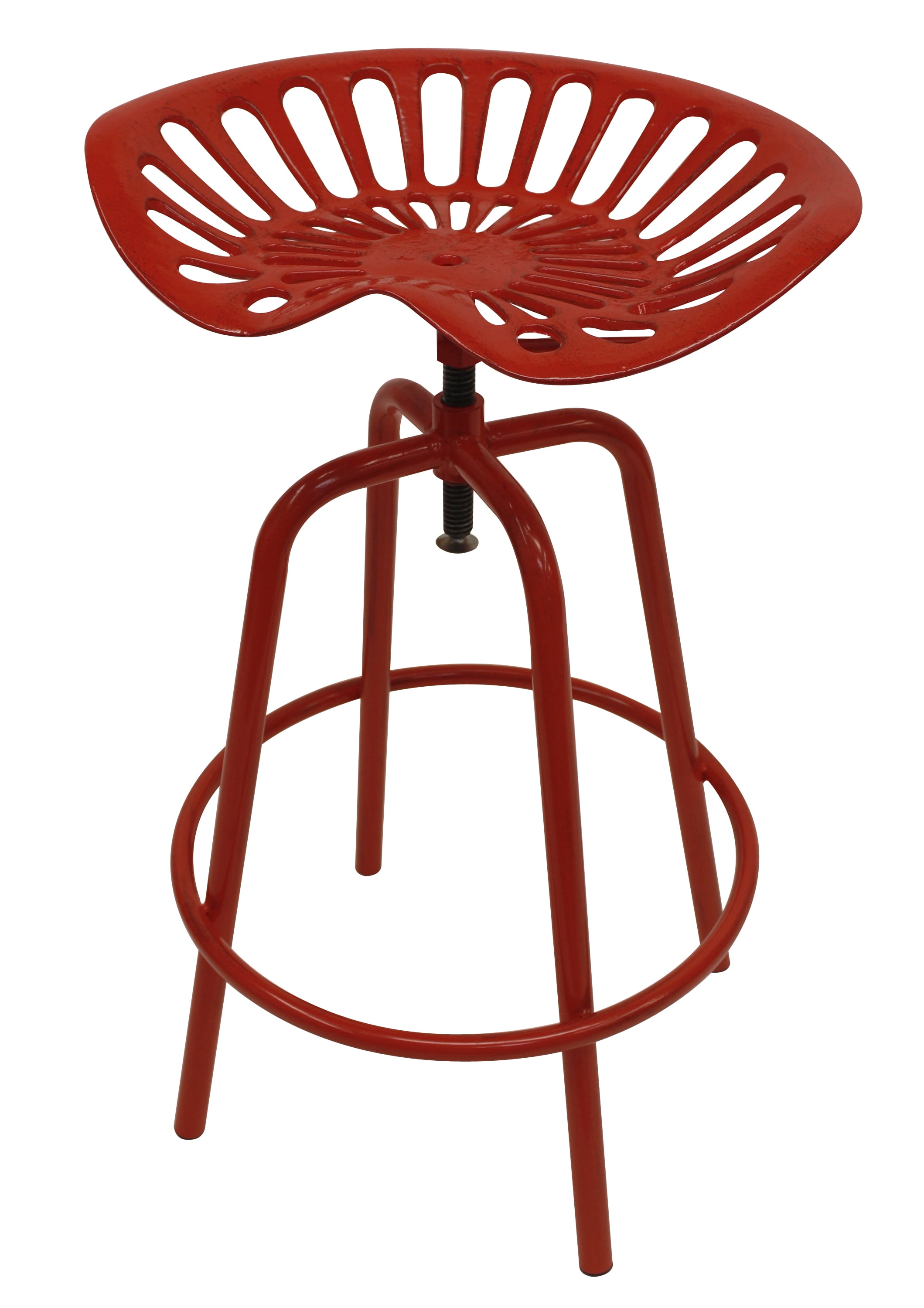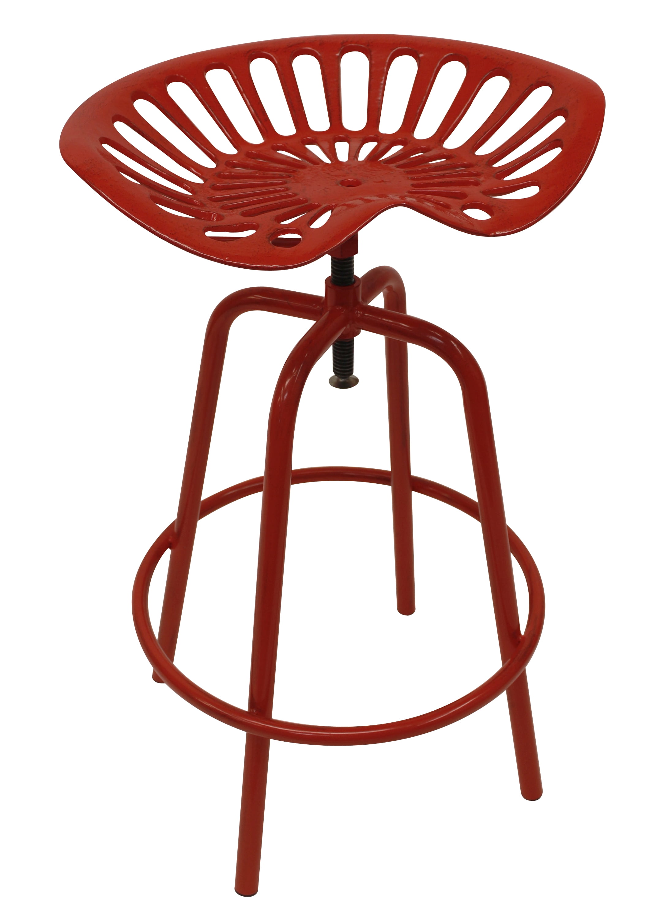 Enjoy the comfort and versatility of a Leigh Country tractor seat swivel stool. Crafted out of sturdy steel, this industrial inspired style has a hand position lock and height adjustment to fit your bar or dining needs. It’s powder-coated for long lasting beauty and durability. The seat swivels 360 degrees and is constructed of cast iron, with a steel tubed frame. The height is adjustable from 27.5 inches, up to 32 inches. Some assembly is required.
